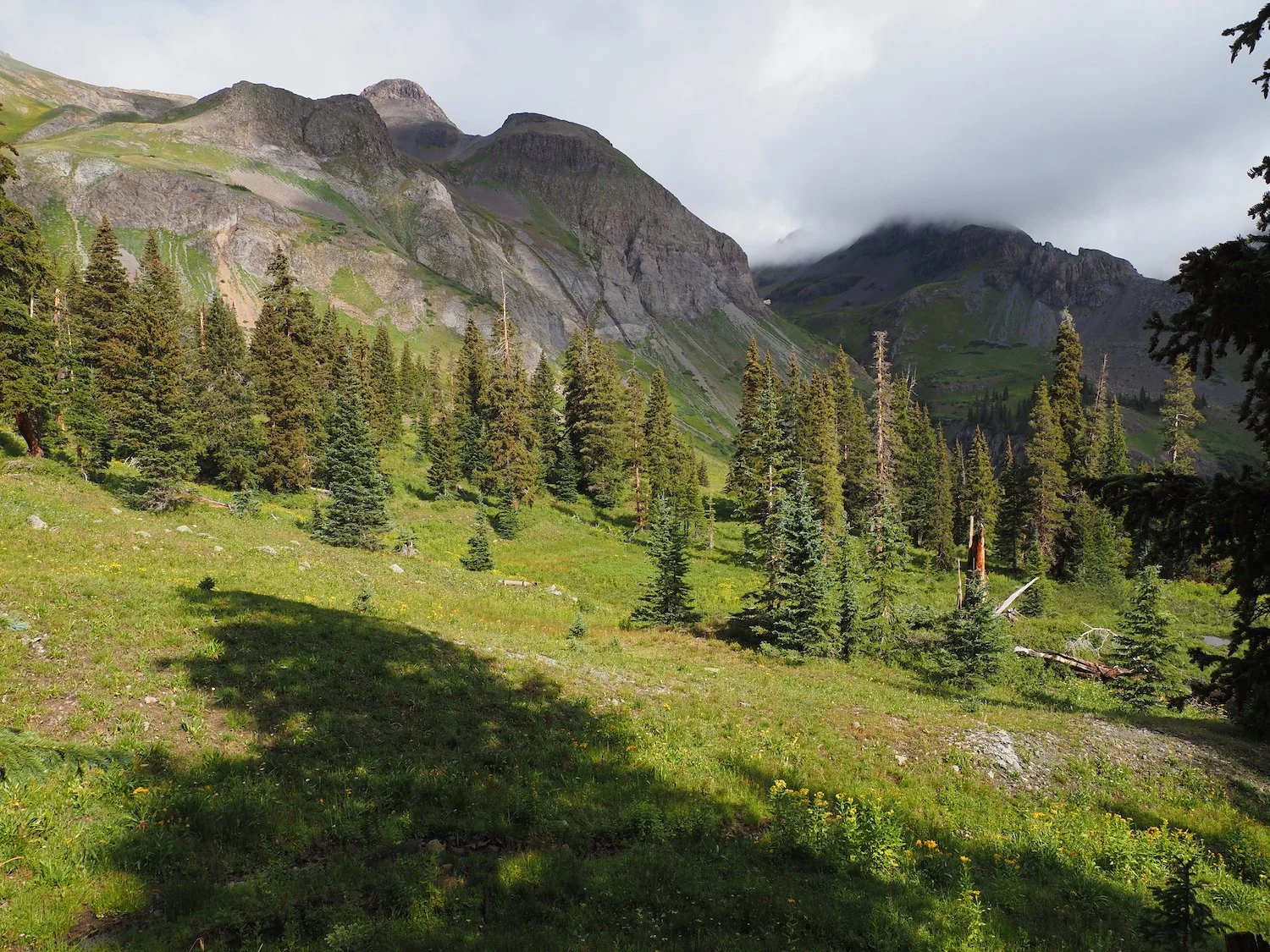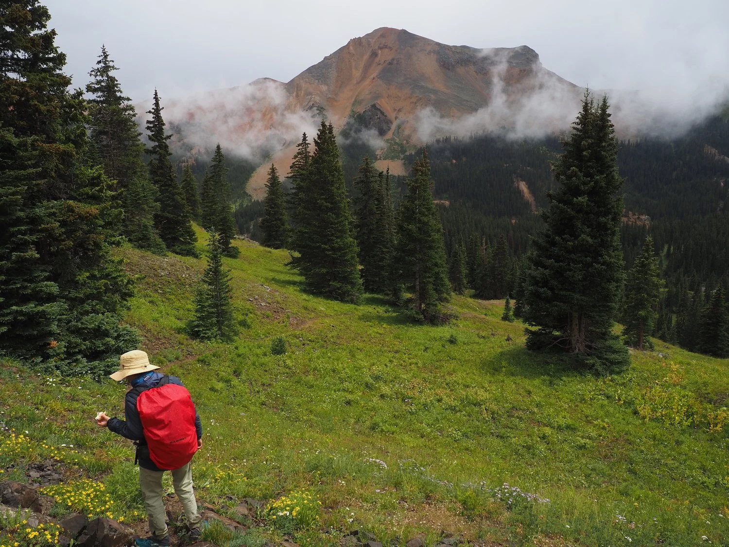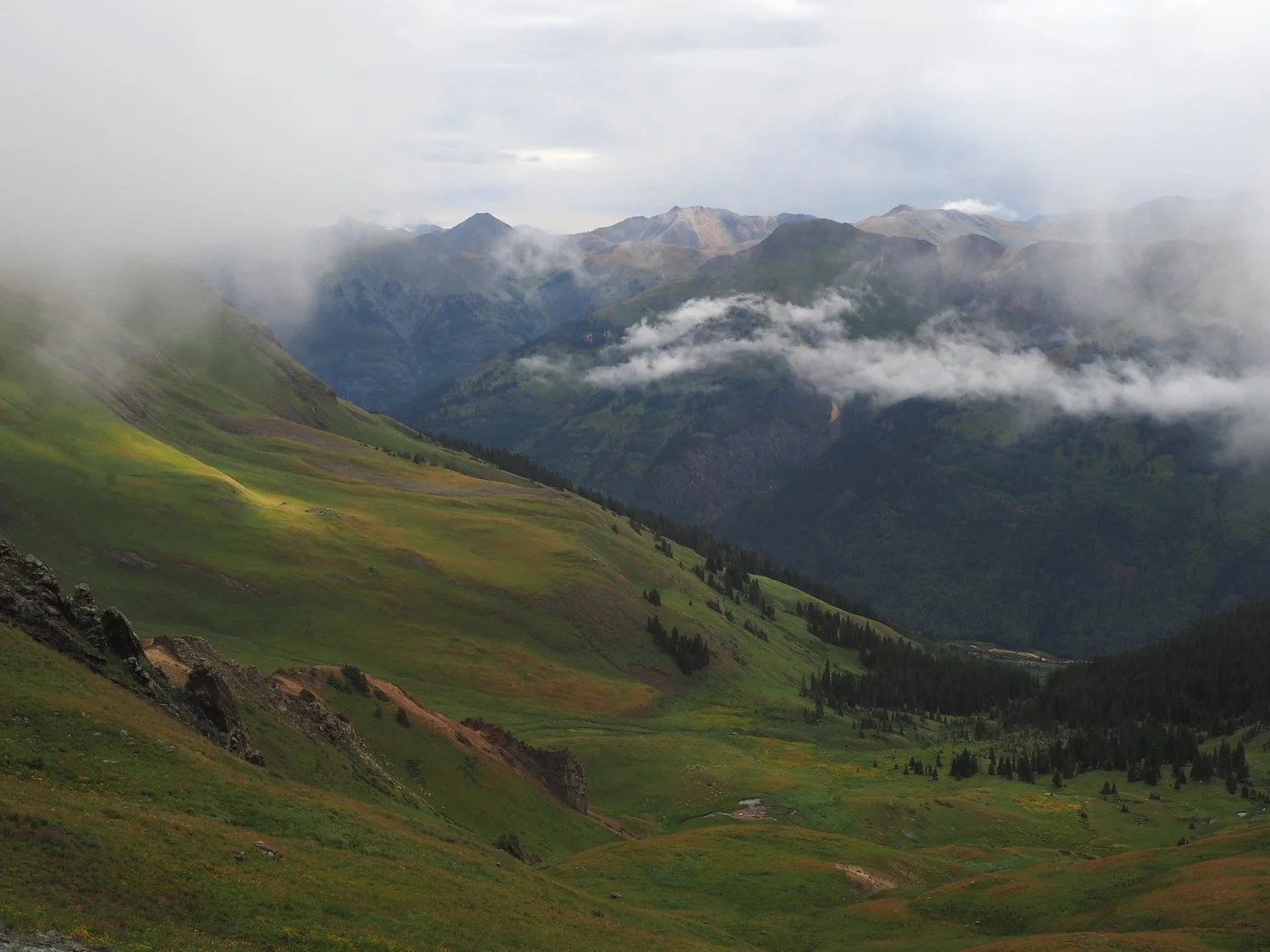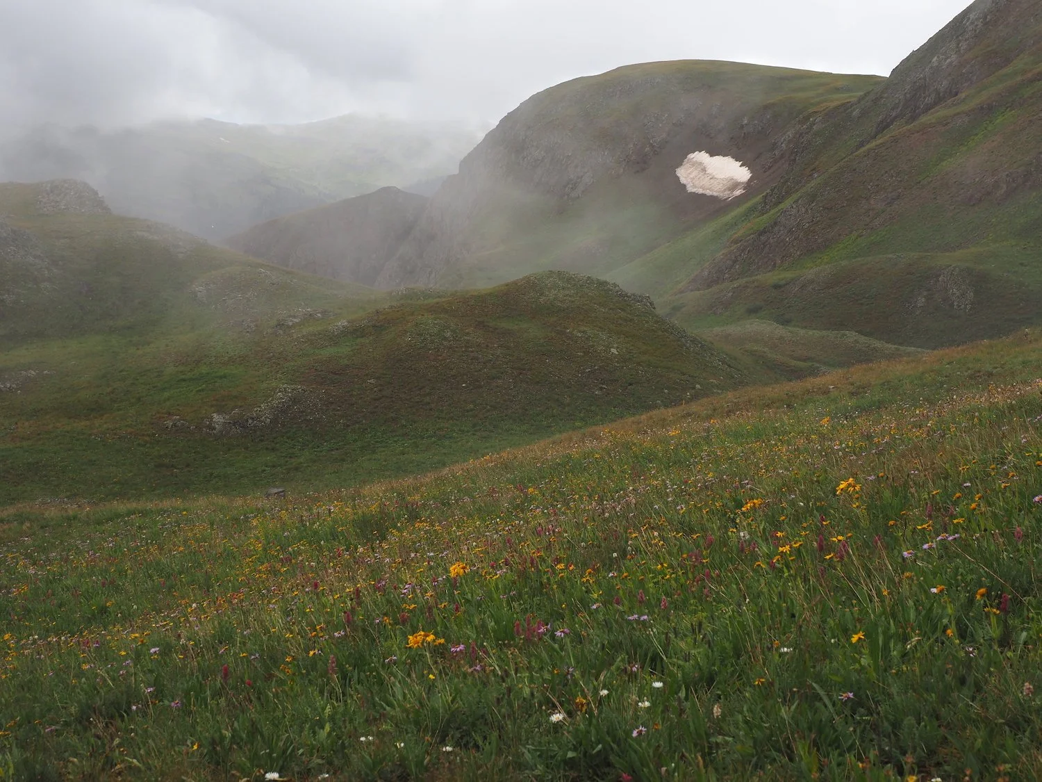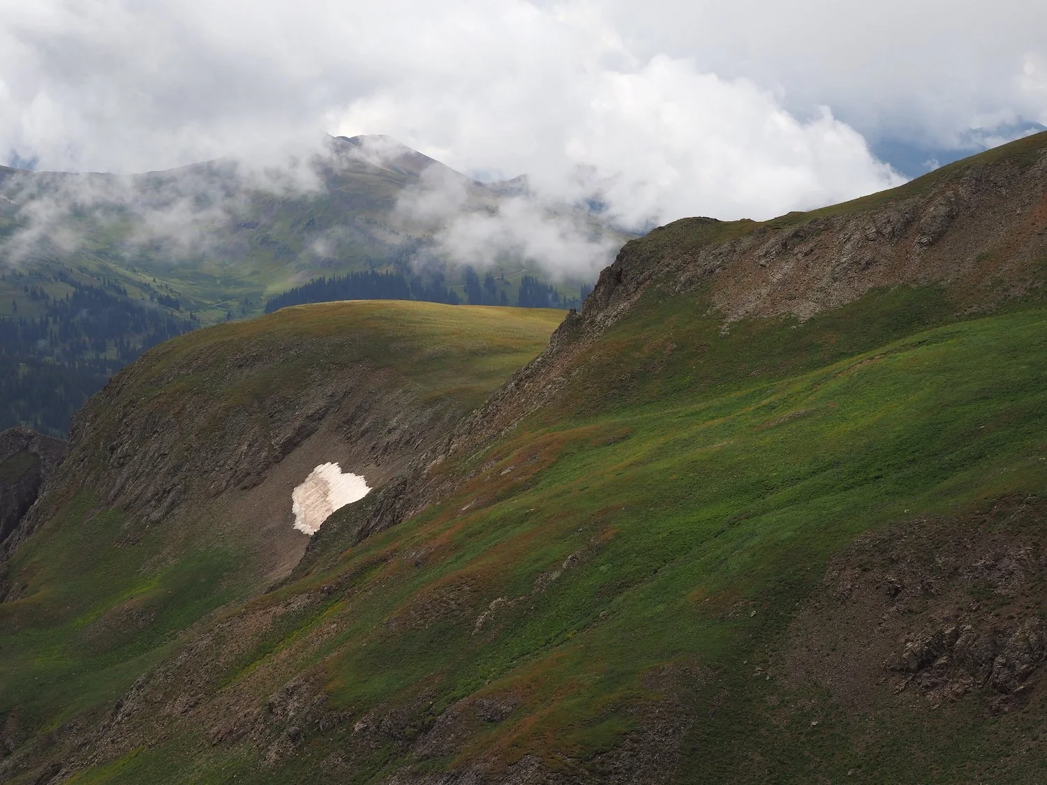 Alpine meadow view / above Molas Pass trailside / clouds are slow to build