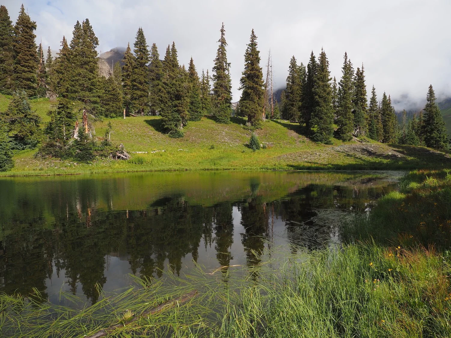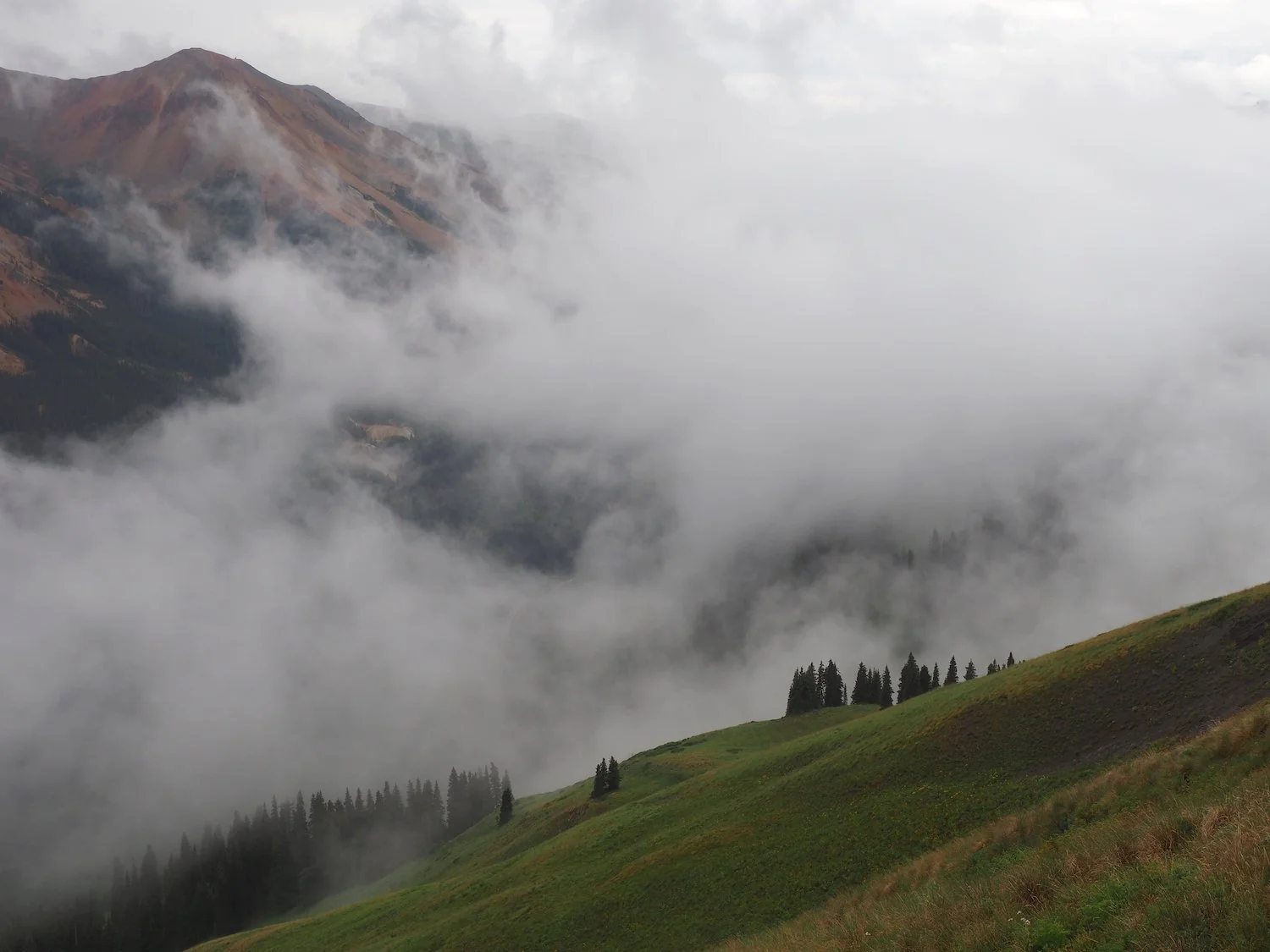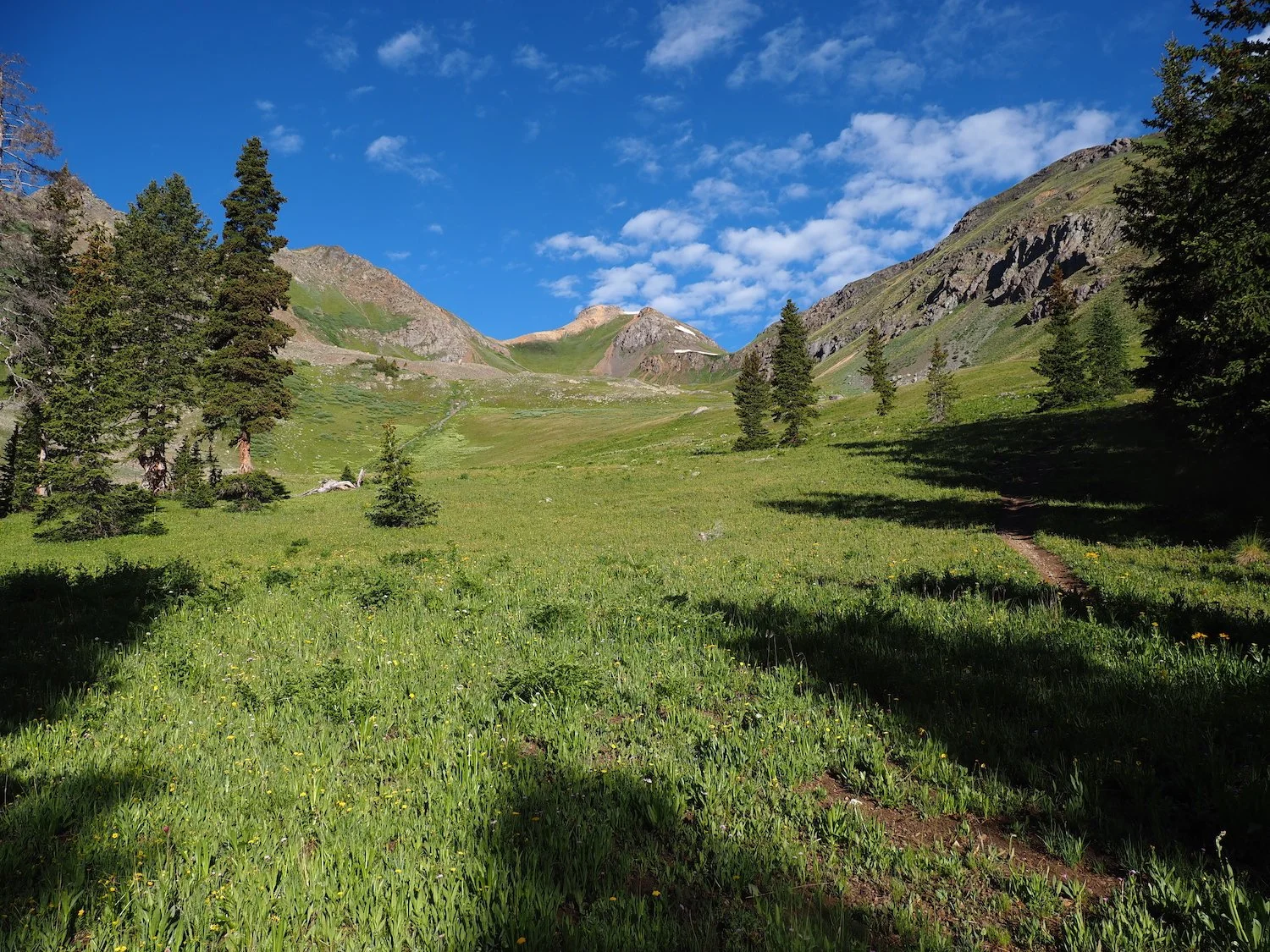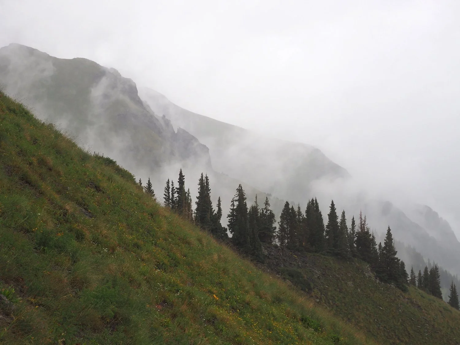 Alpine meadow view / above Molas Pass trailside / clouds are slow to build
