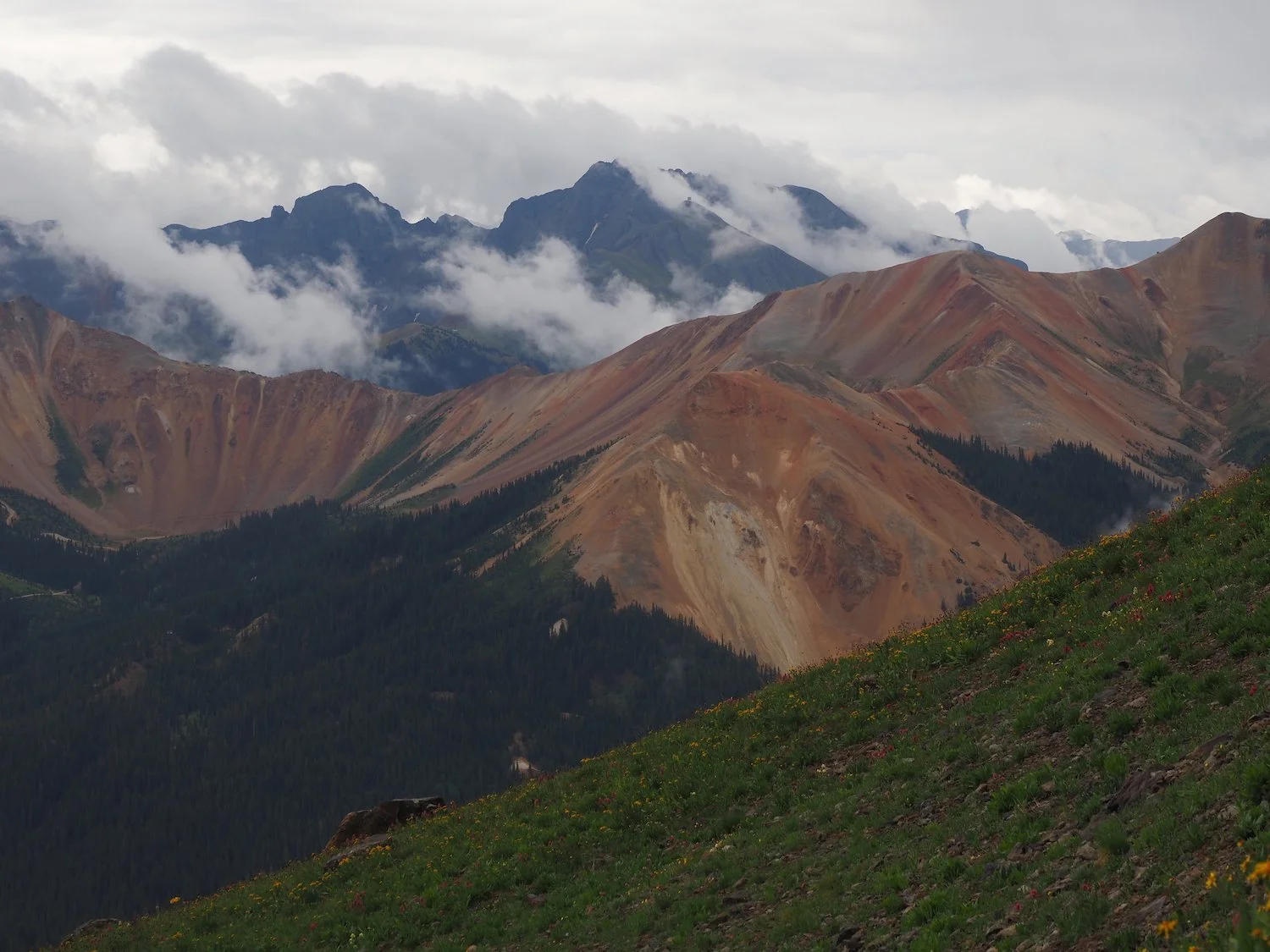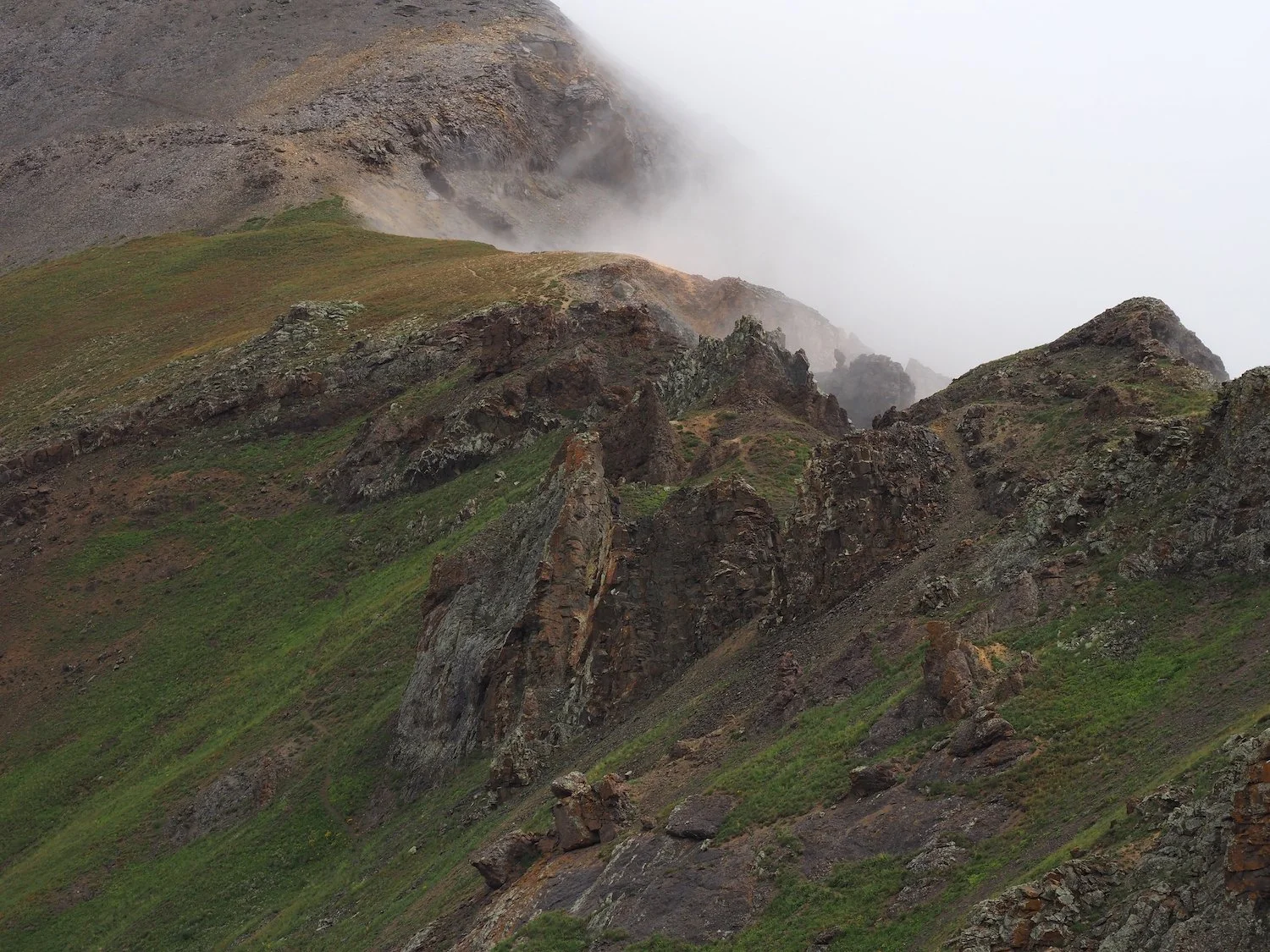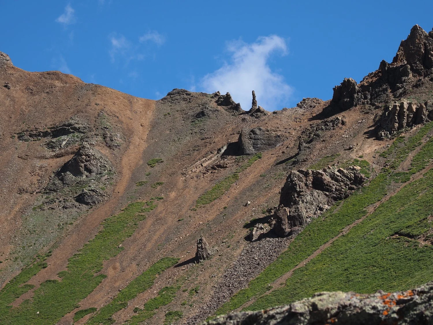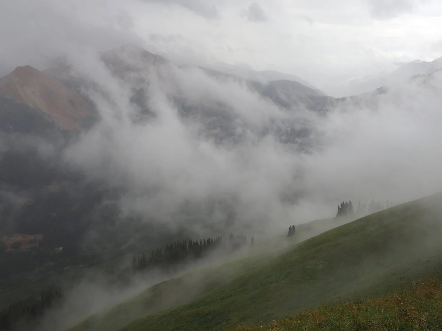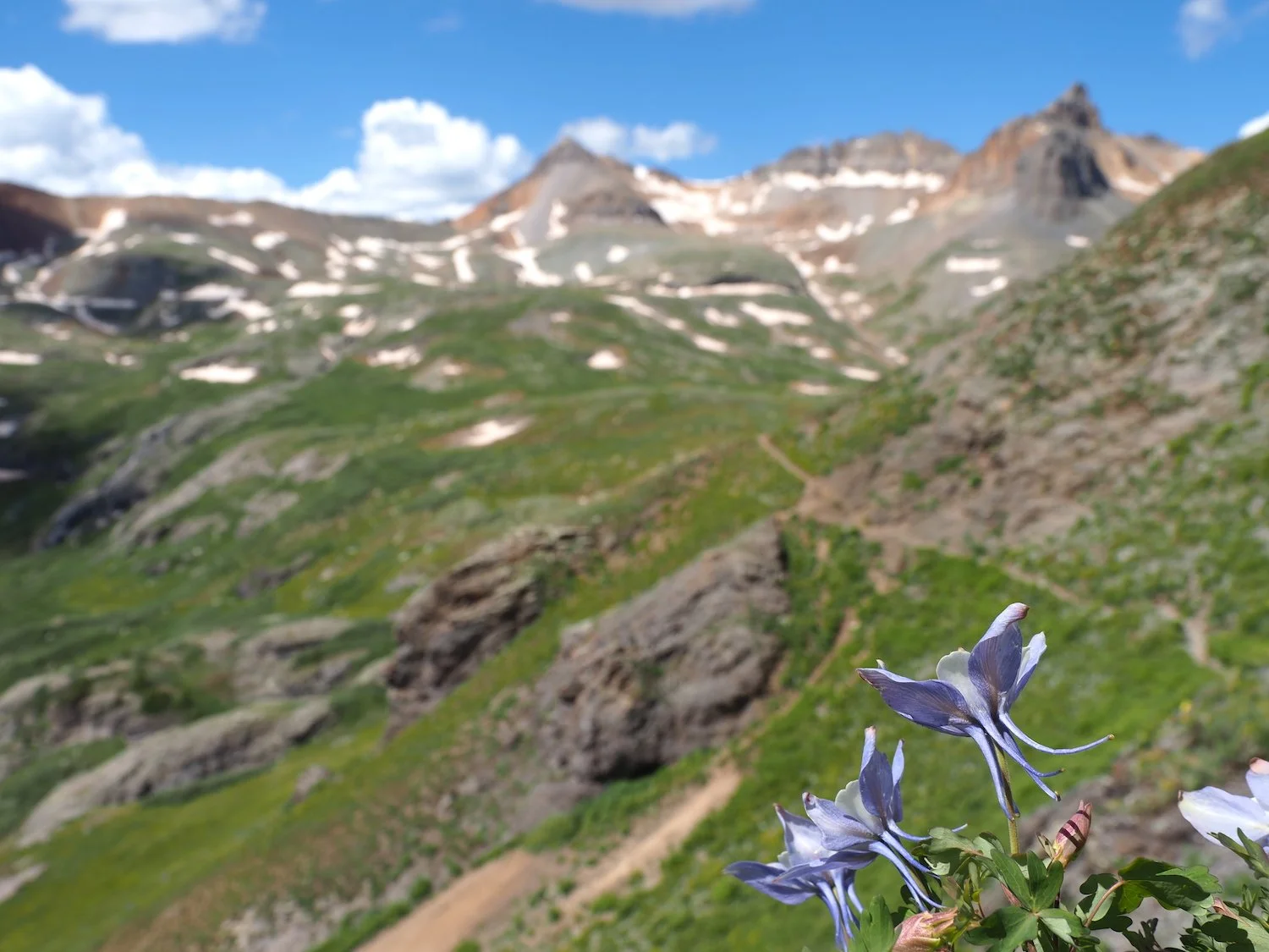 Alpine meadow view / above Molas Pass trailside / clouds are slow to build