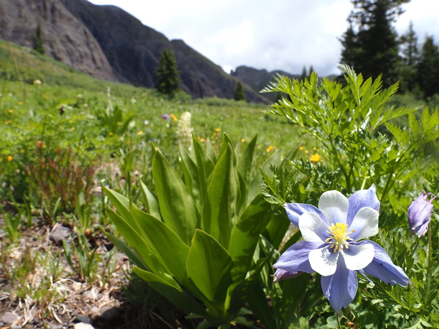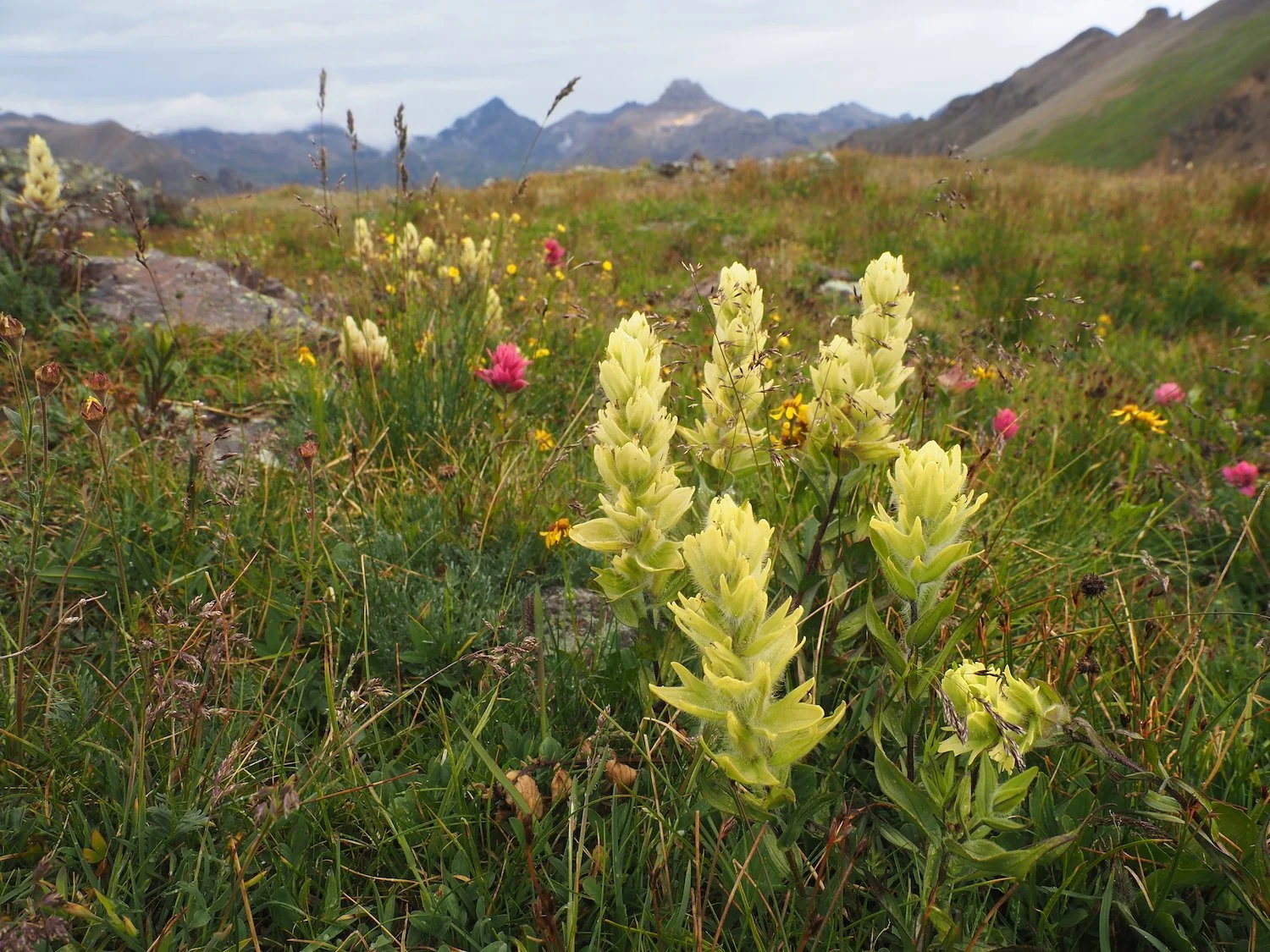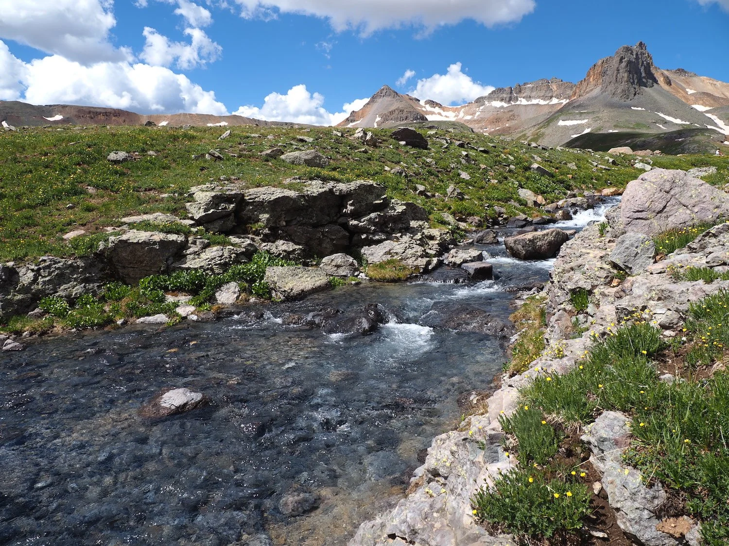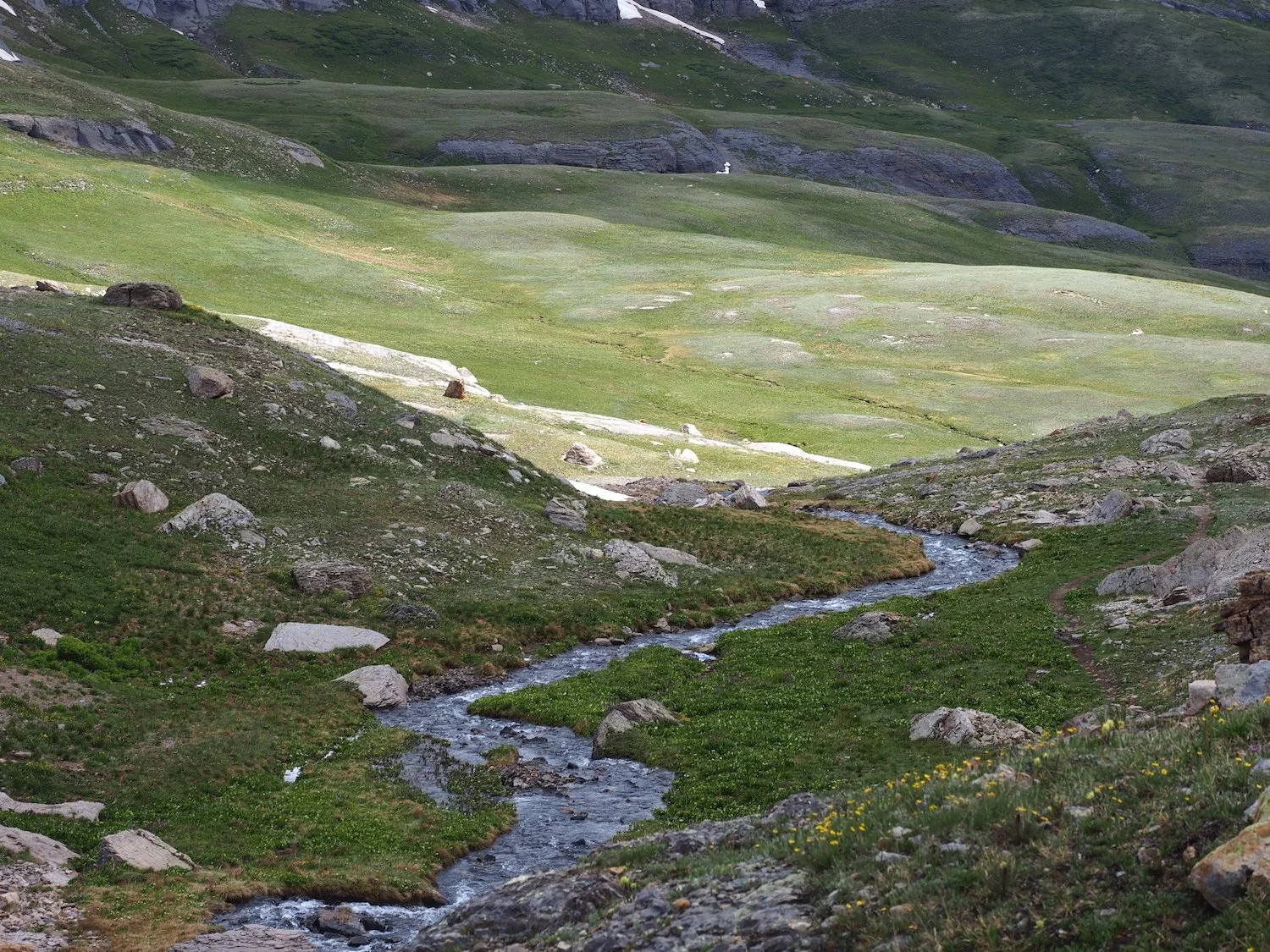 Alpine meadow view / above Molas Pass trailside / clouds are slow to build