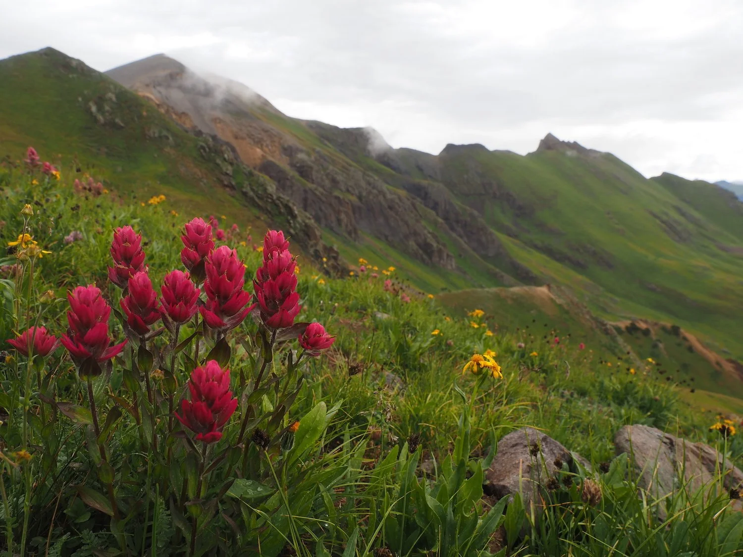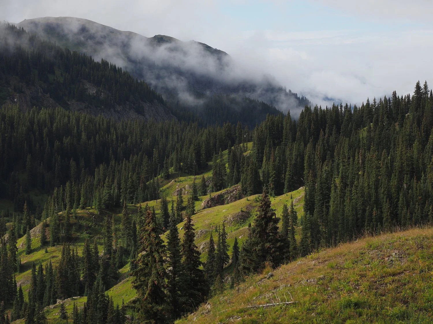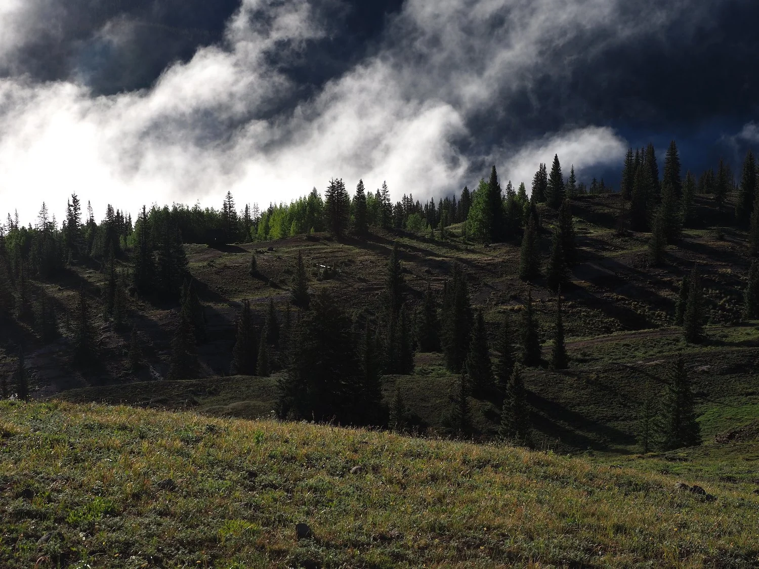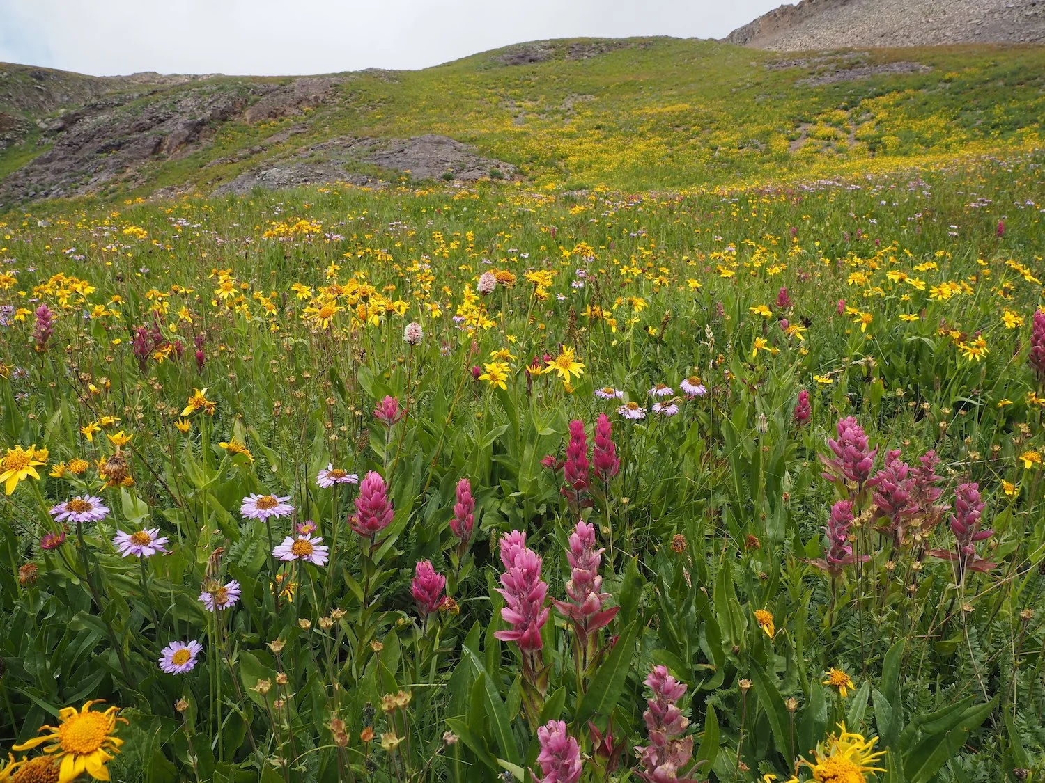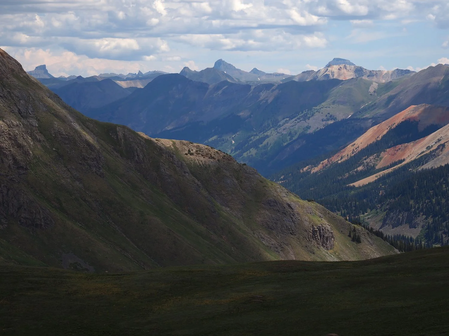Alpine meadow view / above Molas Pass trailside / clouds are slow to build