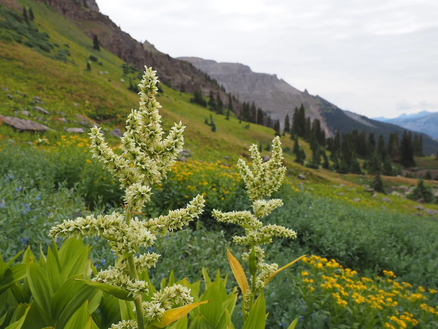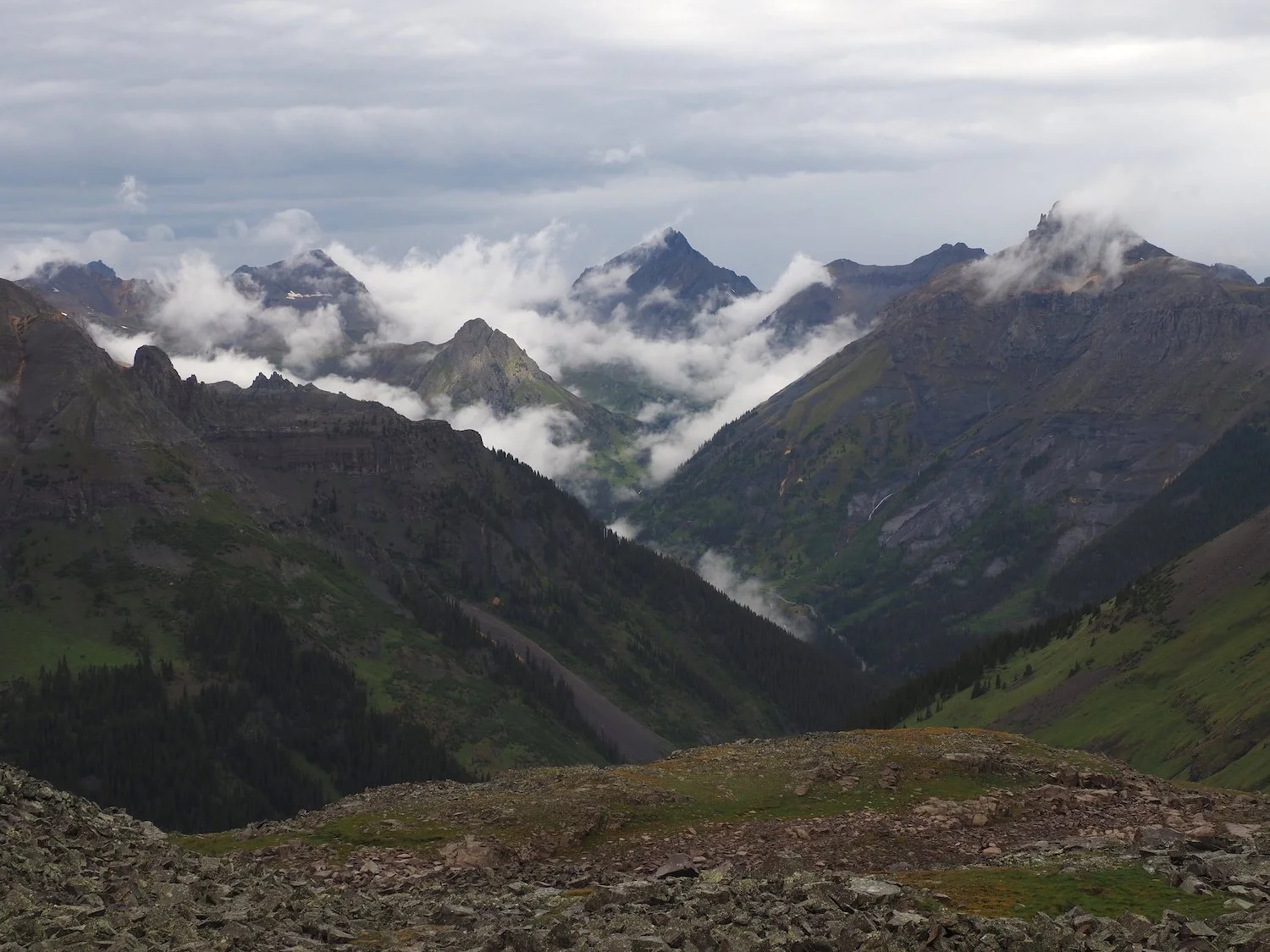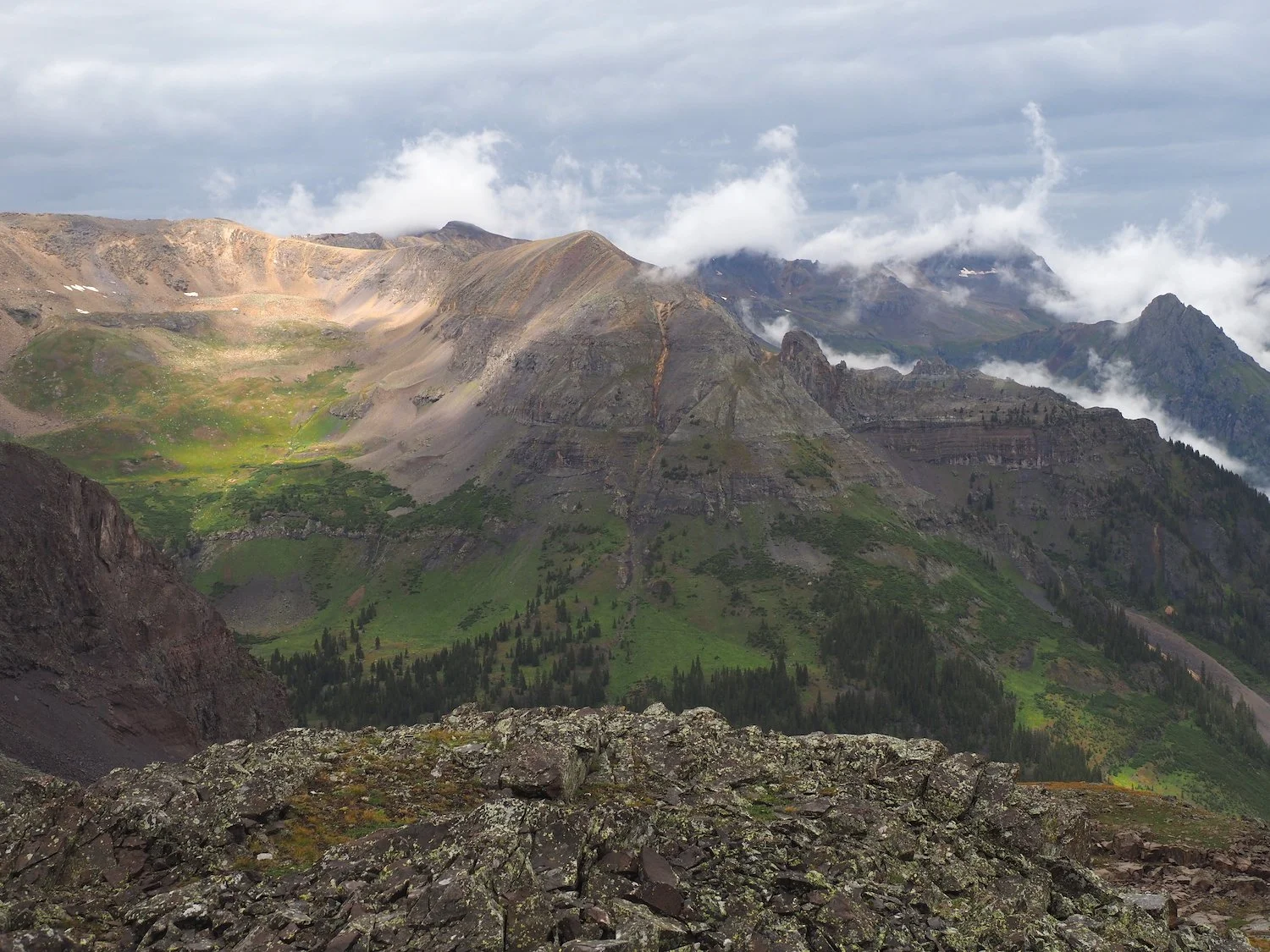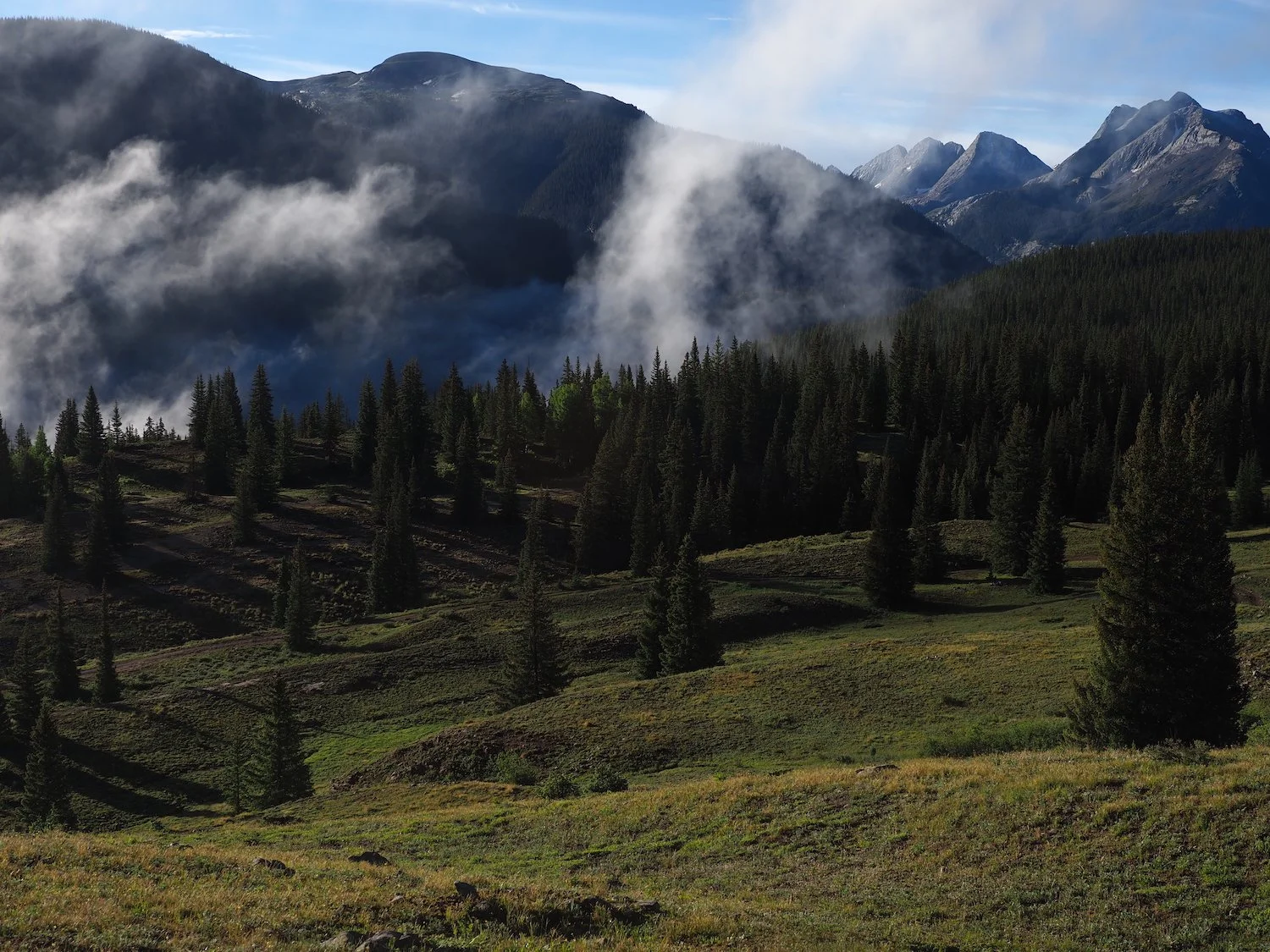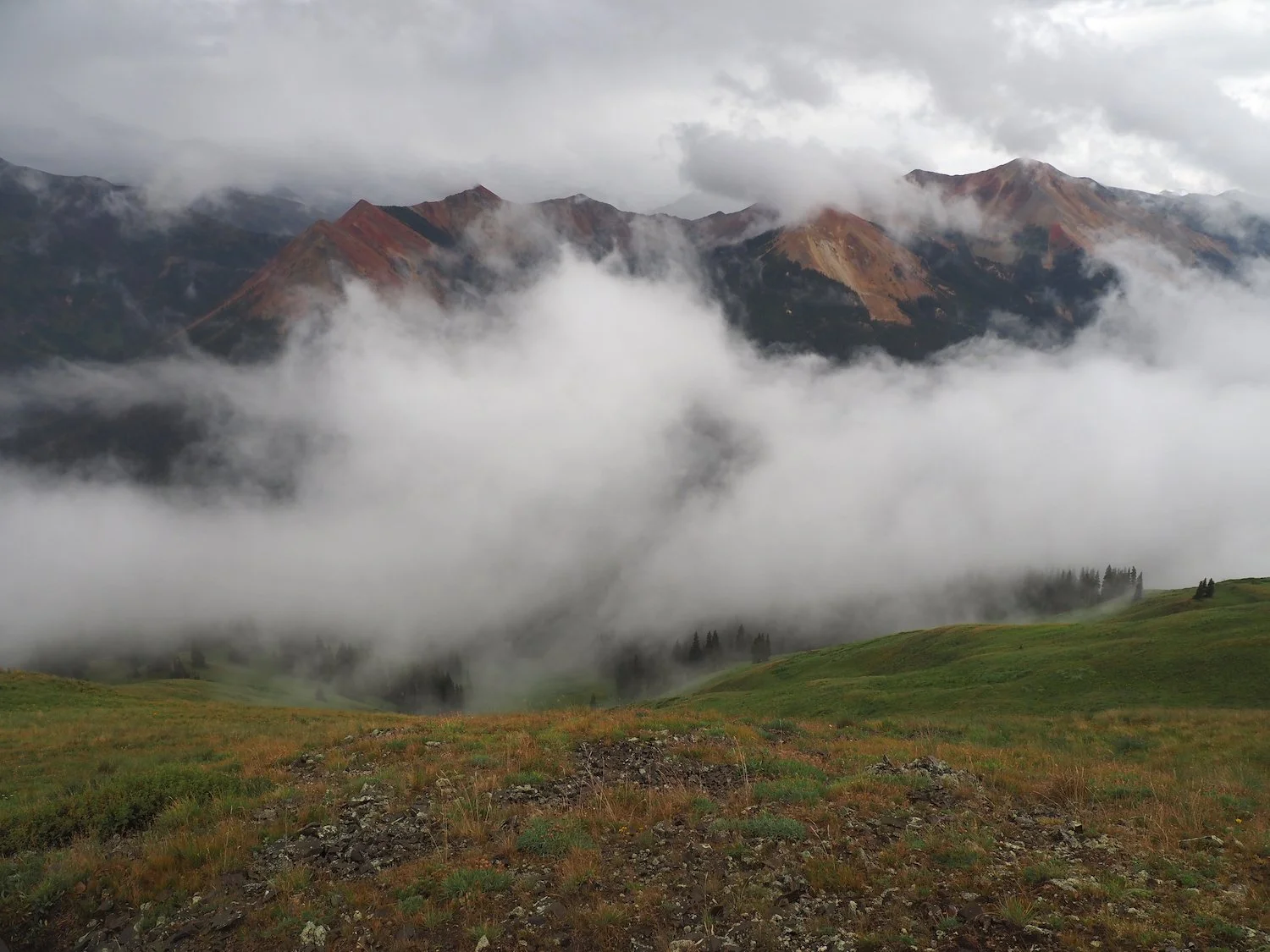 Alpine meadow view / above Molas Pass trailside / clouds are slow to build
