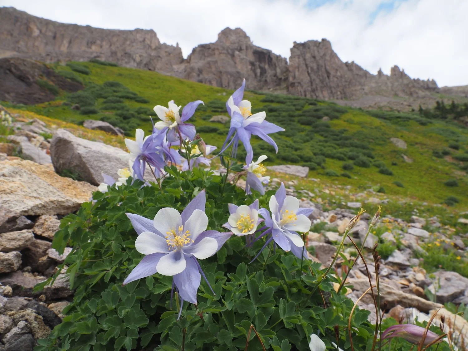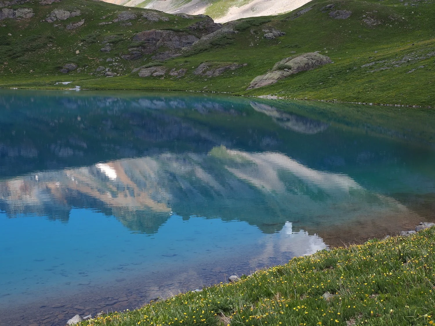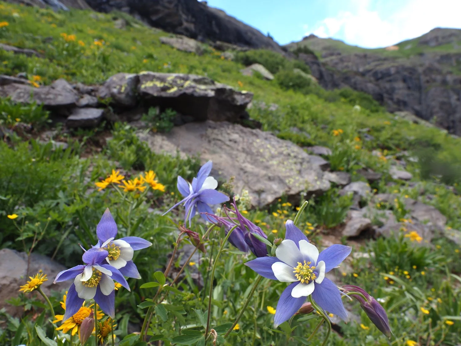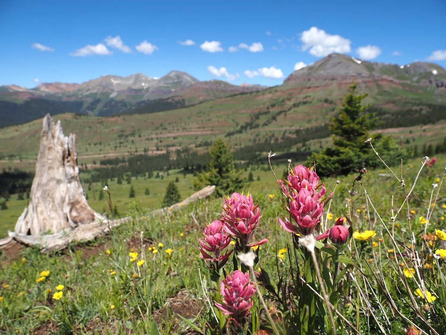 Alpine meadow view / above Molas Pass trailside / clouds are slow to build