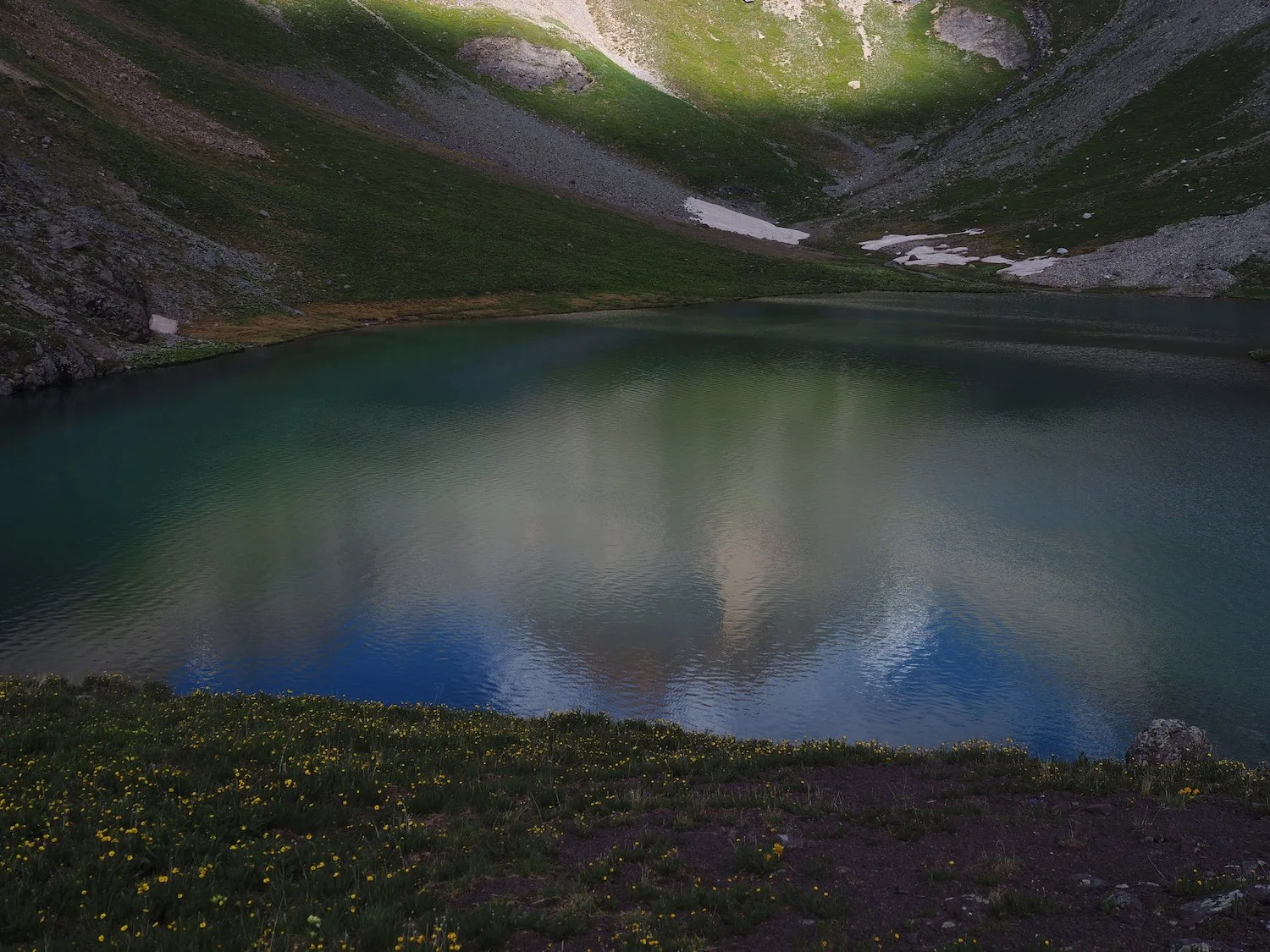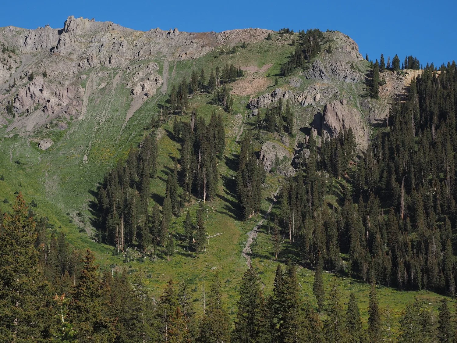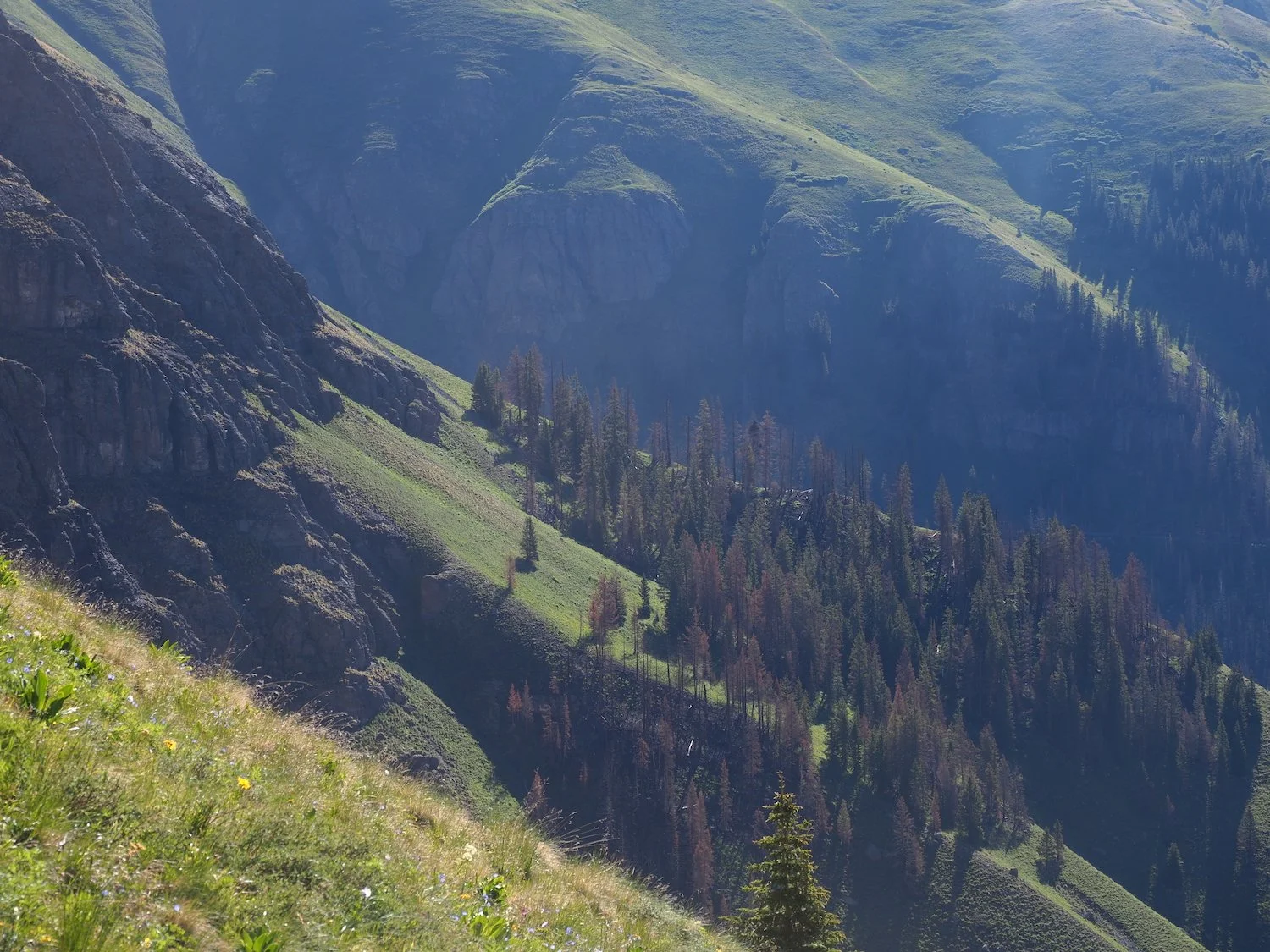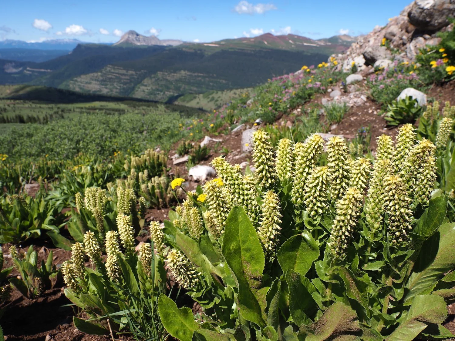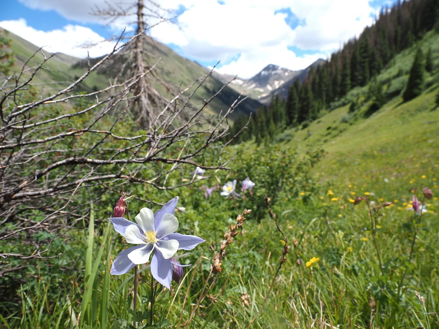 Alpine meadow view / above Molas Pass trailside / clouds are slow to build