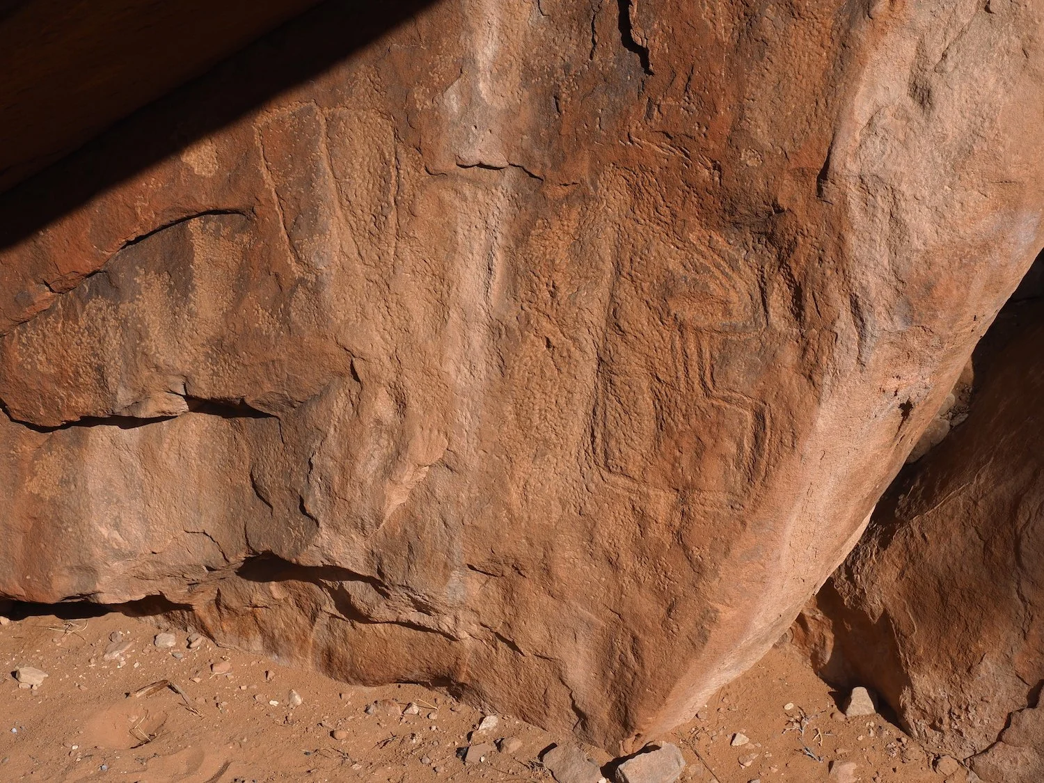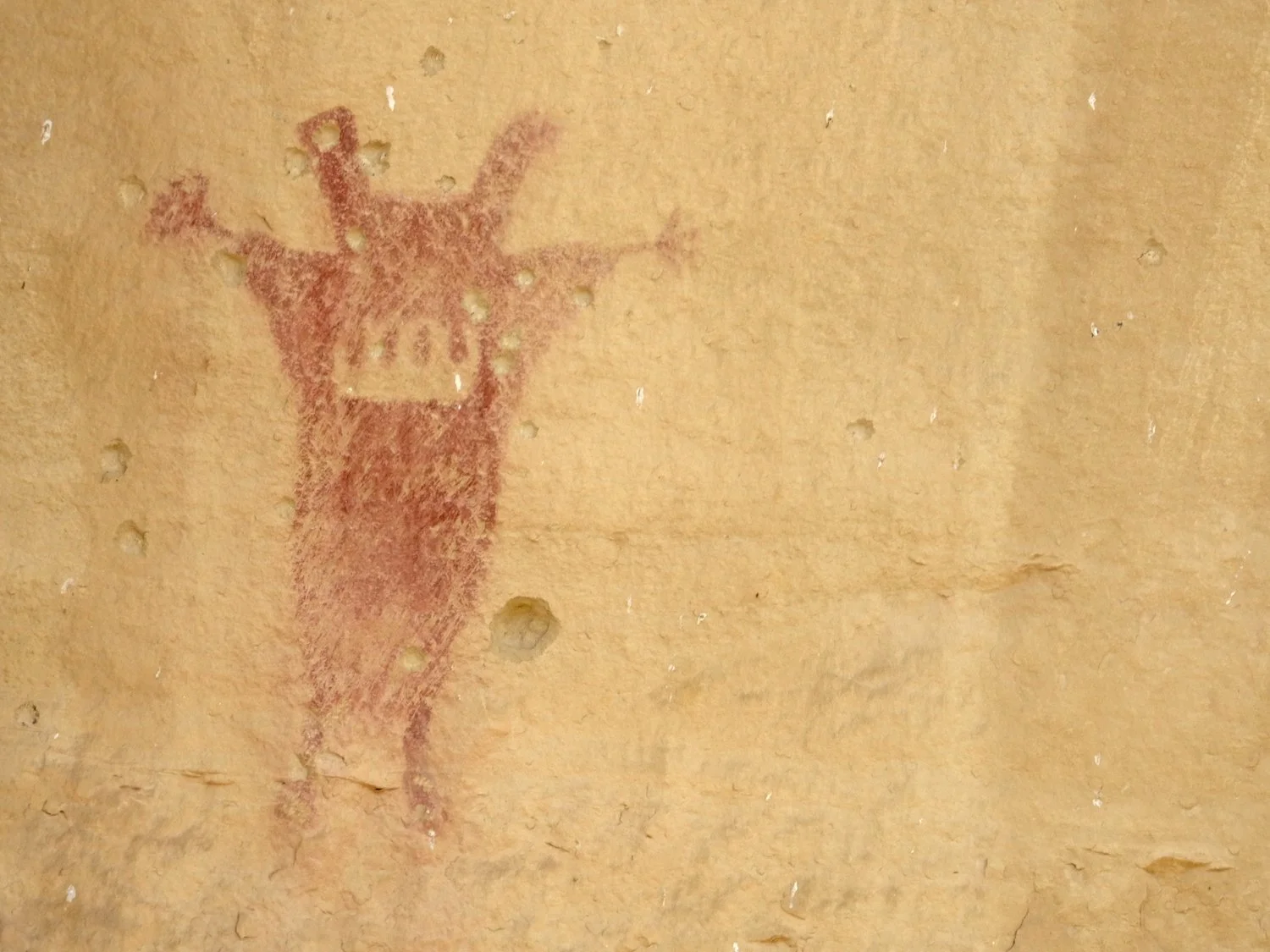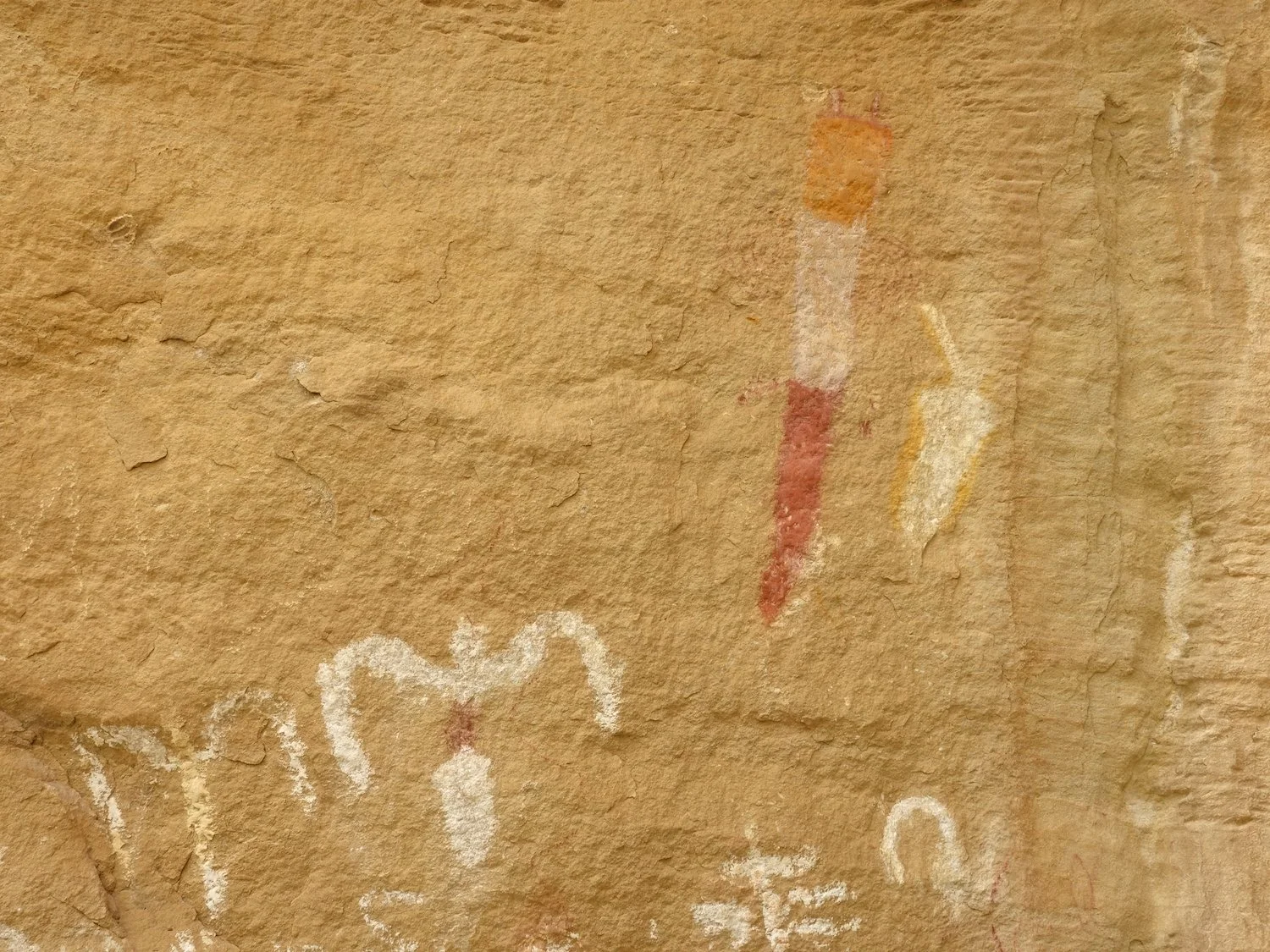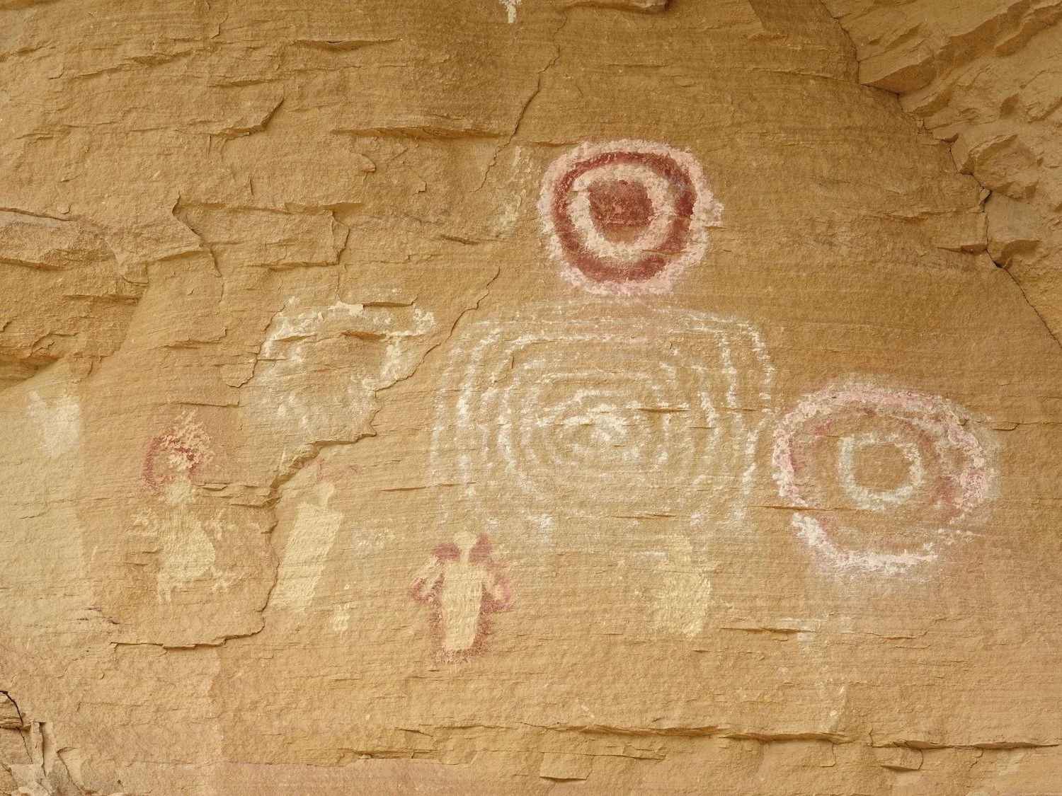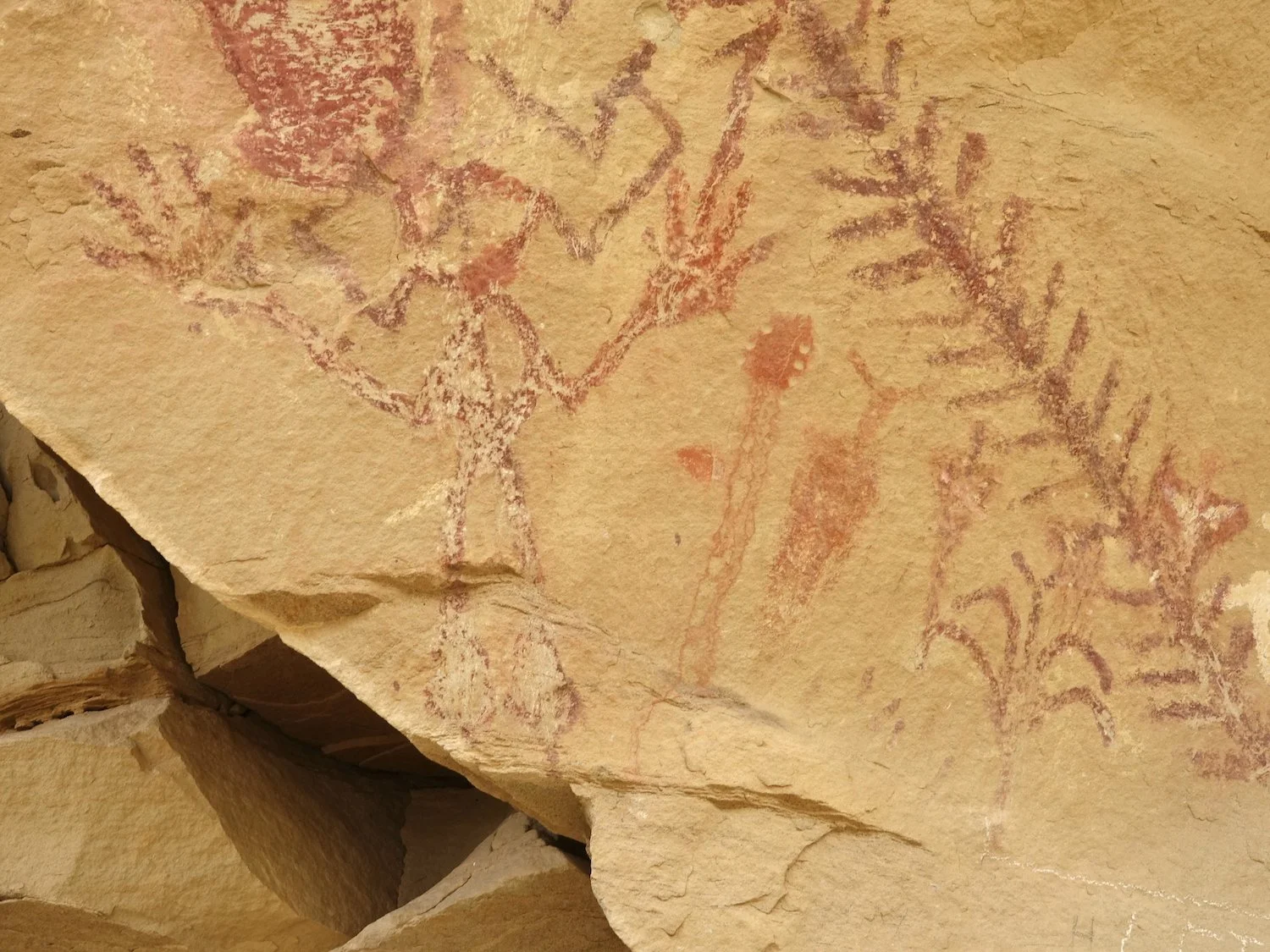 Polychrome pictos / found in sandstone overhangs / eight hundred years old