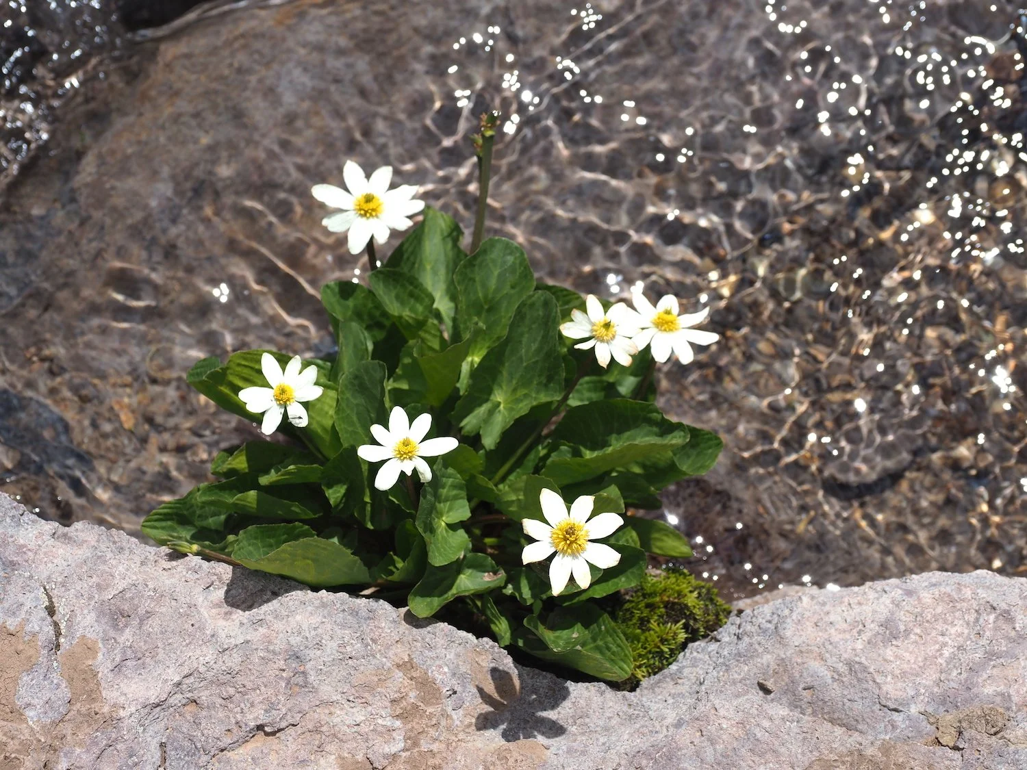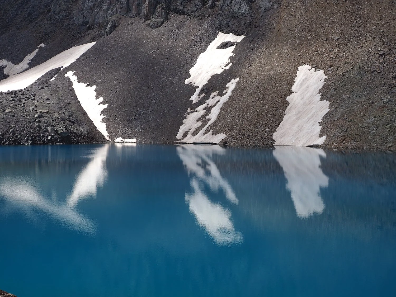 Snowbank reflection / glacial flour & carbonate spring / building clouds at lunch
