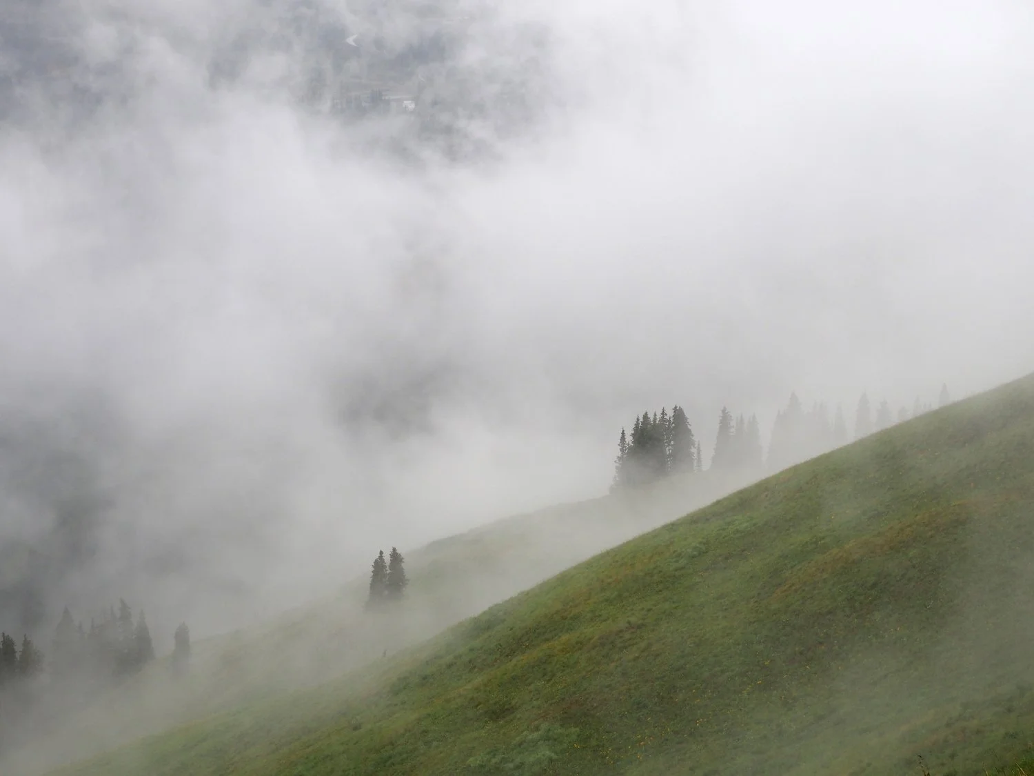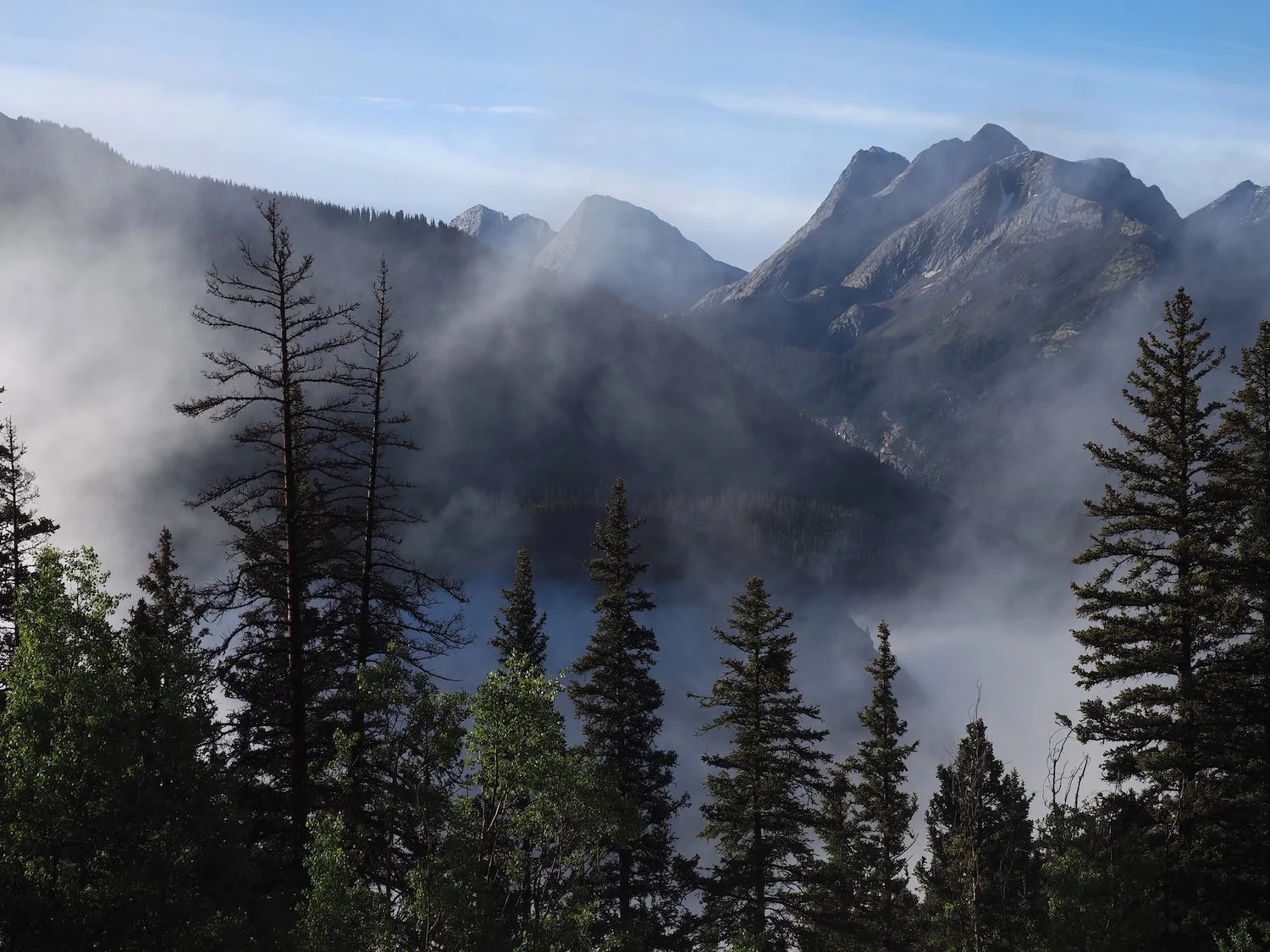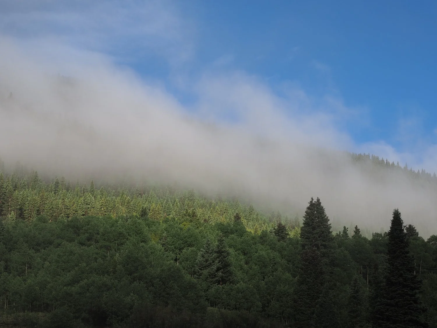 Rain on the hike up / once in a while you luck out / view of a clearing