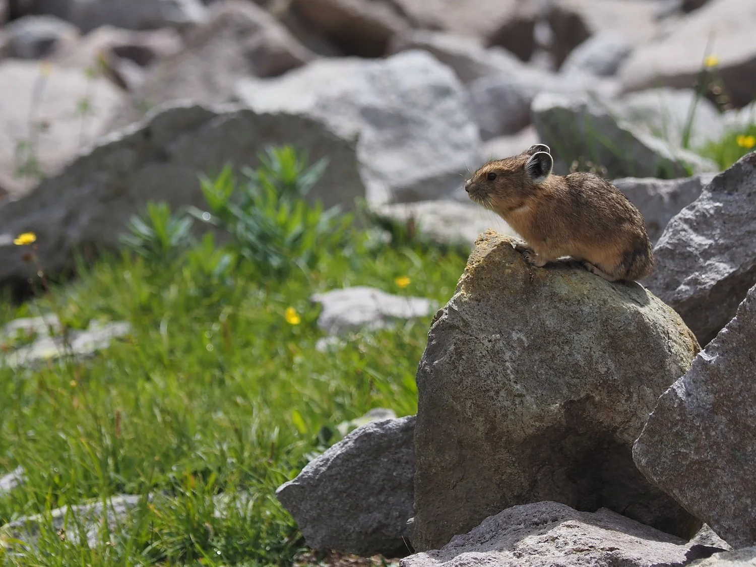 Pika stops on perch / runs into alpine fell-field / winter is coming
