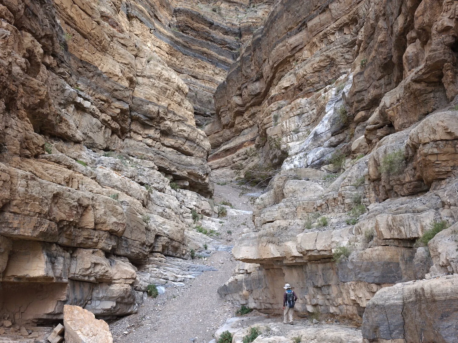 Junko working with the ledges to navigate around a dryfall in Falls Canyon