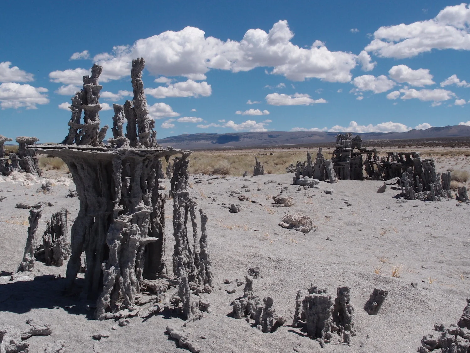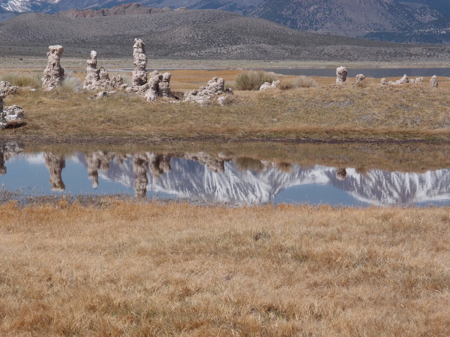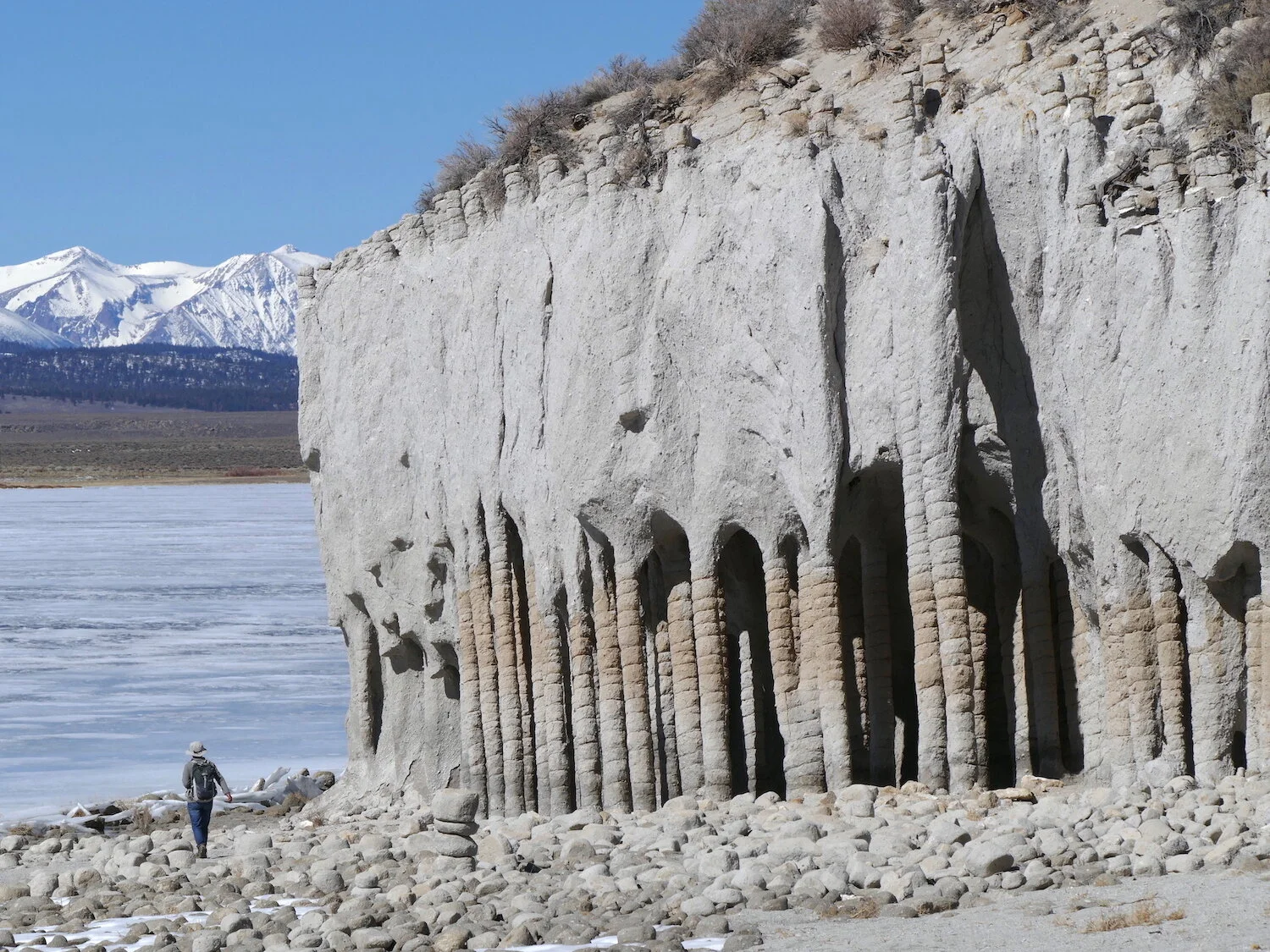 columns at Crowley Lake / were formed by underground springs / reservoir reveal