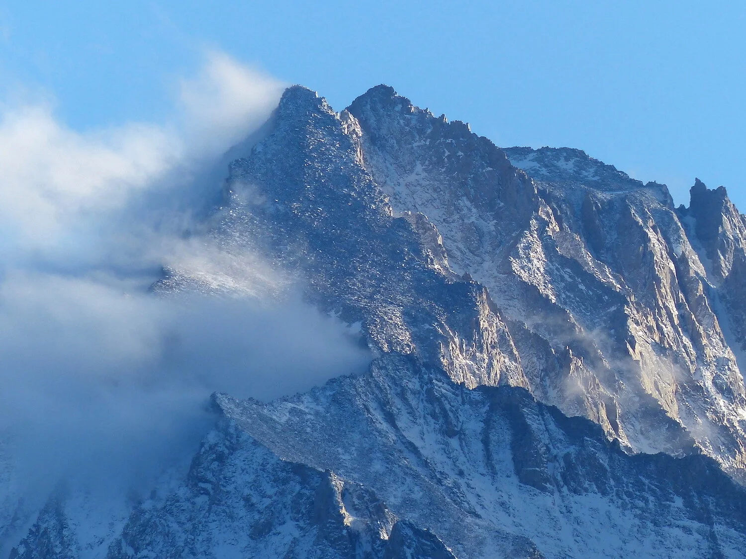 big mountain near home / north face of Mount Williamson / storm clearing and fog