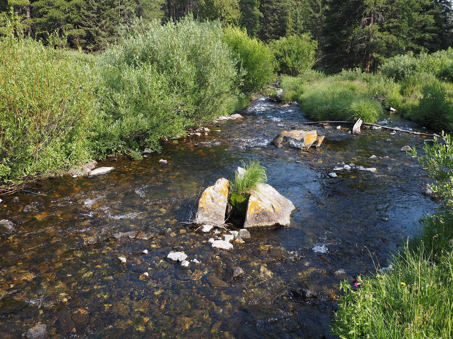 Kane Creek below lake / Rock split apart in the stream / Right beside the trail