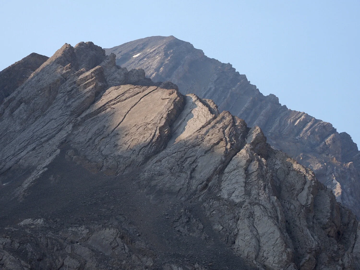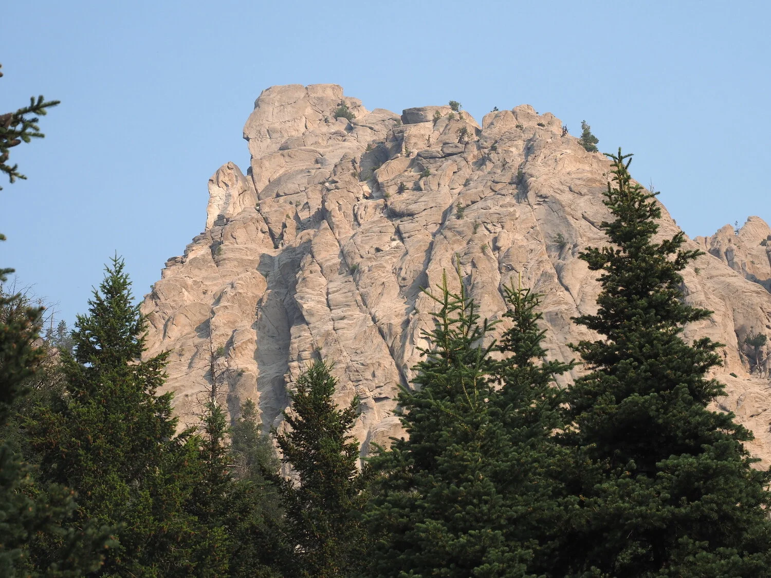 Rock Fringe below trail / Sawtooth Lake and Mount Regan / An early start helps