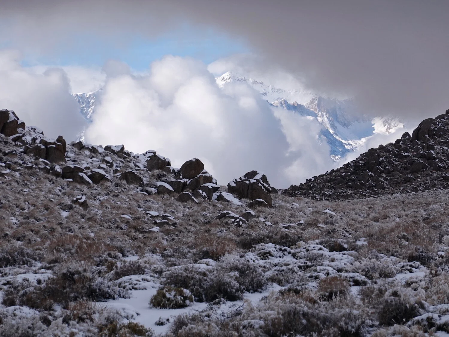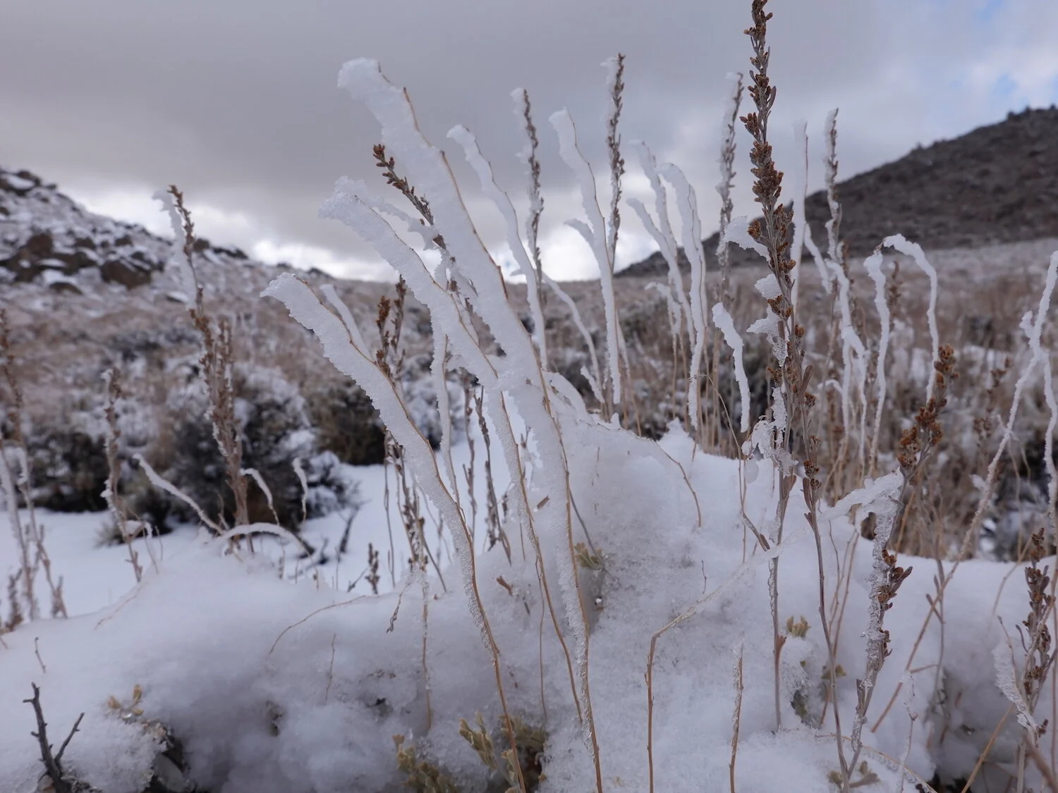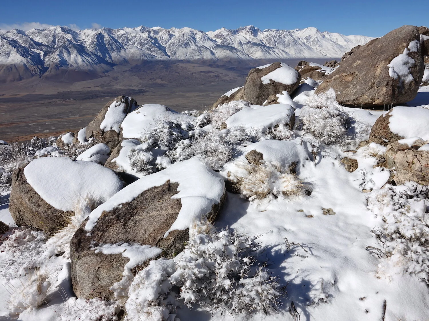 Into the snow in the Inyos with buckwheat