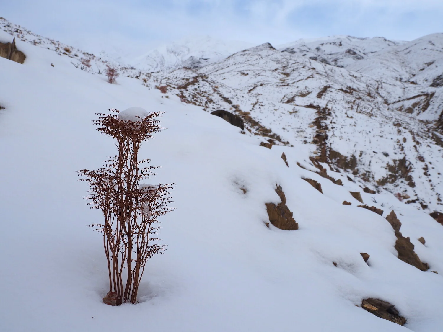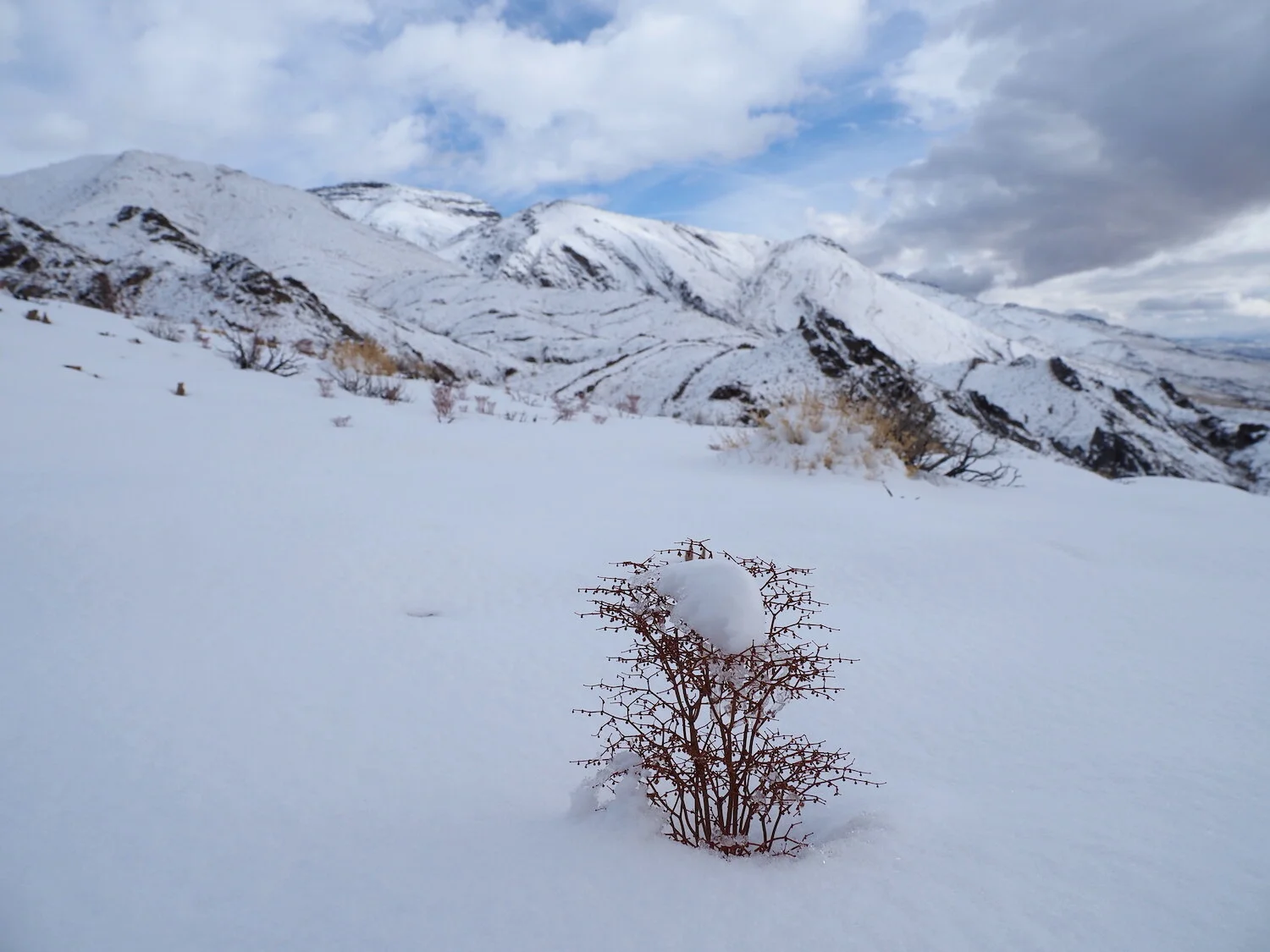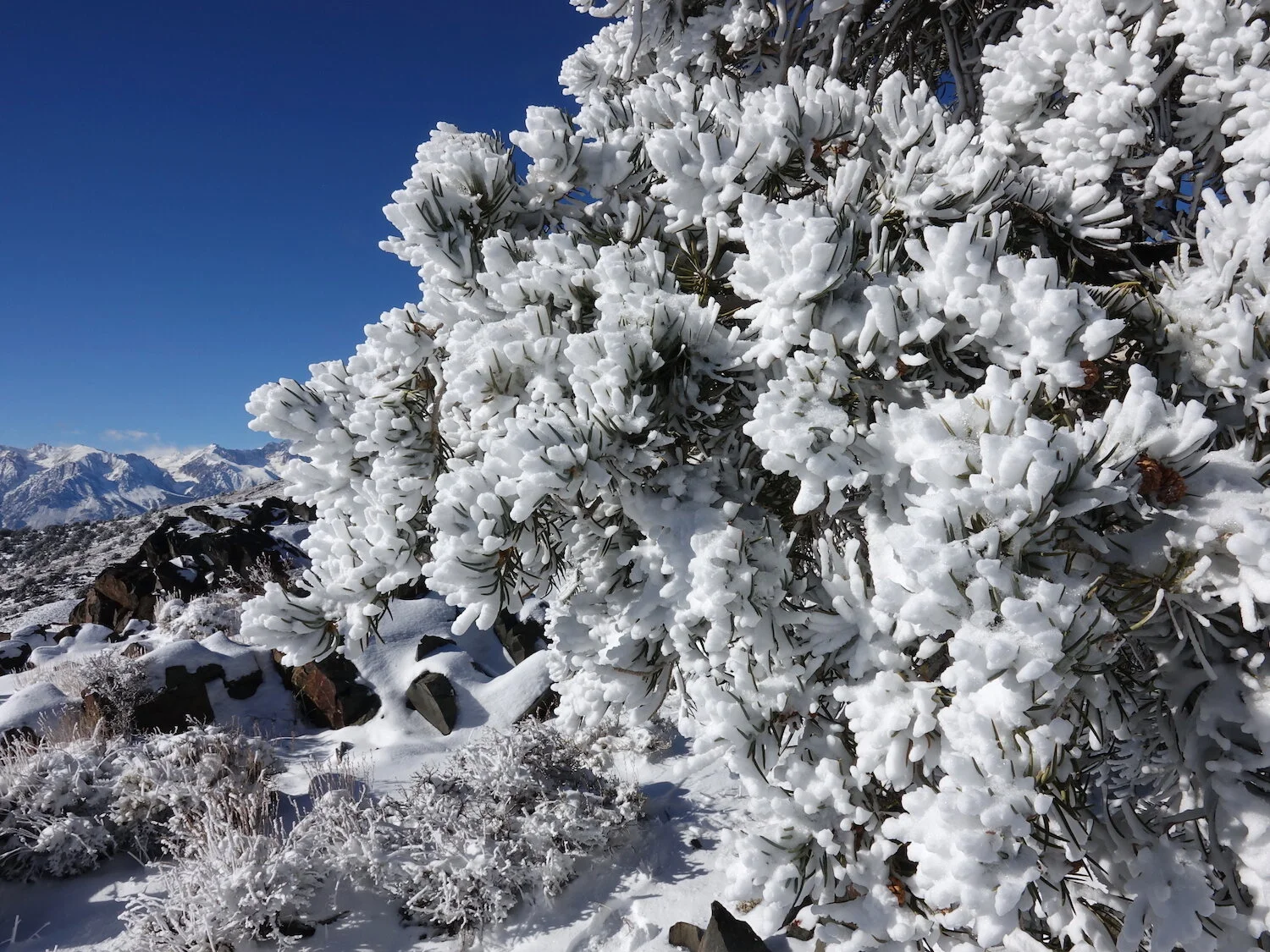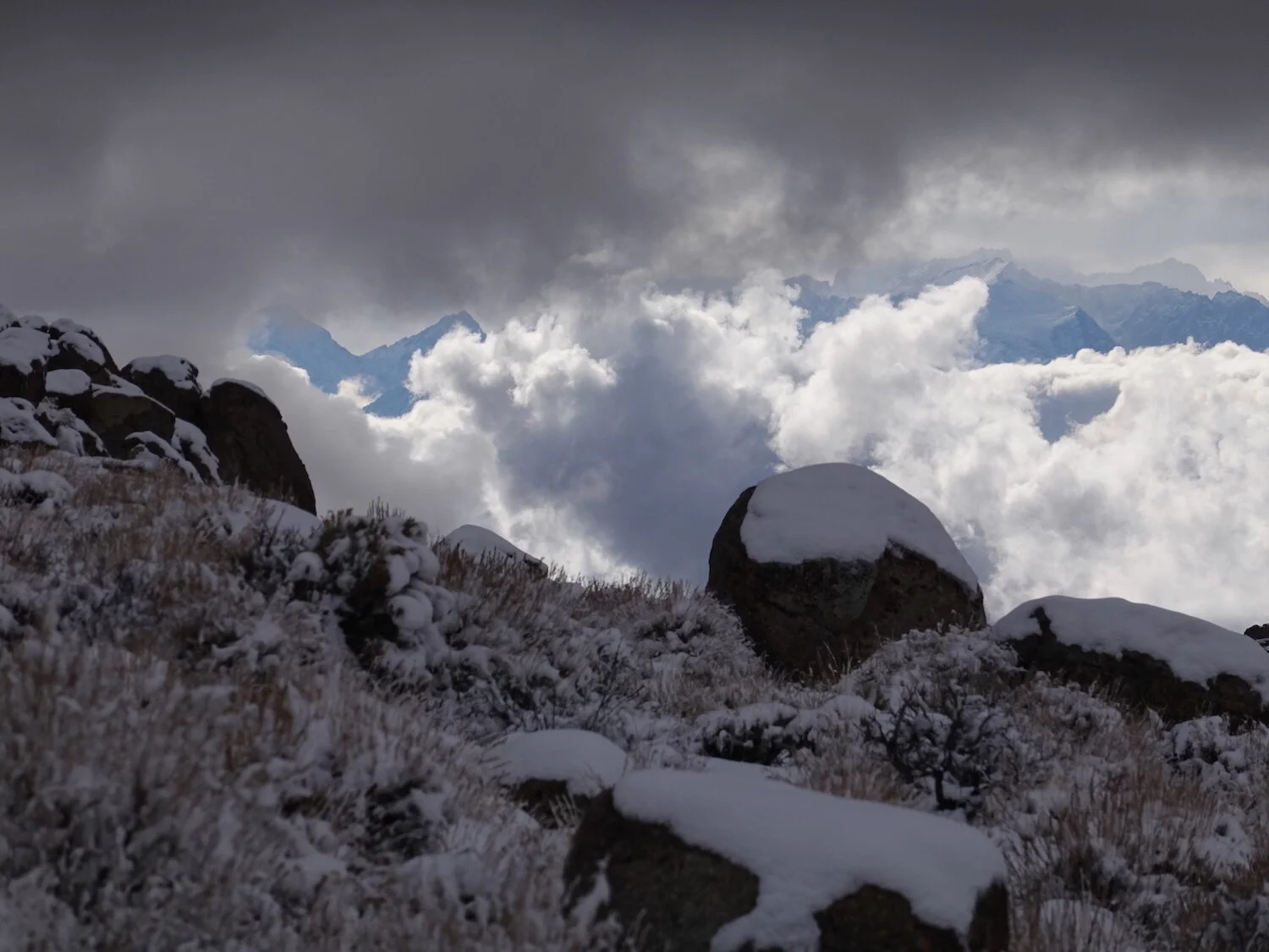 Into the snow in the Inyos with buckwheat