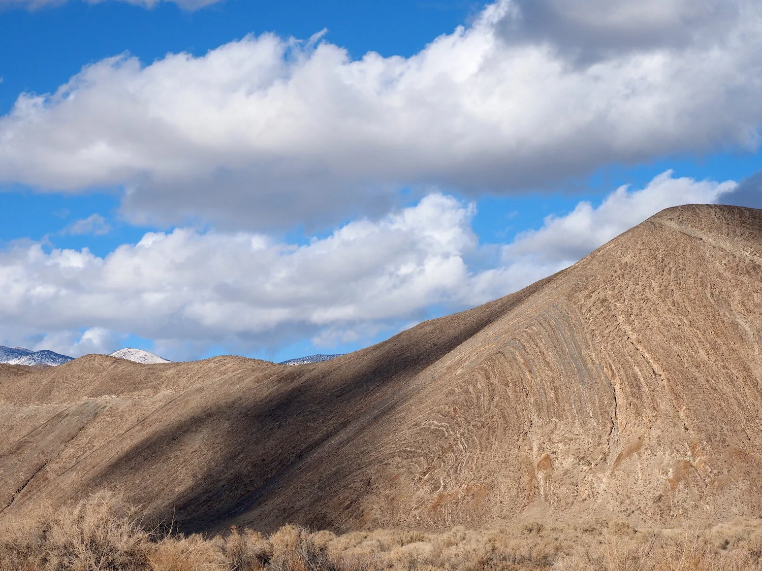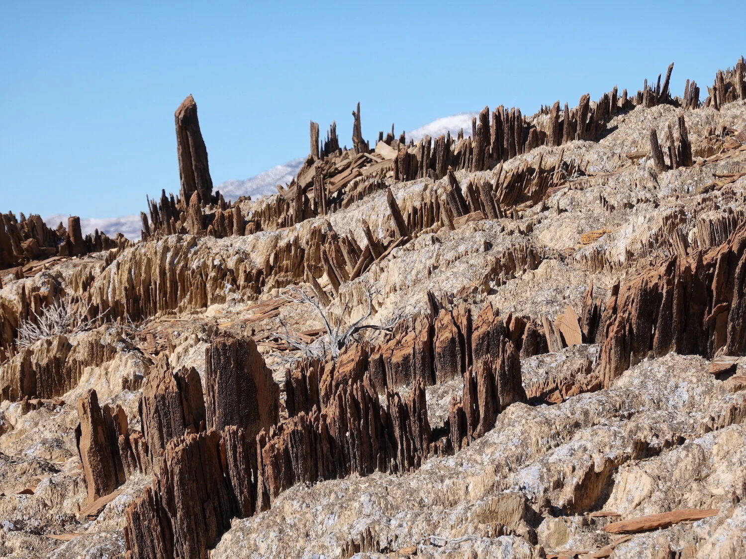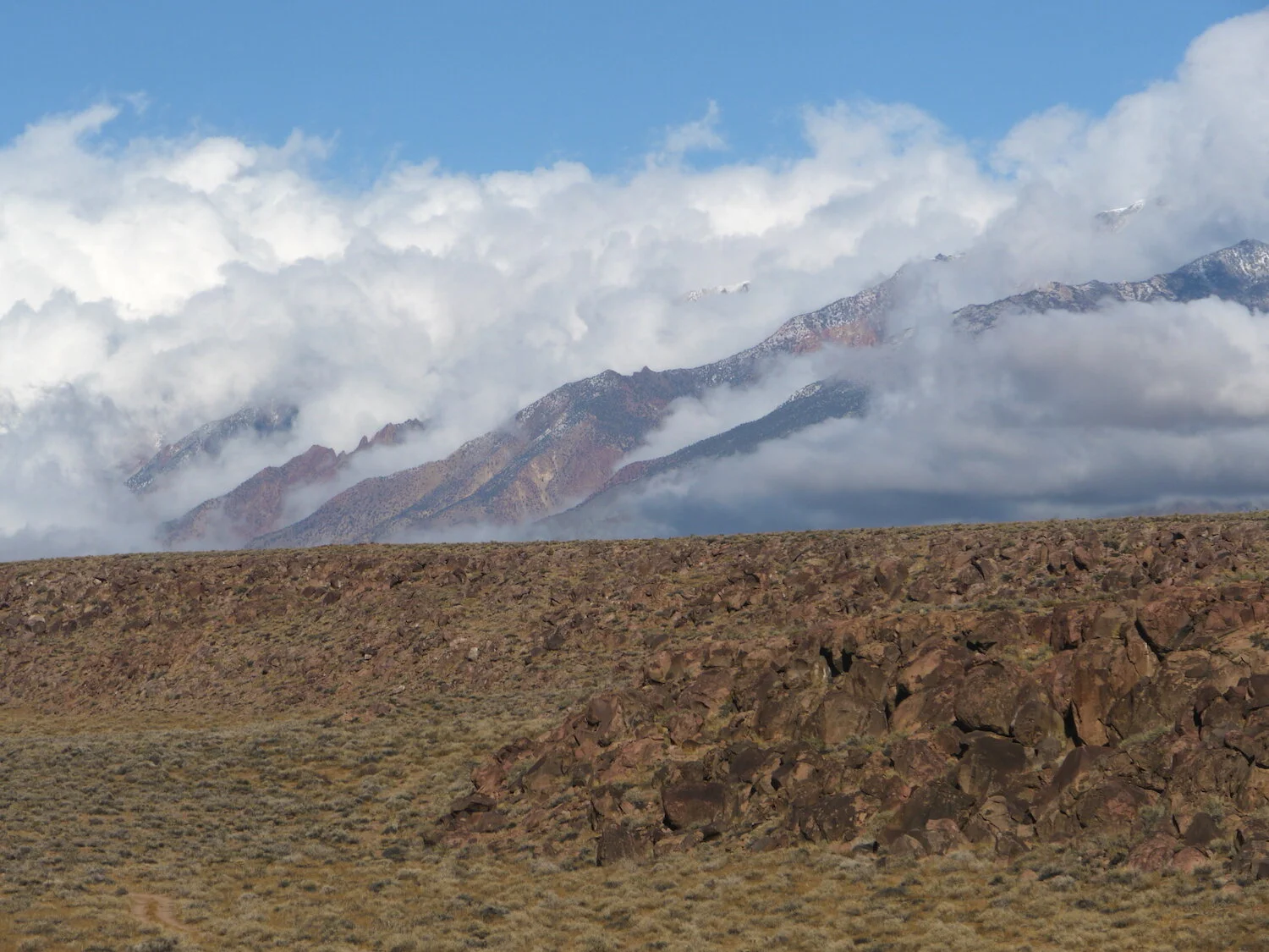 snow level creates / highlights devils dominoes / Inyo eye in sky