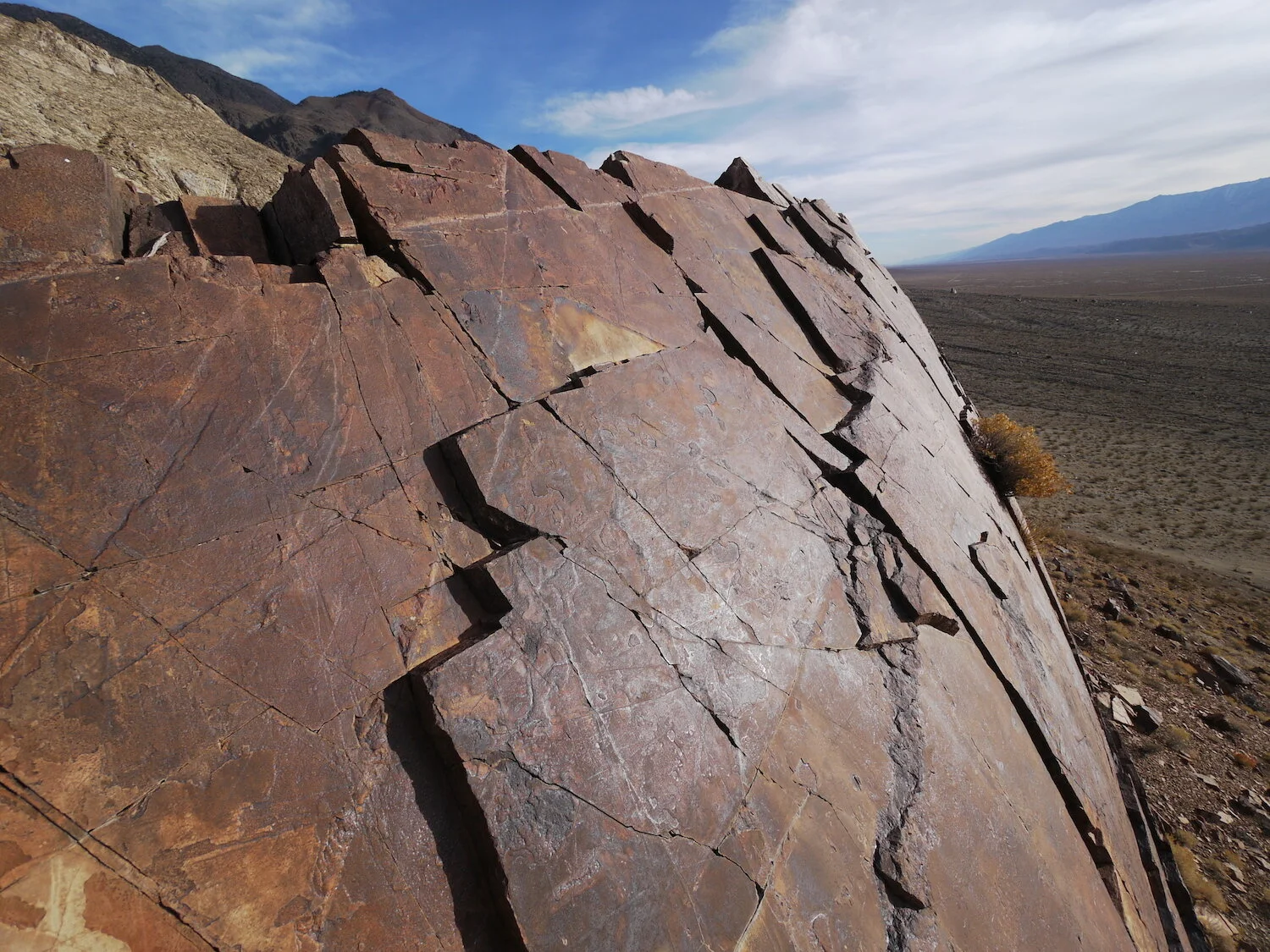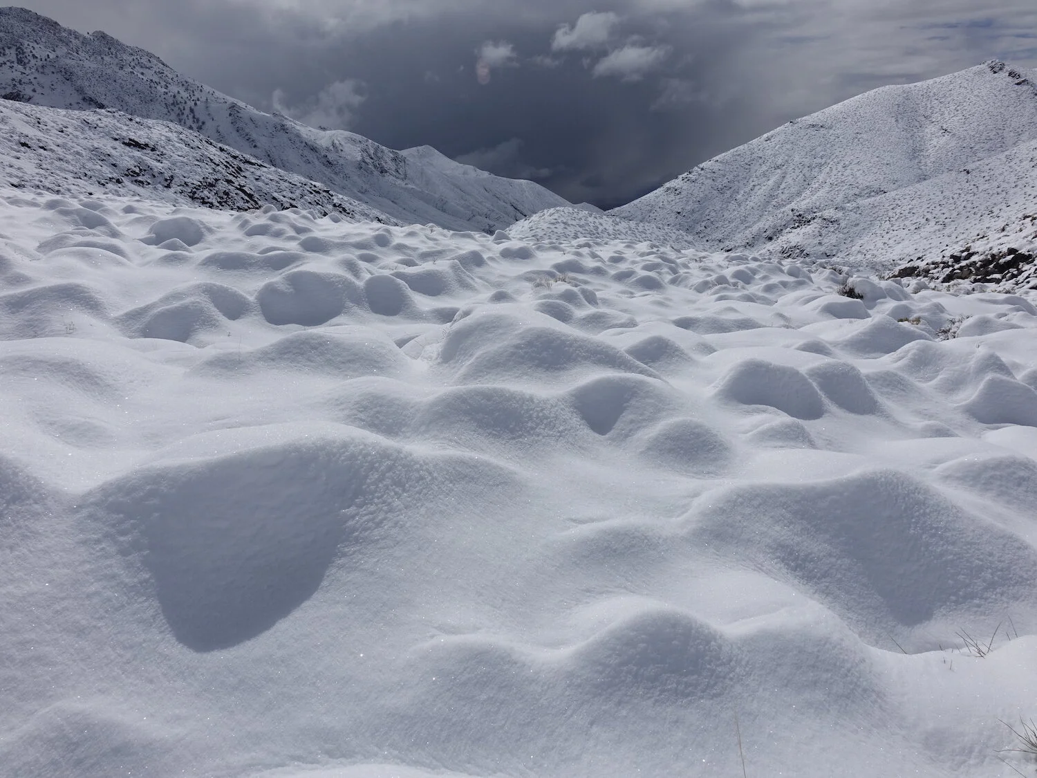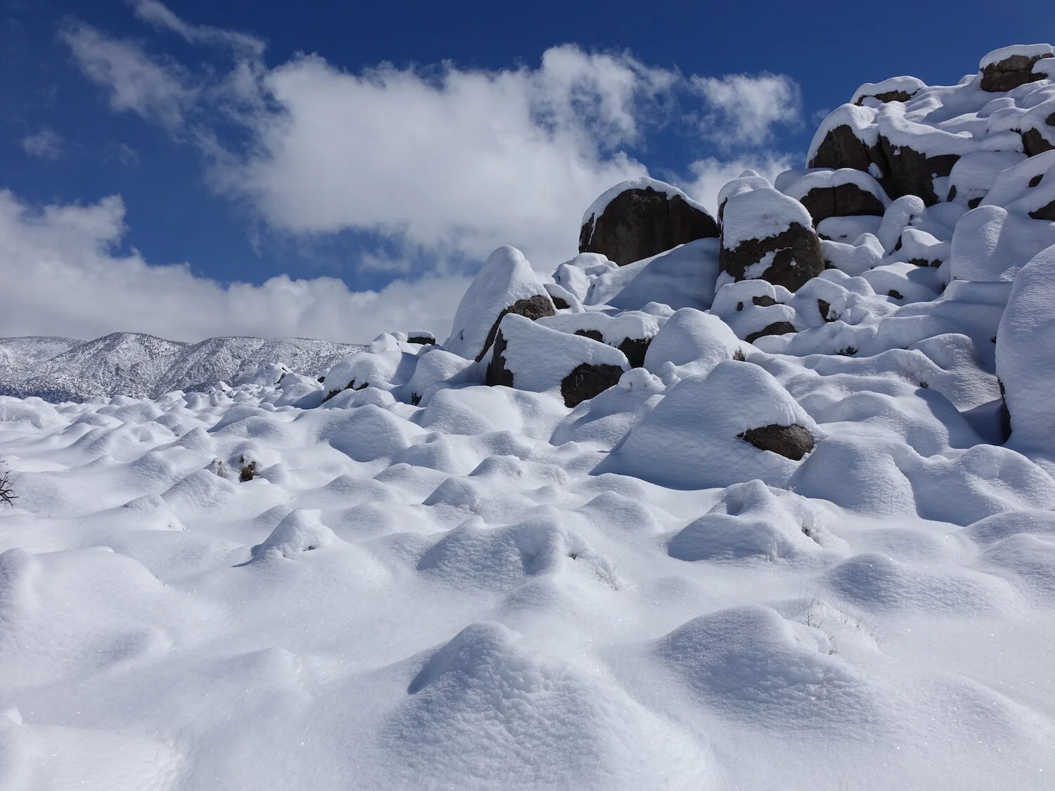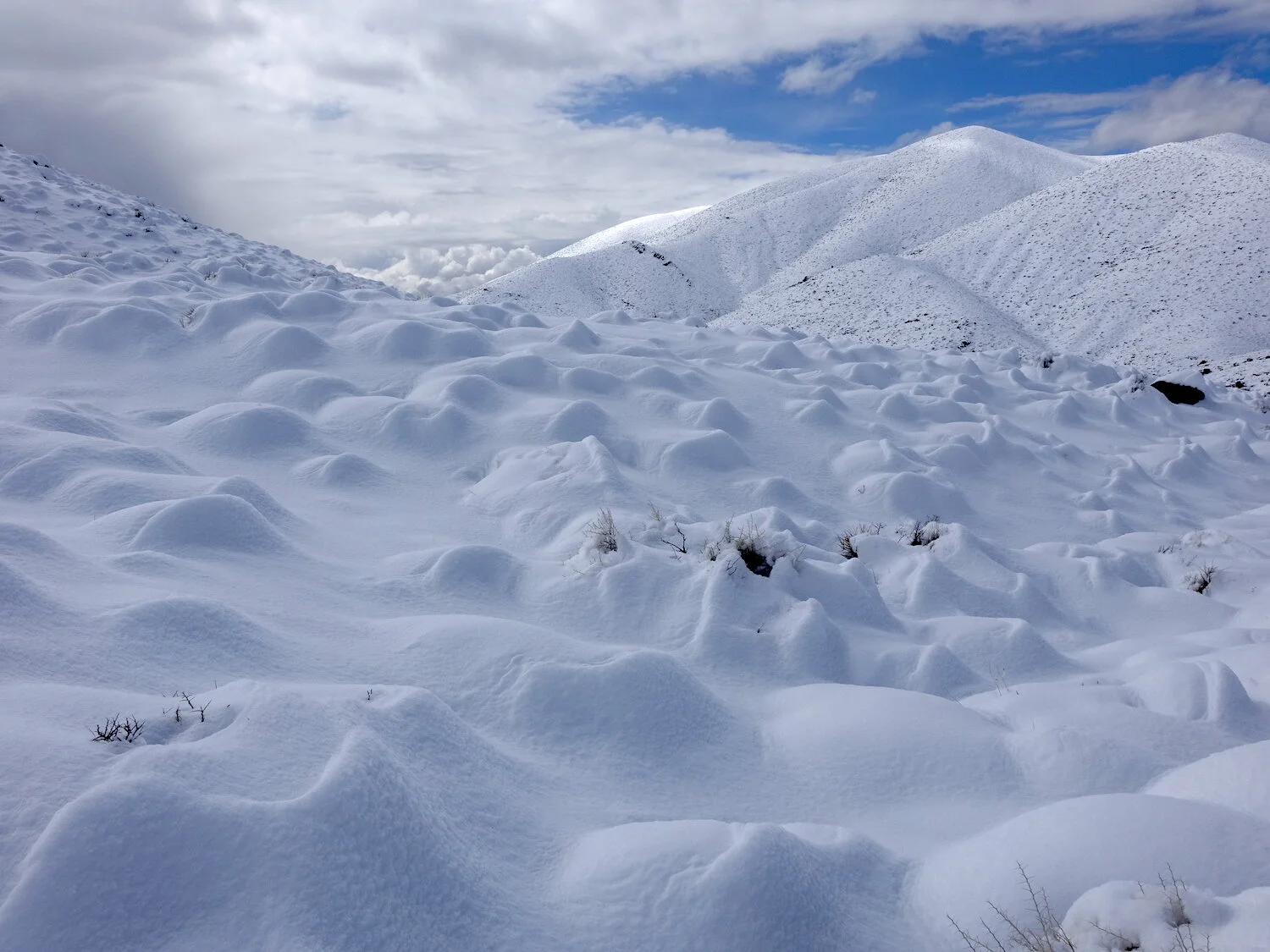 snow level creates / highlights devils dominoes / Inyo eye in sky
