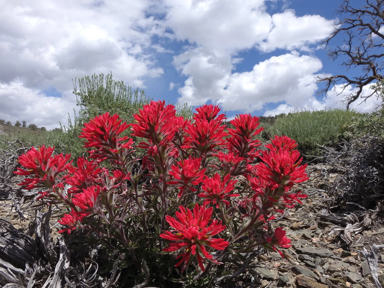 Indian painbrush / a burst of vibrant color / high desert buildup