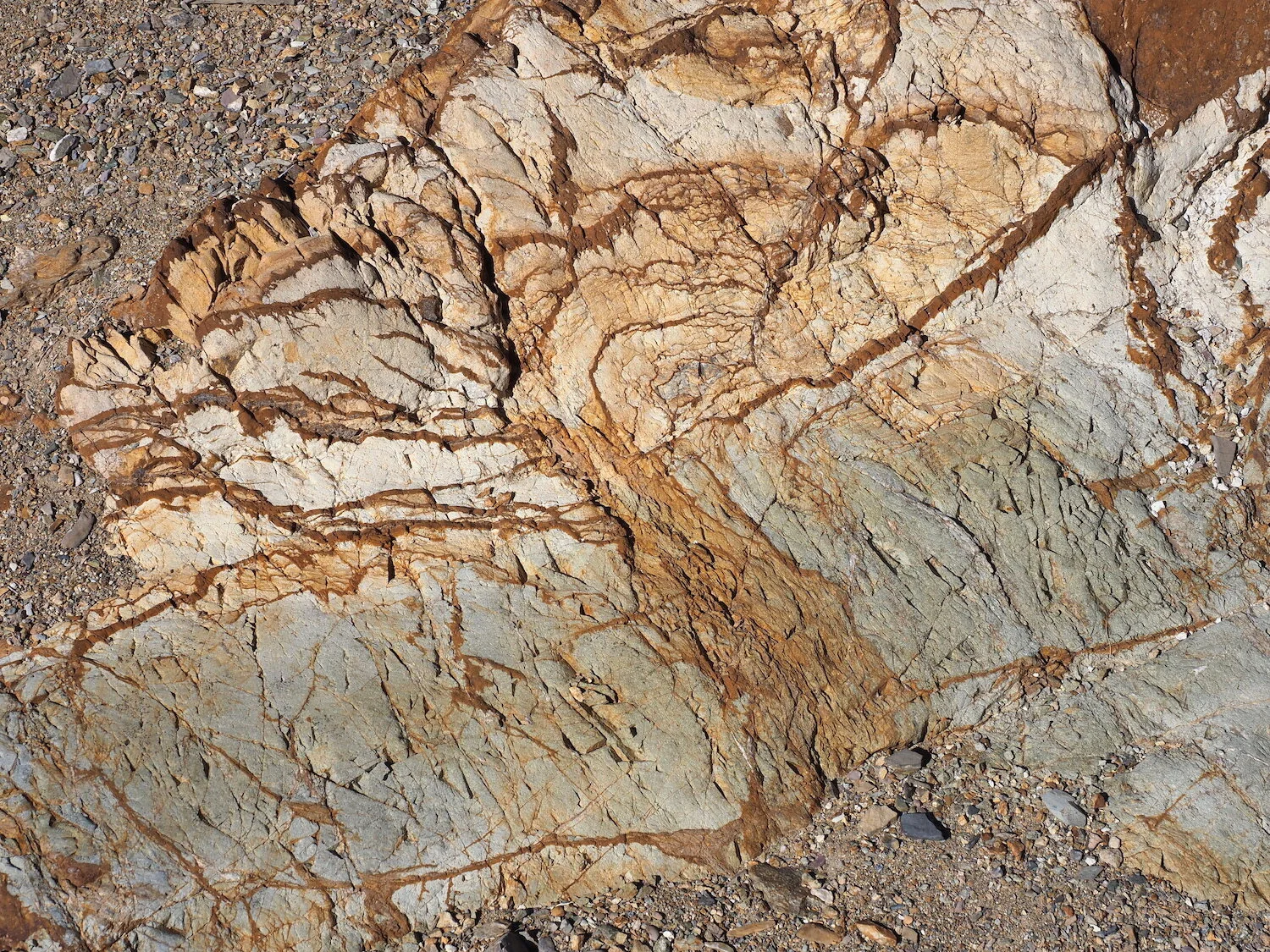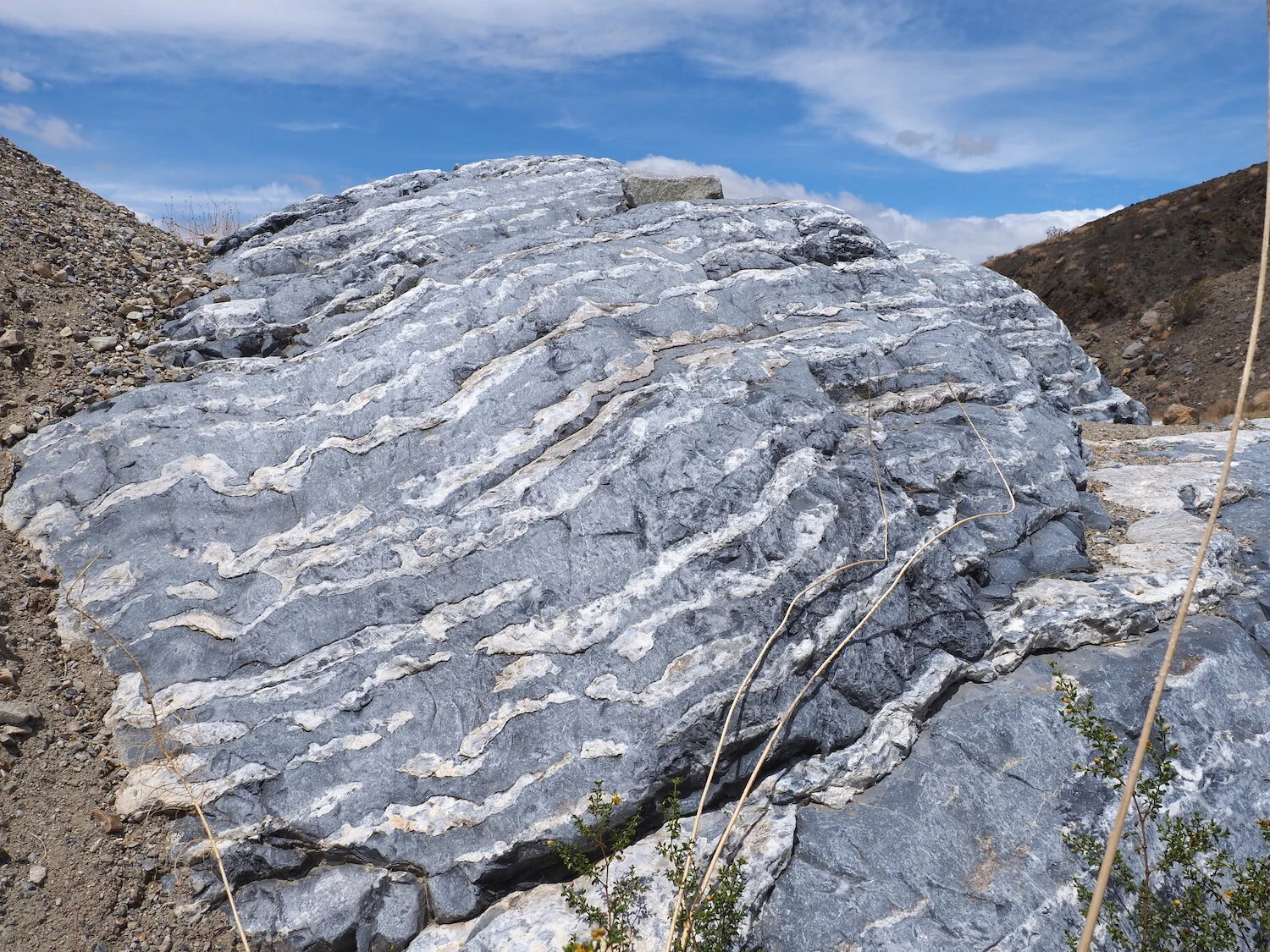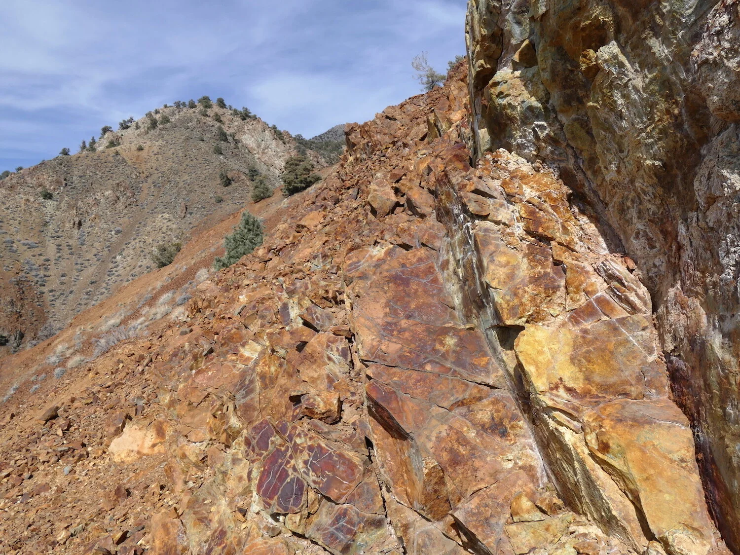 mineralized rock / rough route to old mine cabin / Superbowl Sunday