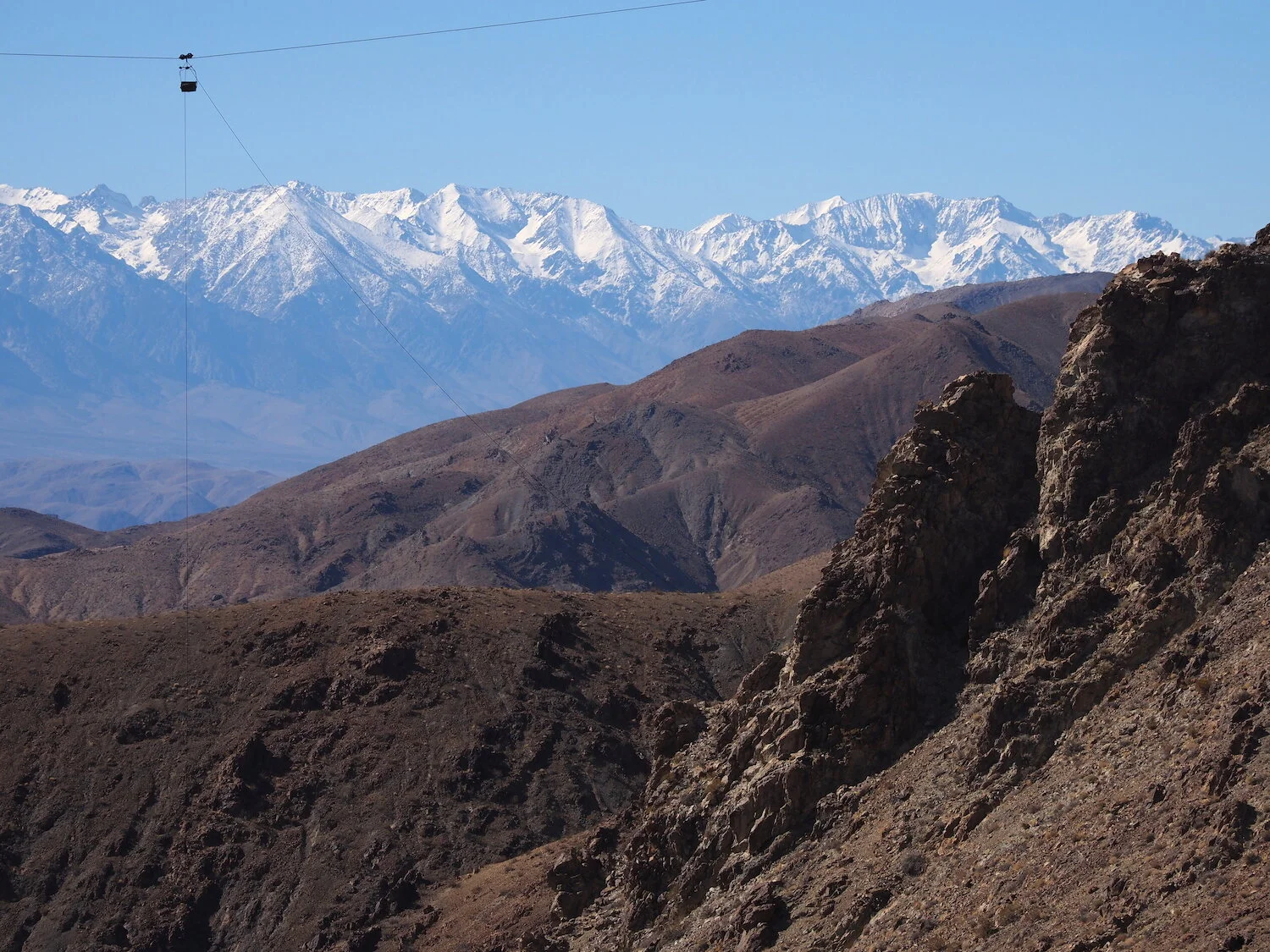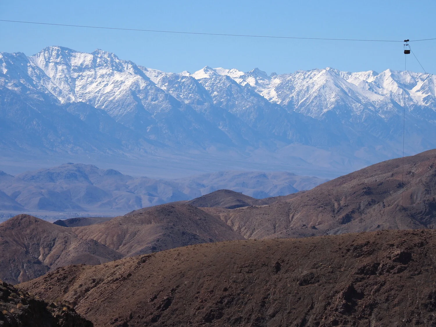 Inyo Mountains view / the snow level can be seen / in the Sierra