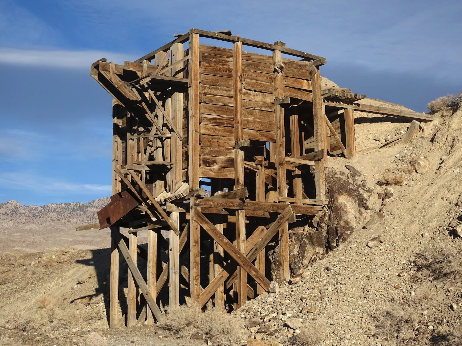 wooden tram station / Inyo Mountainside legend / to deliver salt