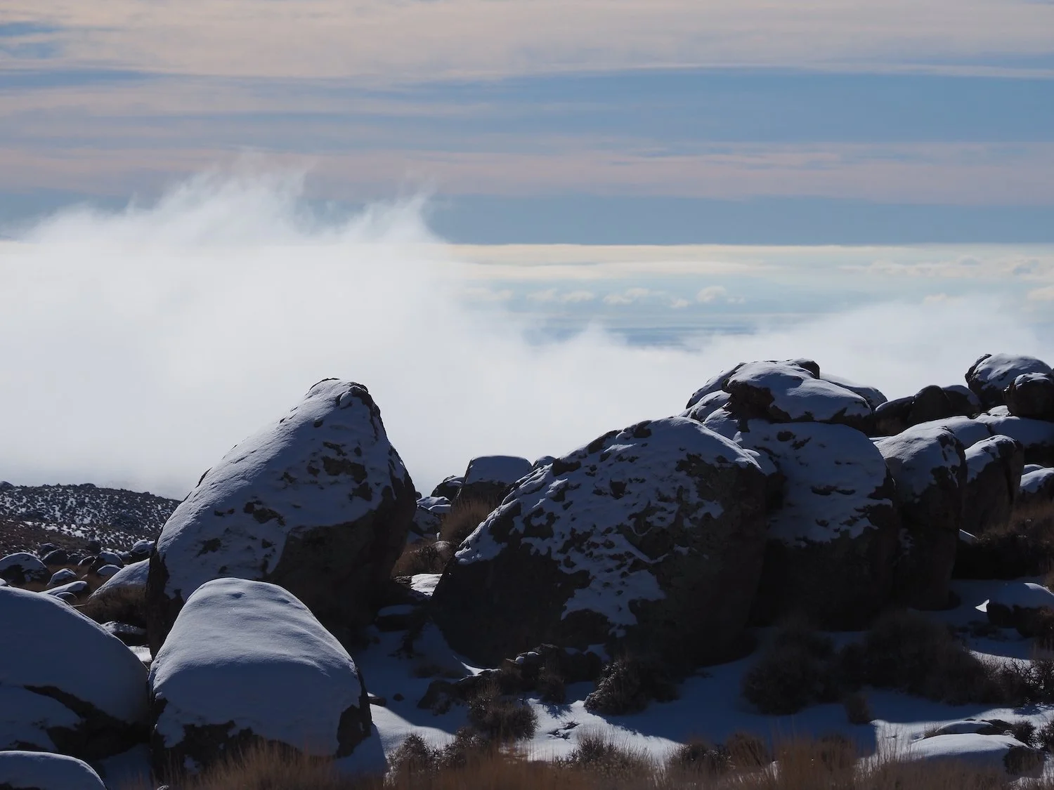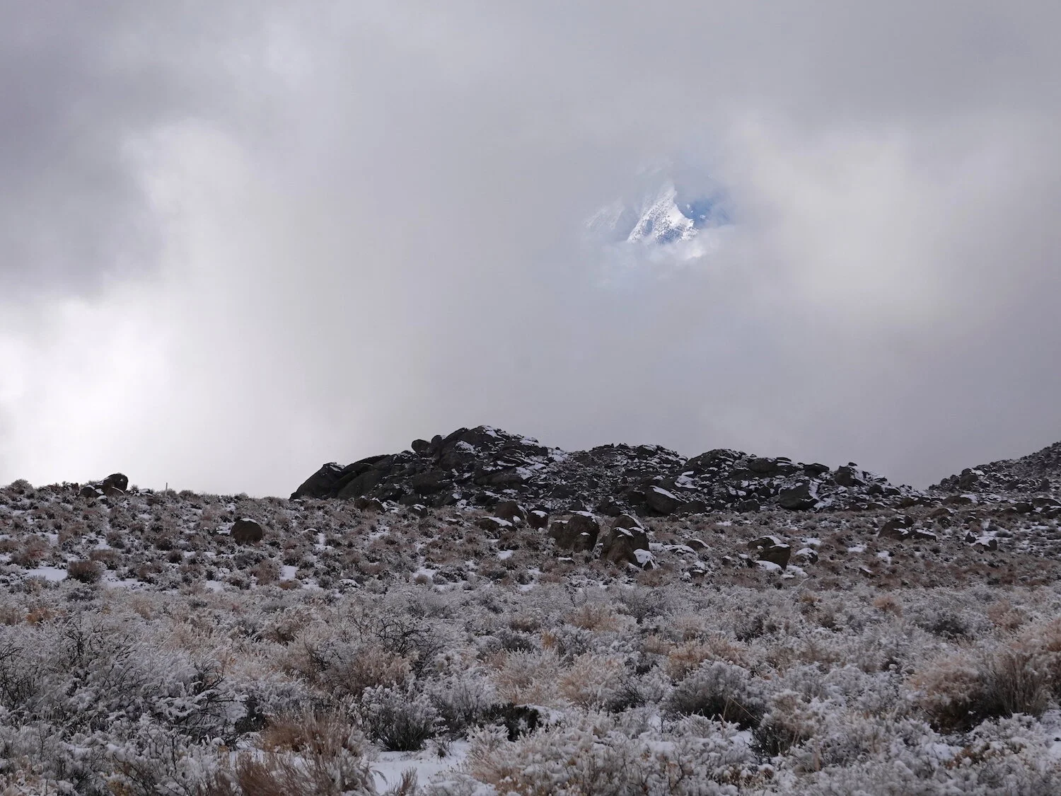 Santa Rita Flat / in snow and above the fog / Owens Valley below