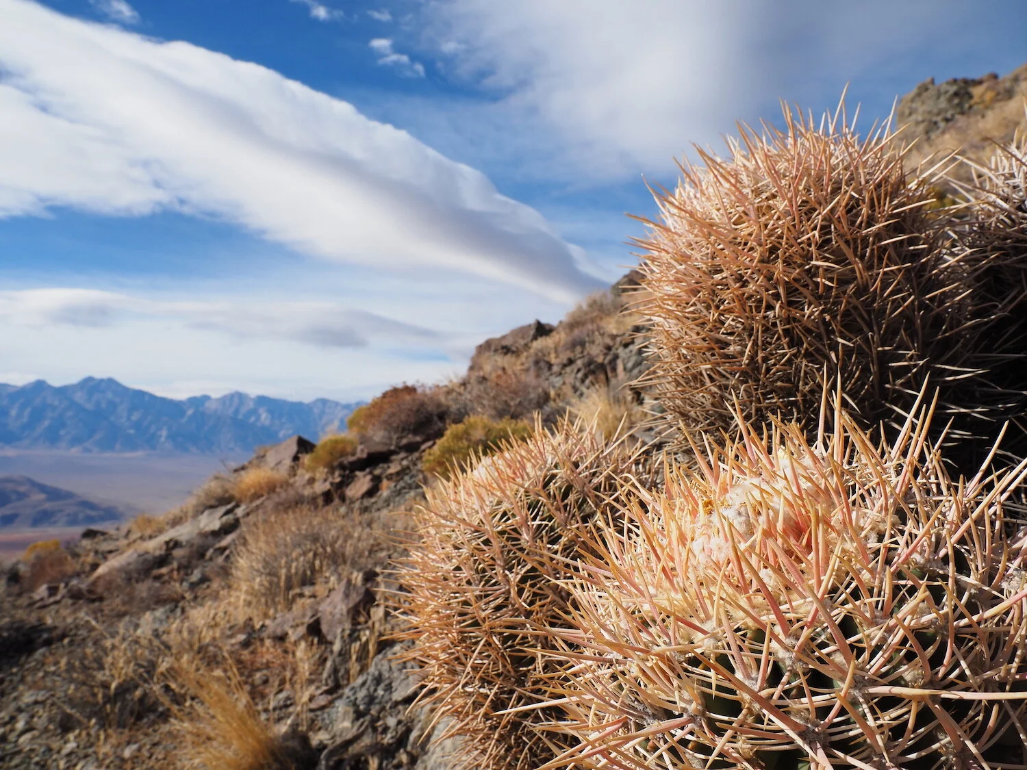 Mojave Mound cactus Sierra view