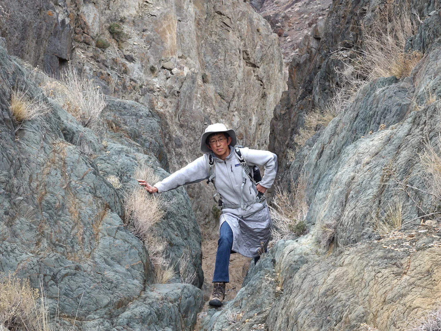 canyon ambler pose / loop hike near Cerro Gordo / what's around the bend?