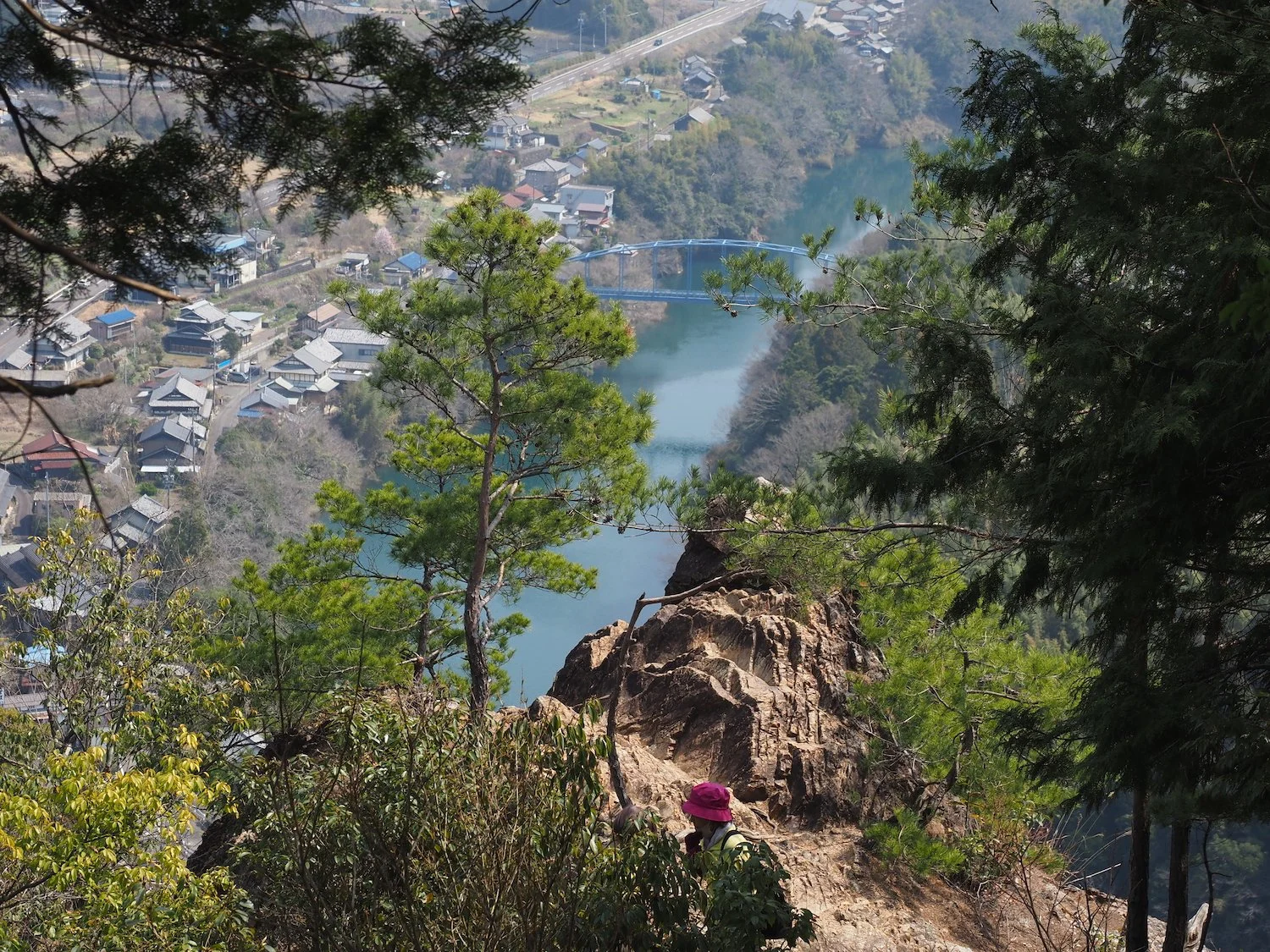 Looking down at the tram terminal from a loop hike to Hokan-dake