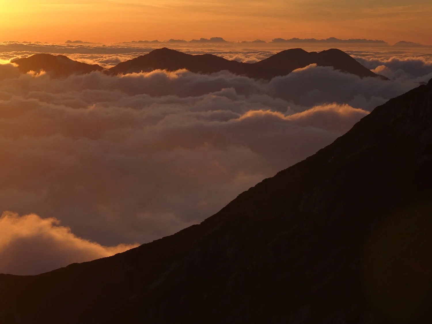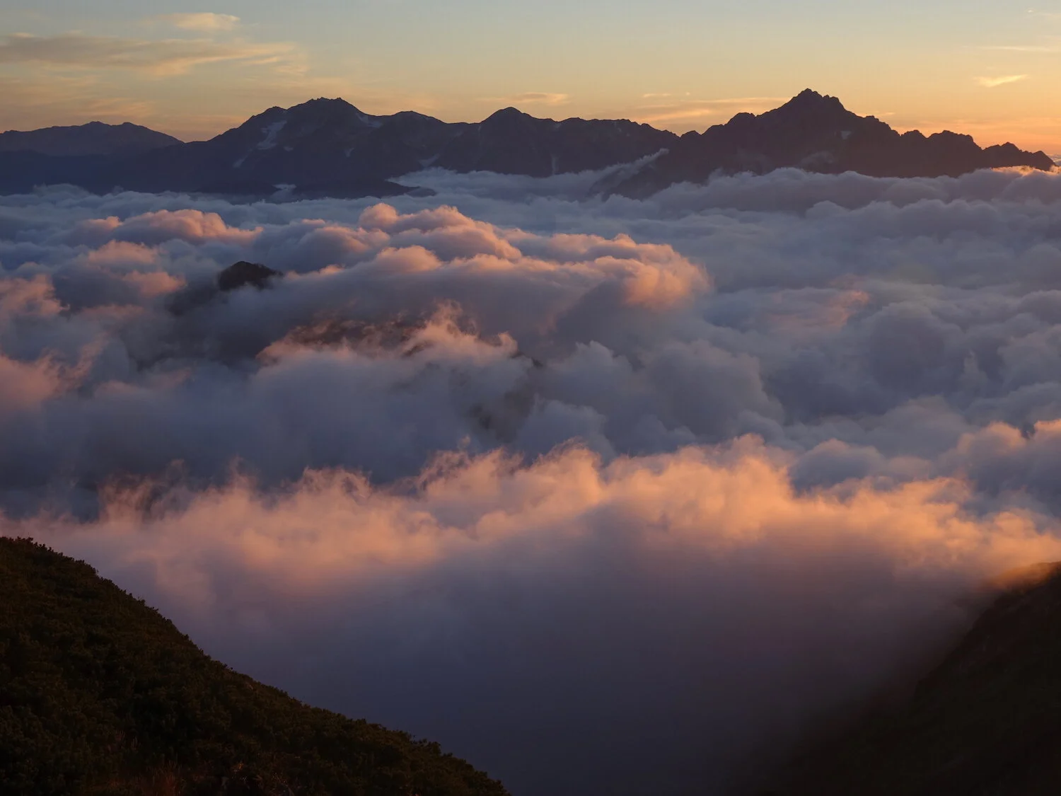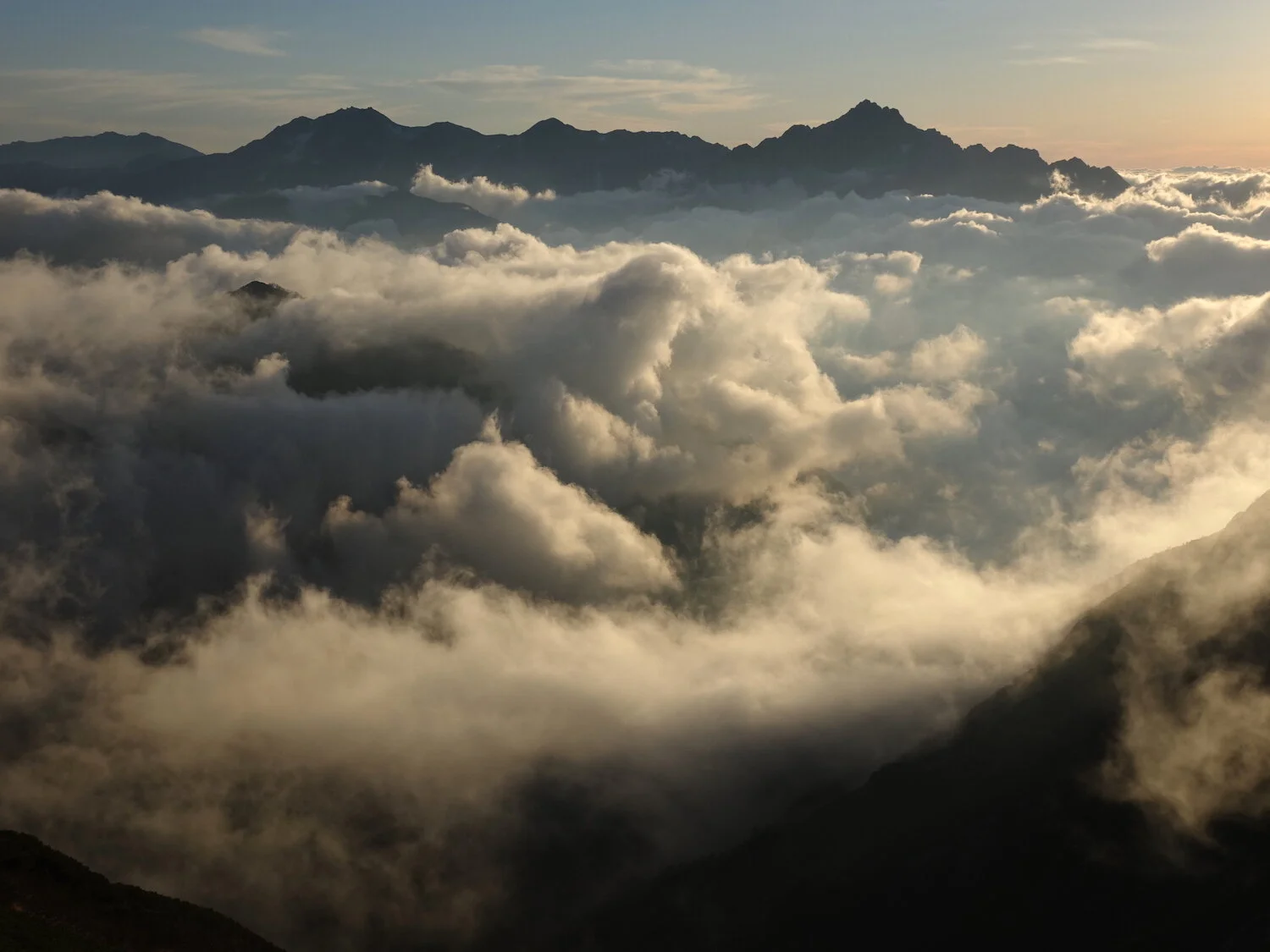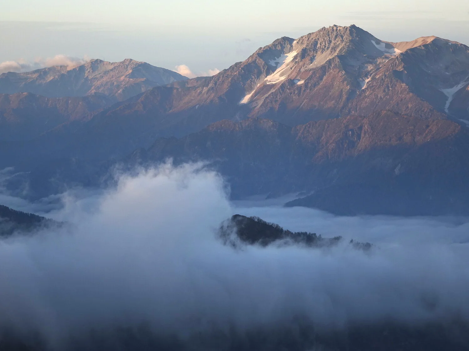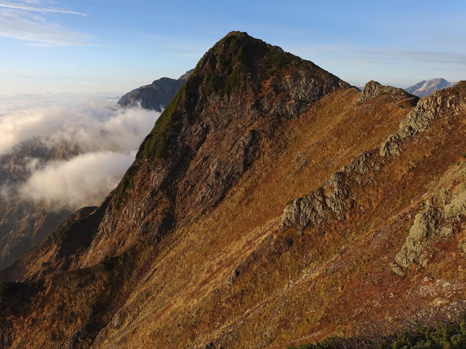 Looking over to Tsurugi-dake from the Karamatsu-dake chojo-sanso (summit hut)