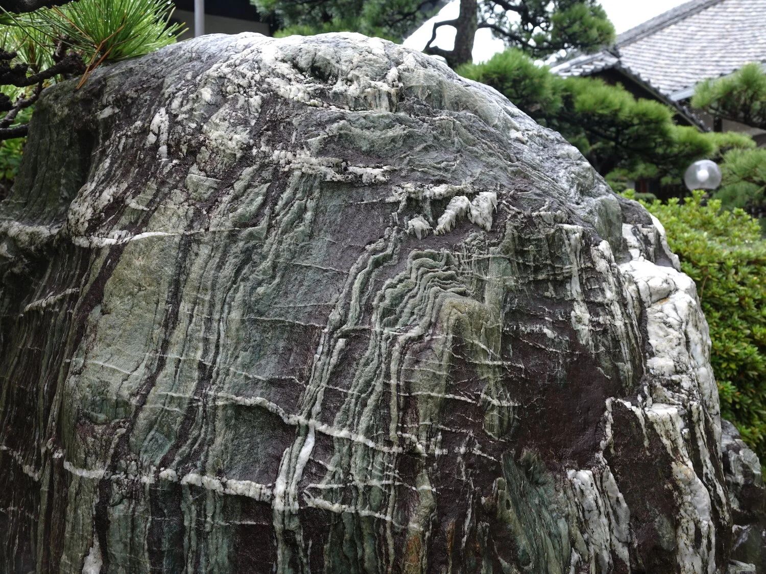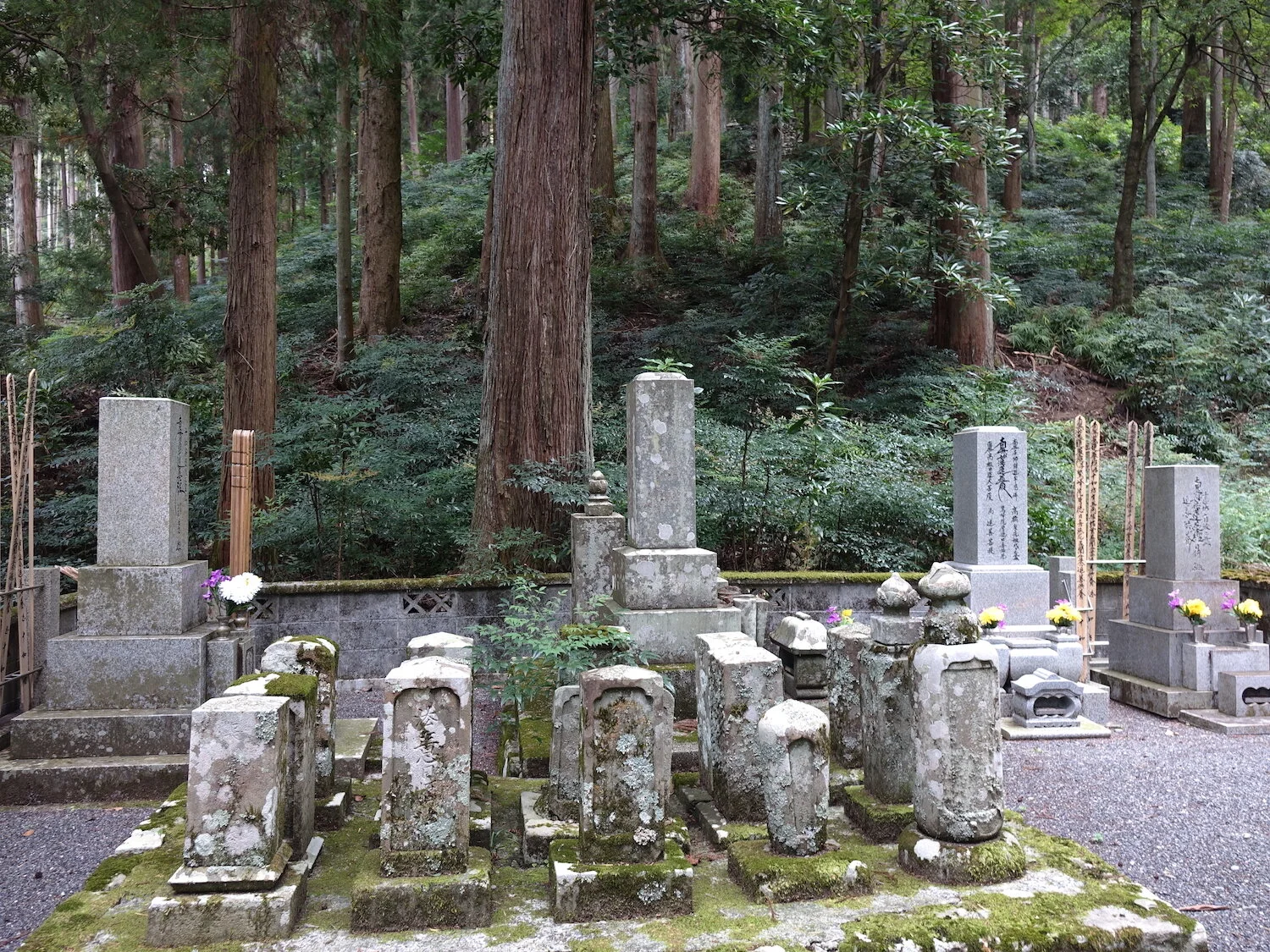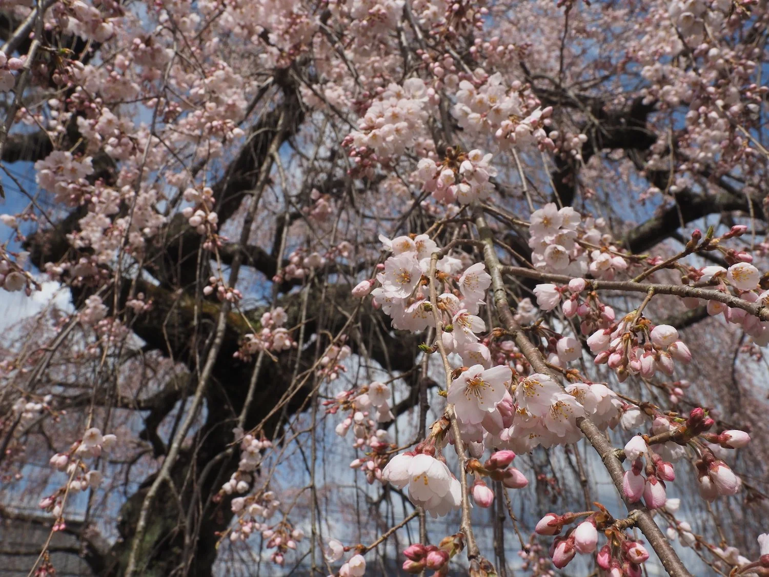Stone statue in a neighborhood shrine below a giant cherry tree in Nakatsugawa