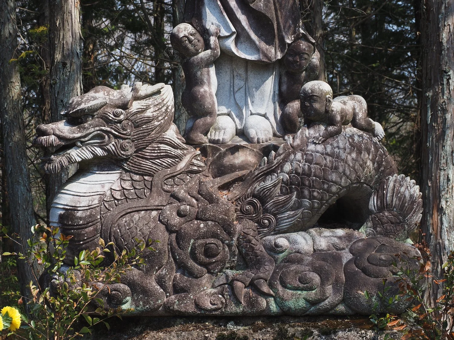 Afternoon light shining / Nakatsugawa statue / sacred local shrine
