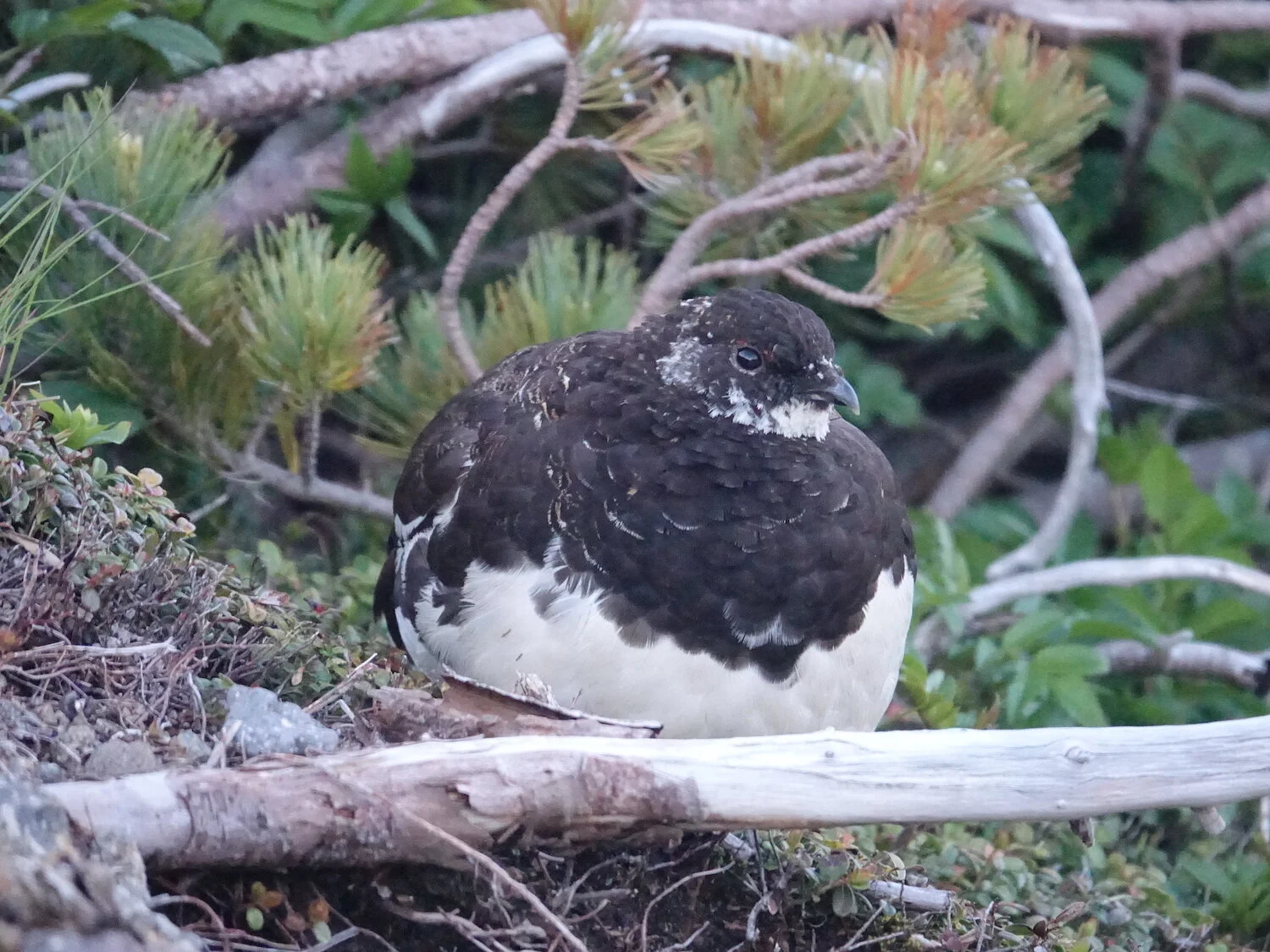 A Raicho or Ptarmigan settles down for the night in the scrub timber