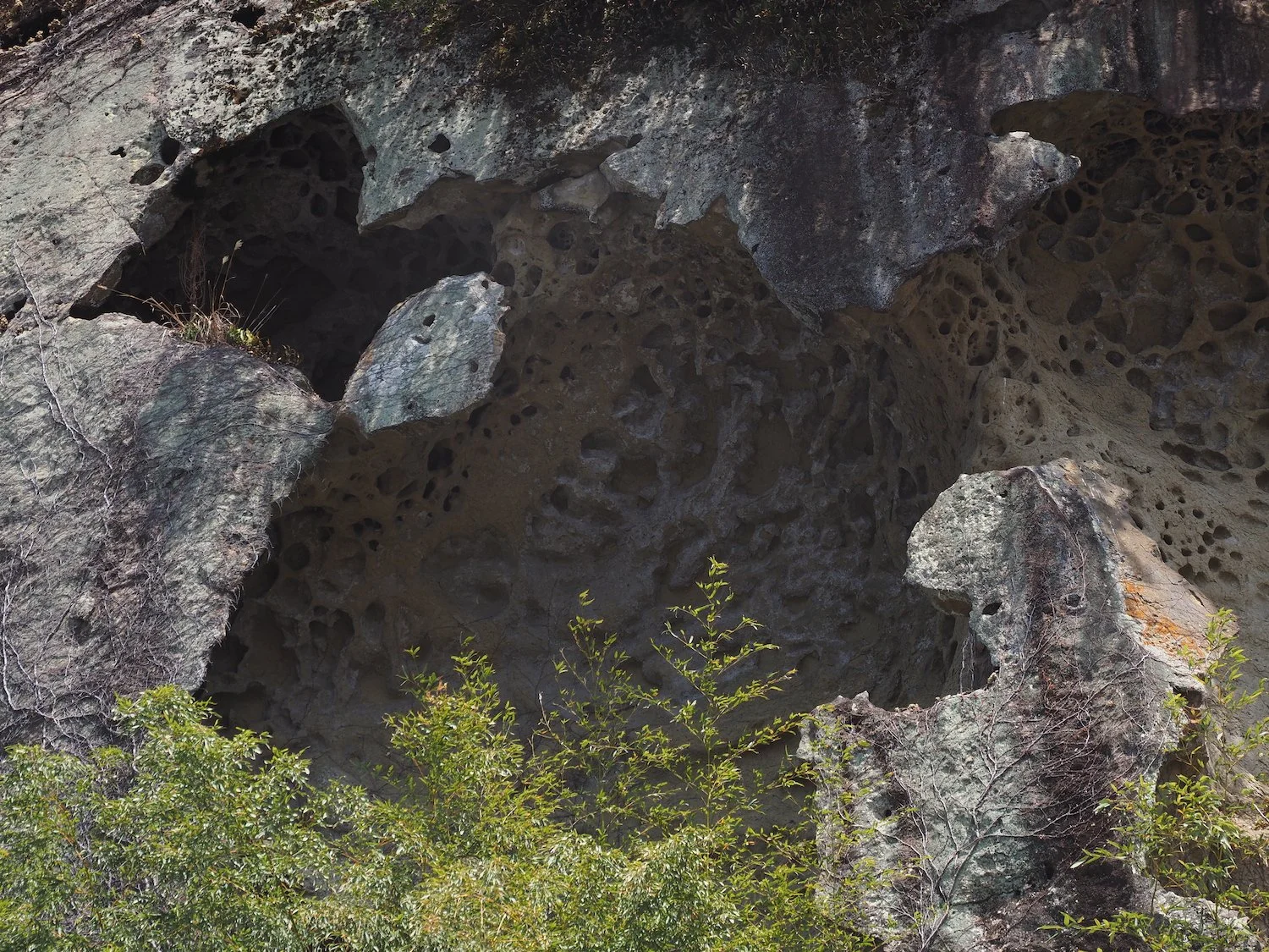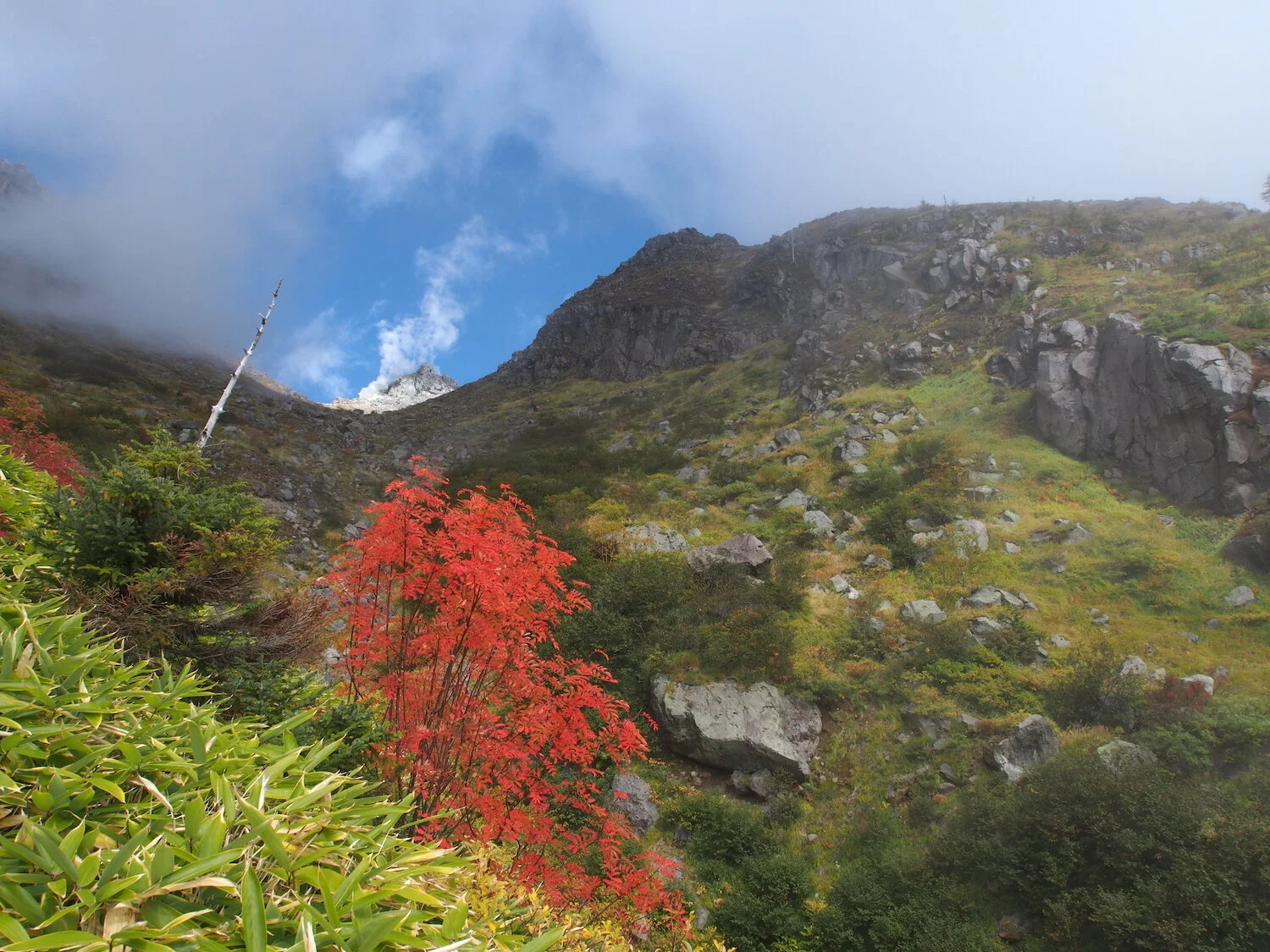 Yake Dake hike / view up to large fumarole / on Burning Mountain