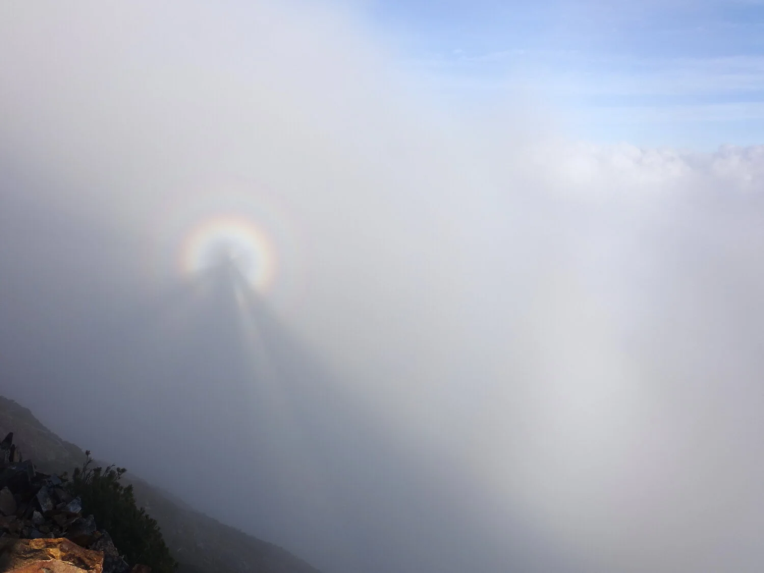 The Brocken Spectre is a type of glory that occurs when a halo-like ring circles the upper part of your shadow