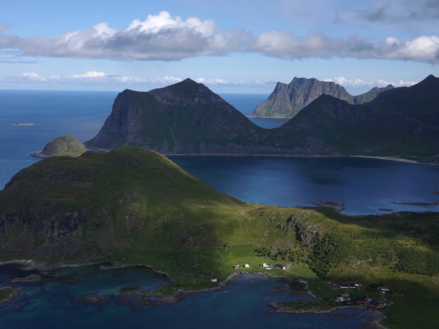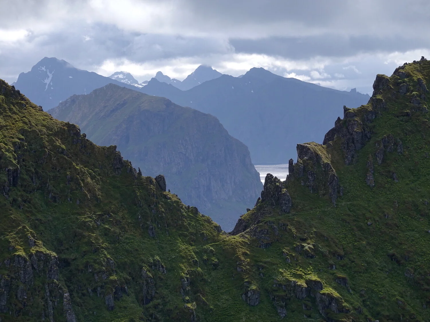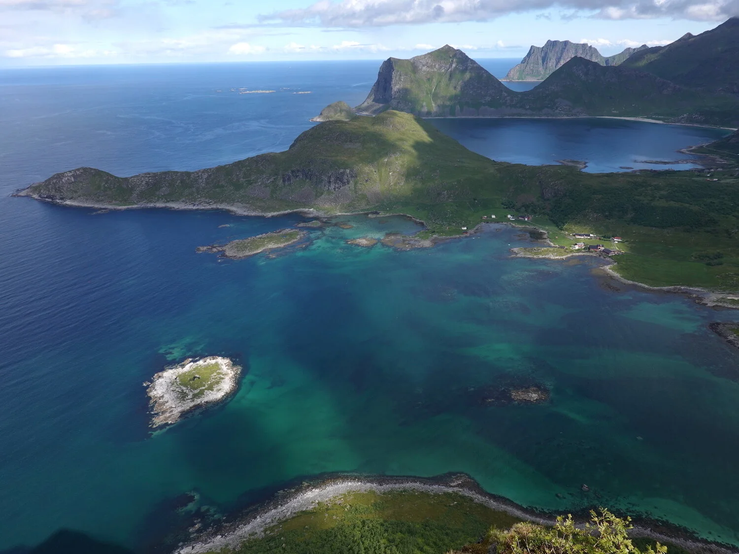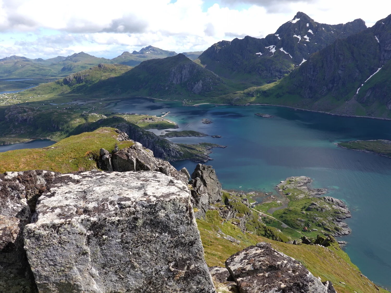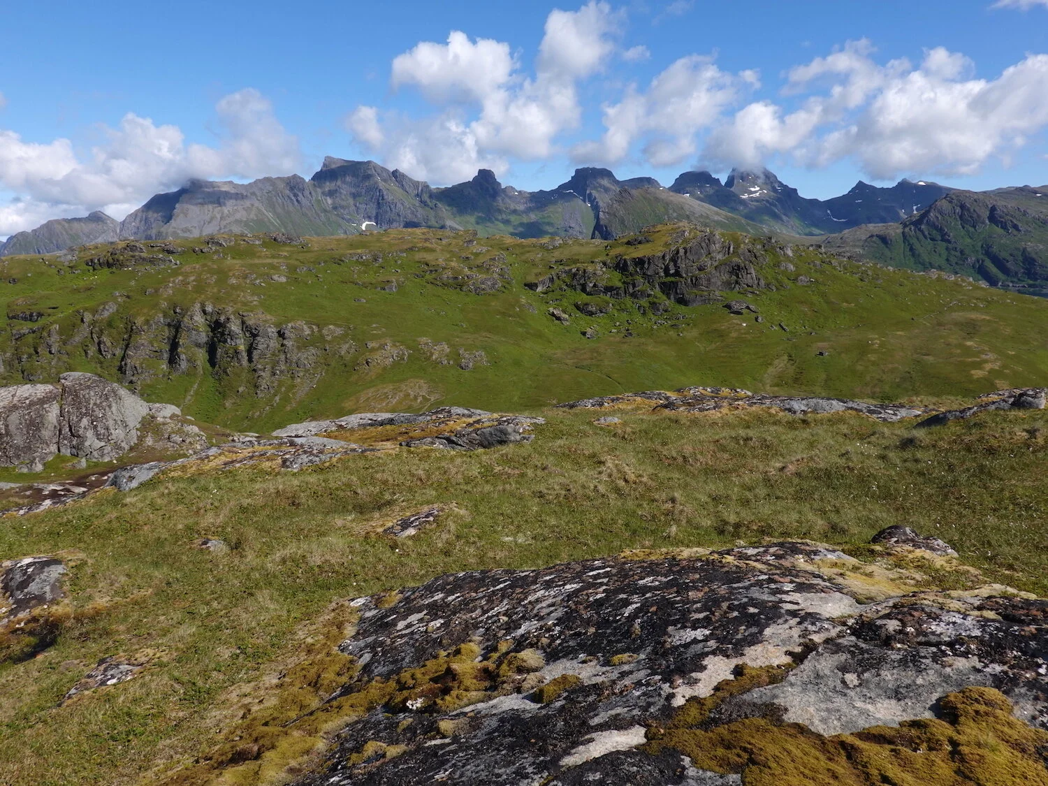 The rugged island of Flakstad viewed from near the summit of Ryten