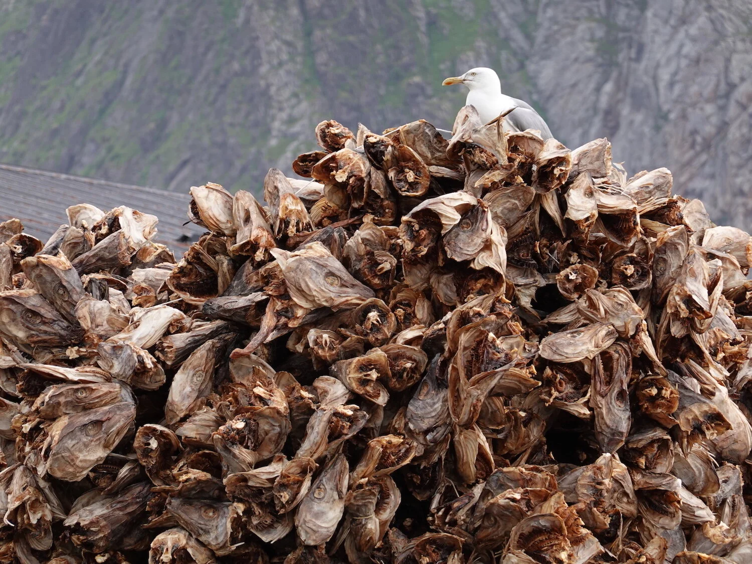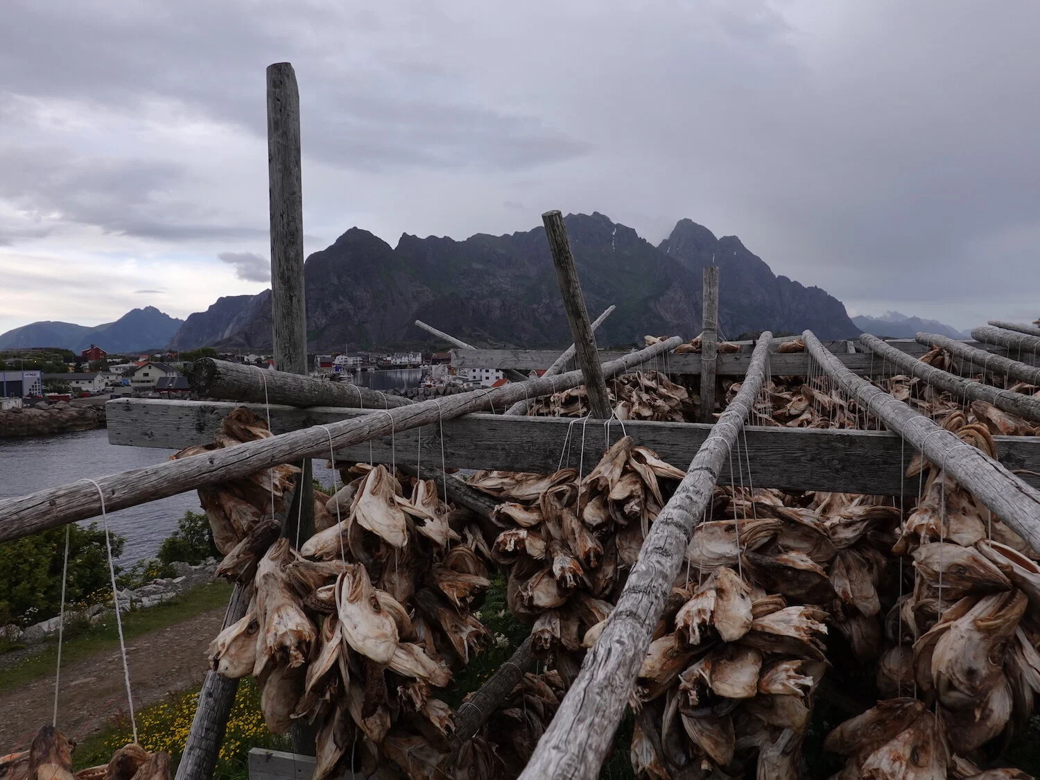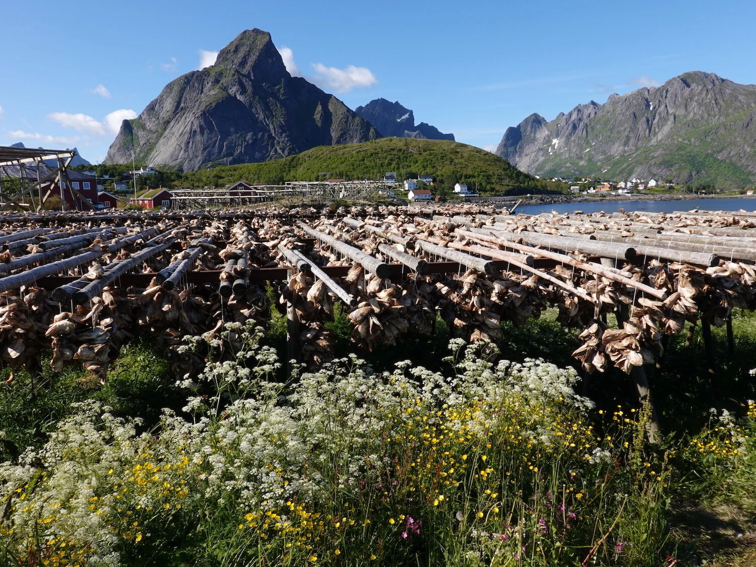 Cod drying racks while hiking about on one of the small islands in Reinefjord