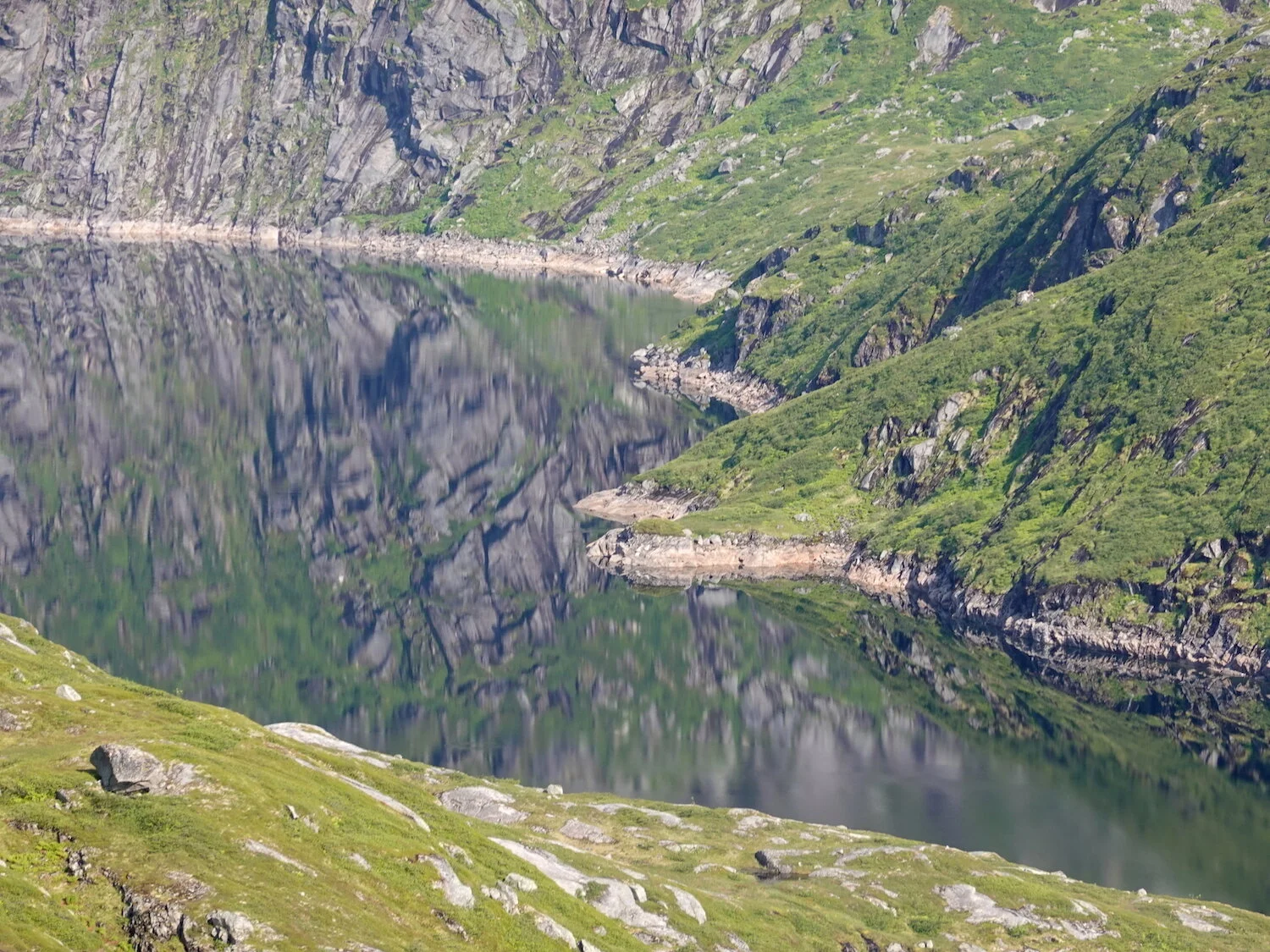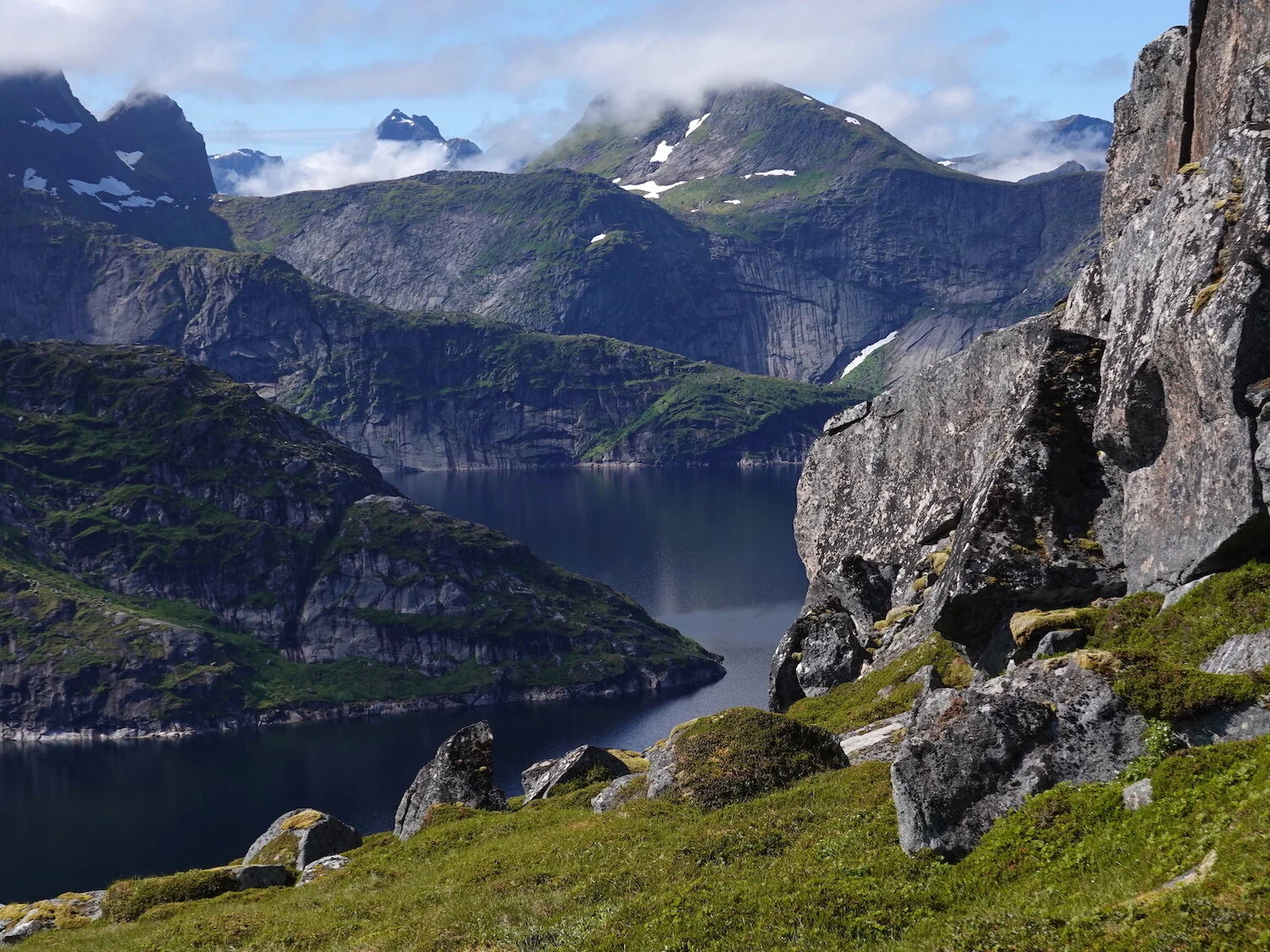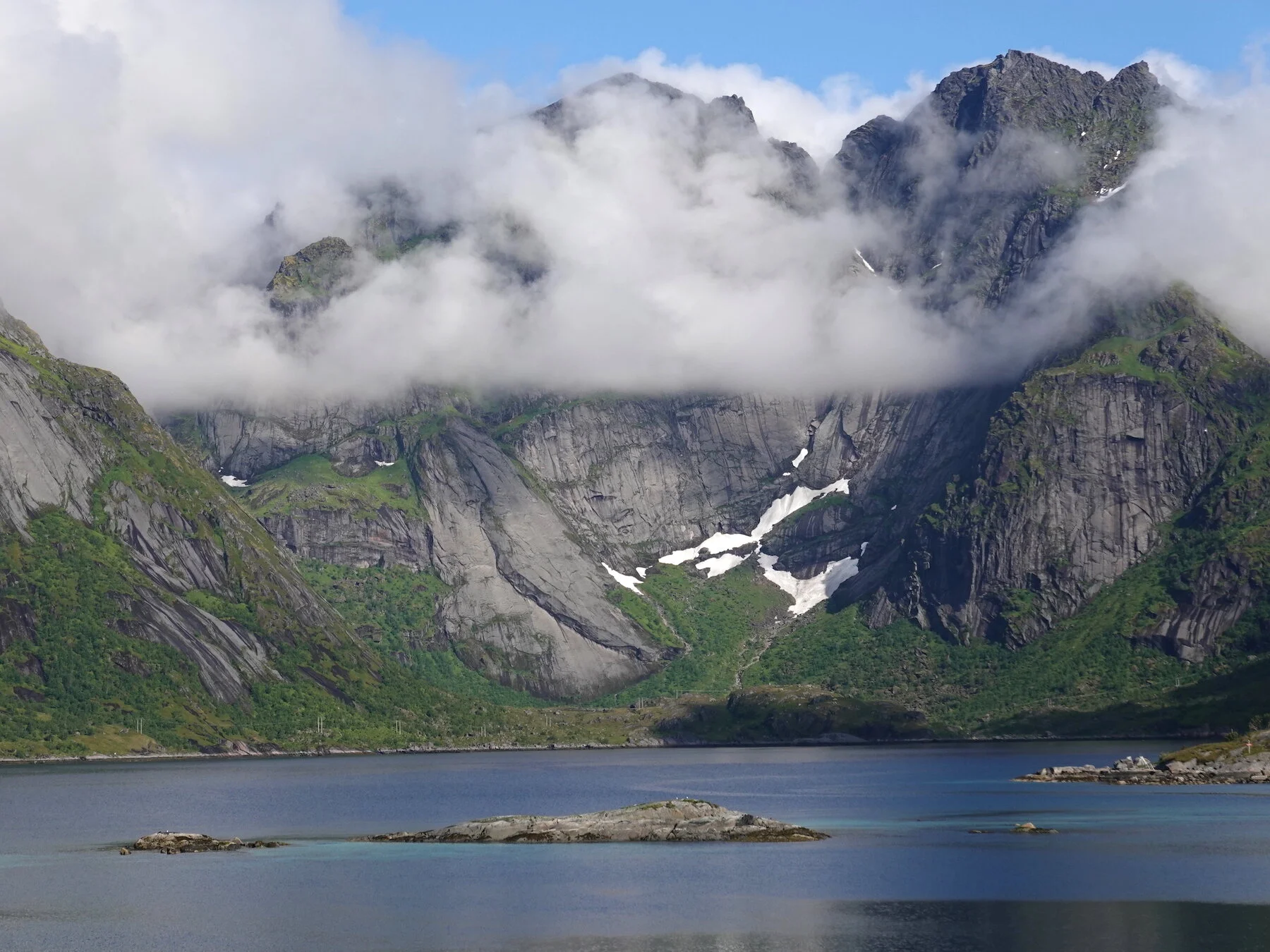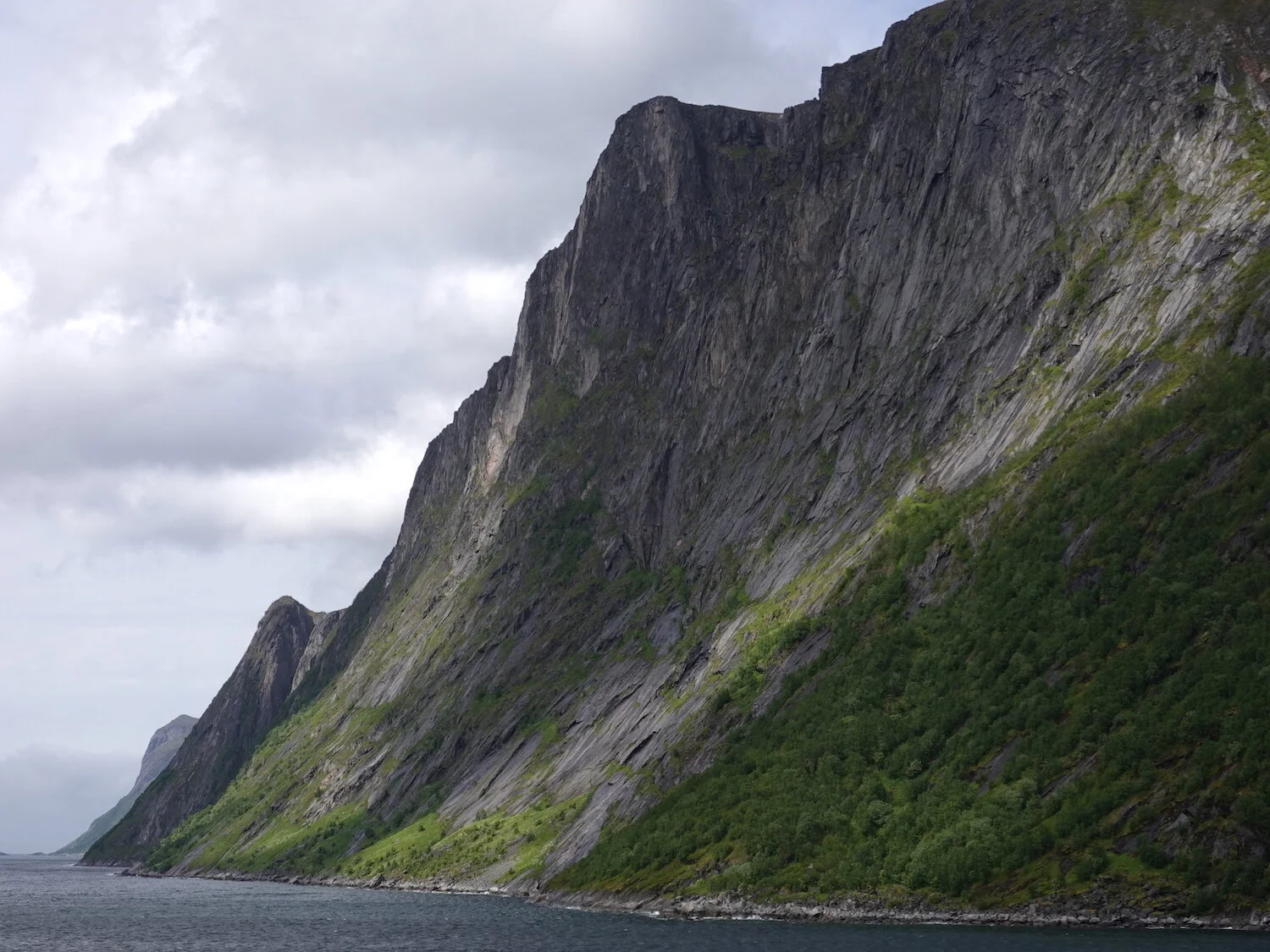 The fjells or the peaks rise straight up out of the fjords as is the case here at Mefjord