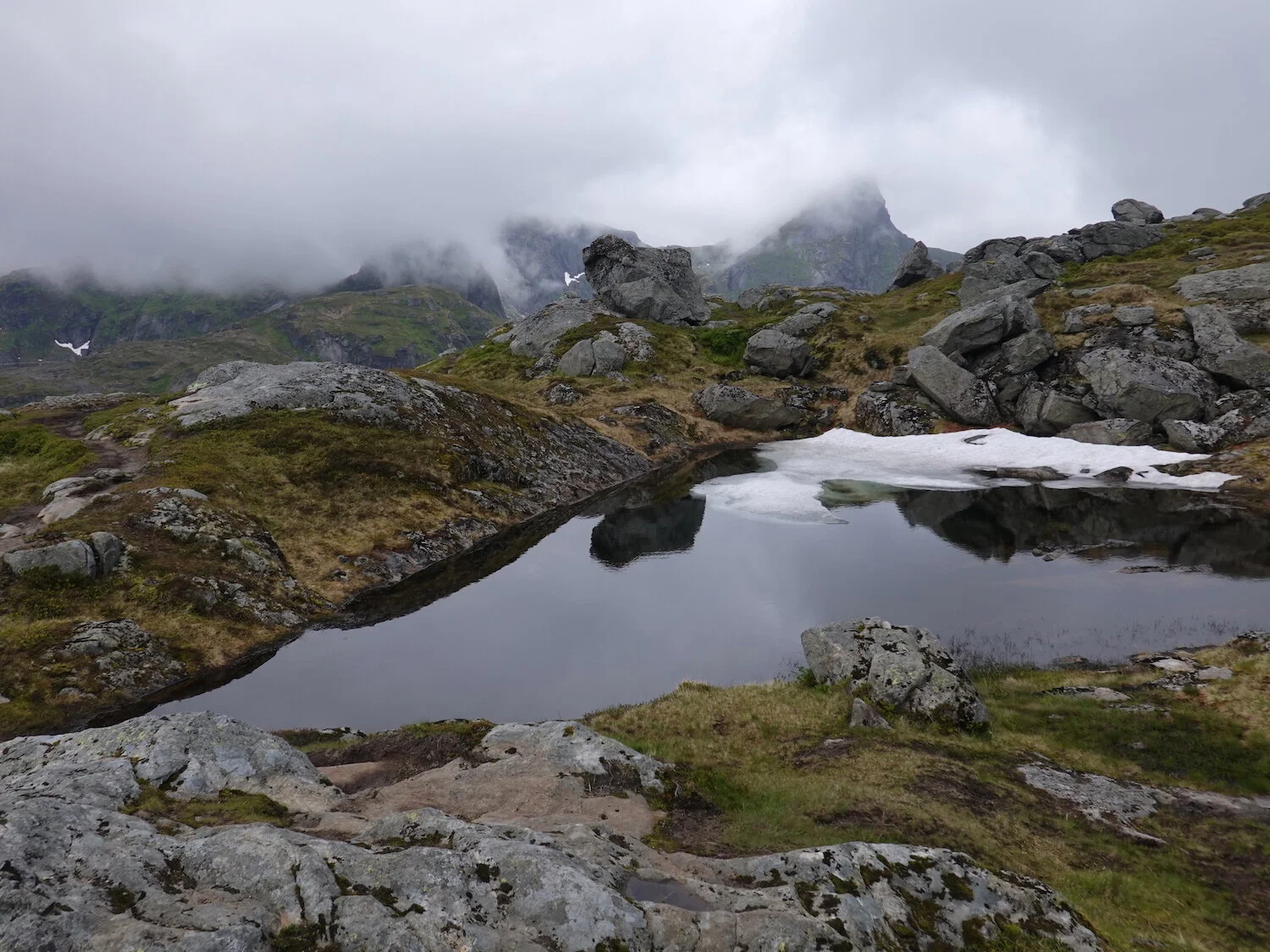 A view from Husfjellet to the Oxhornan on one of those days where it looked like it might clear but it didn't on our hike