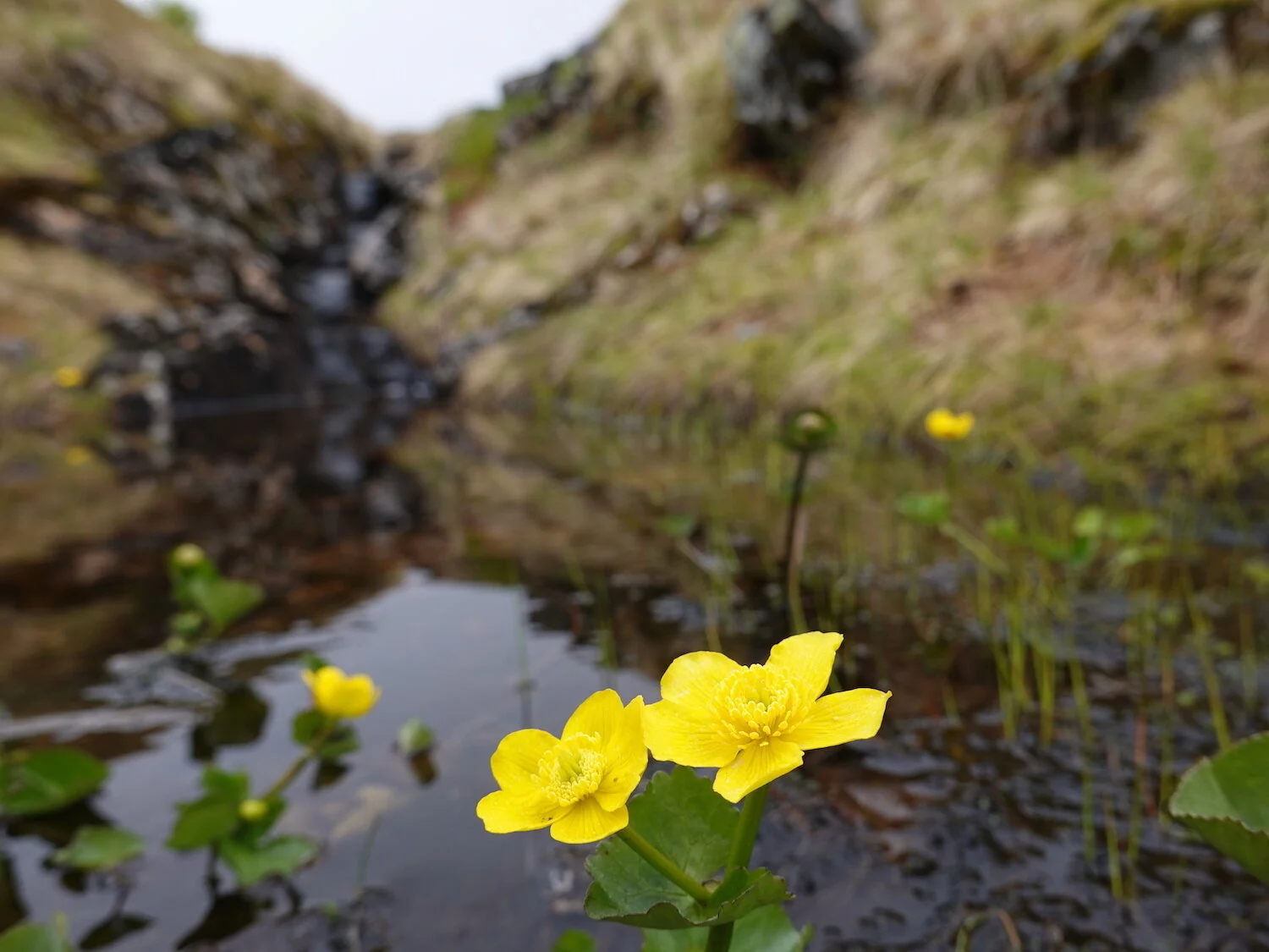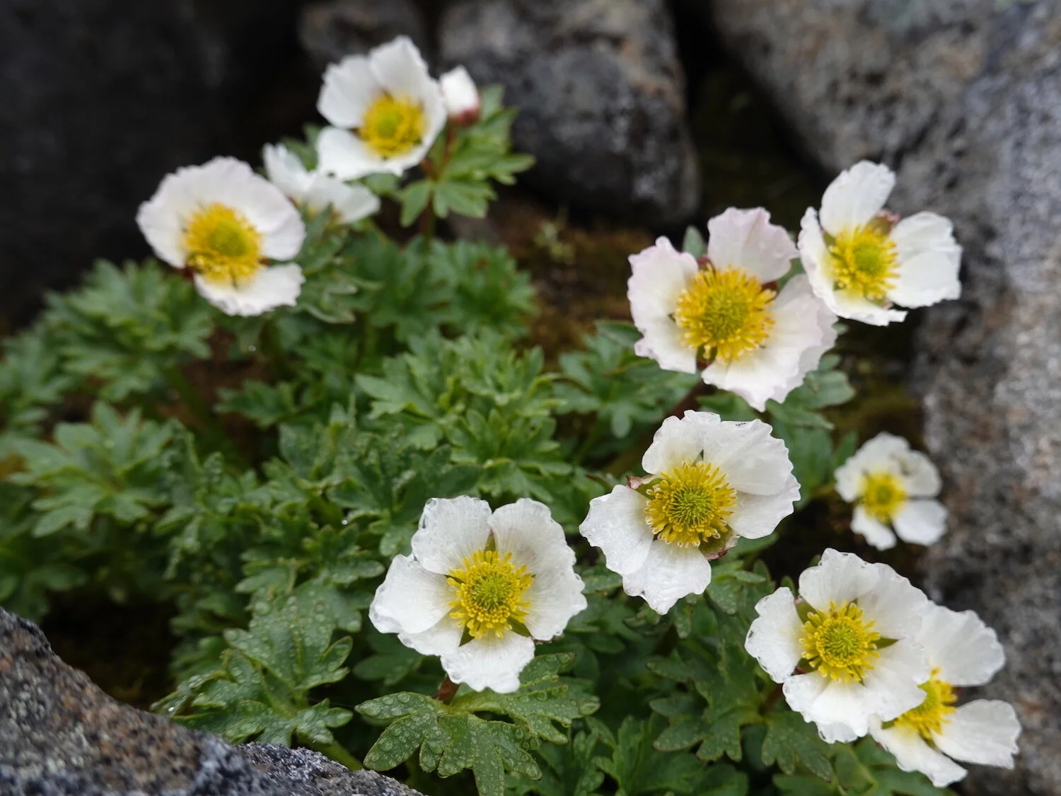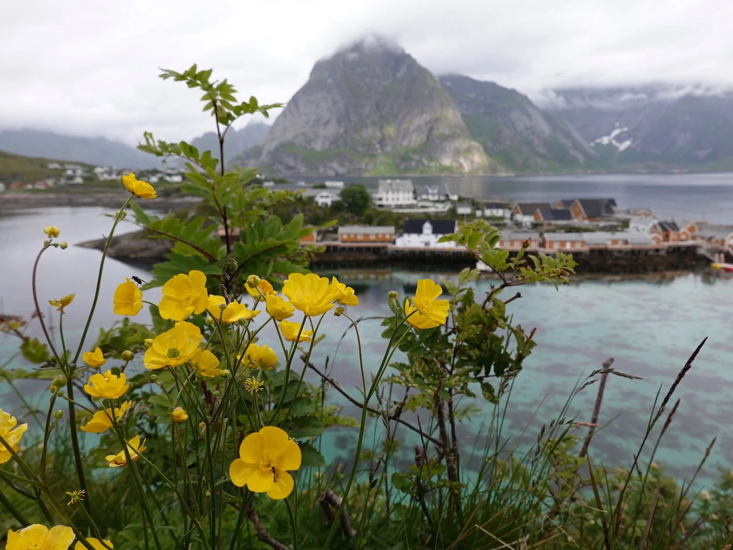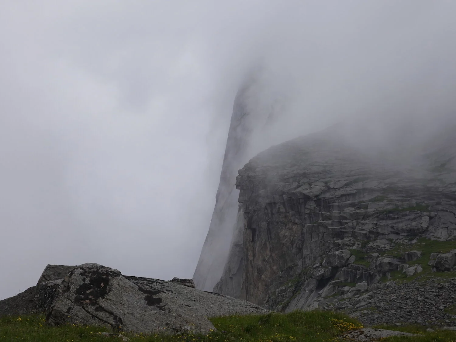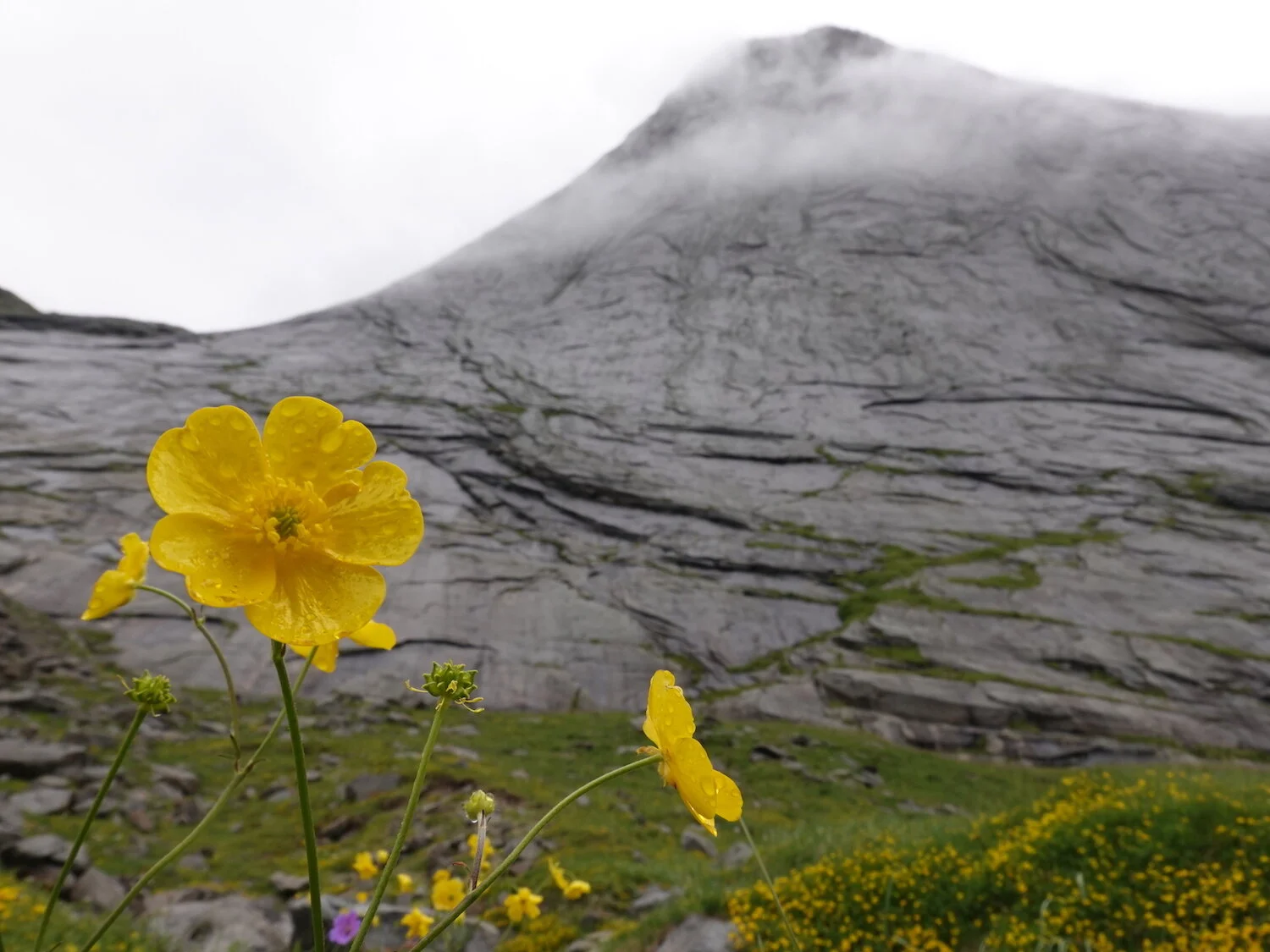 Buttercup-like flowers just below the top of Munken. There is a great view down to Reinefjord from here, but we couldn't see more than a 100 meters in the fog.