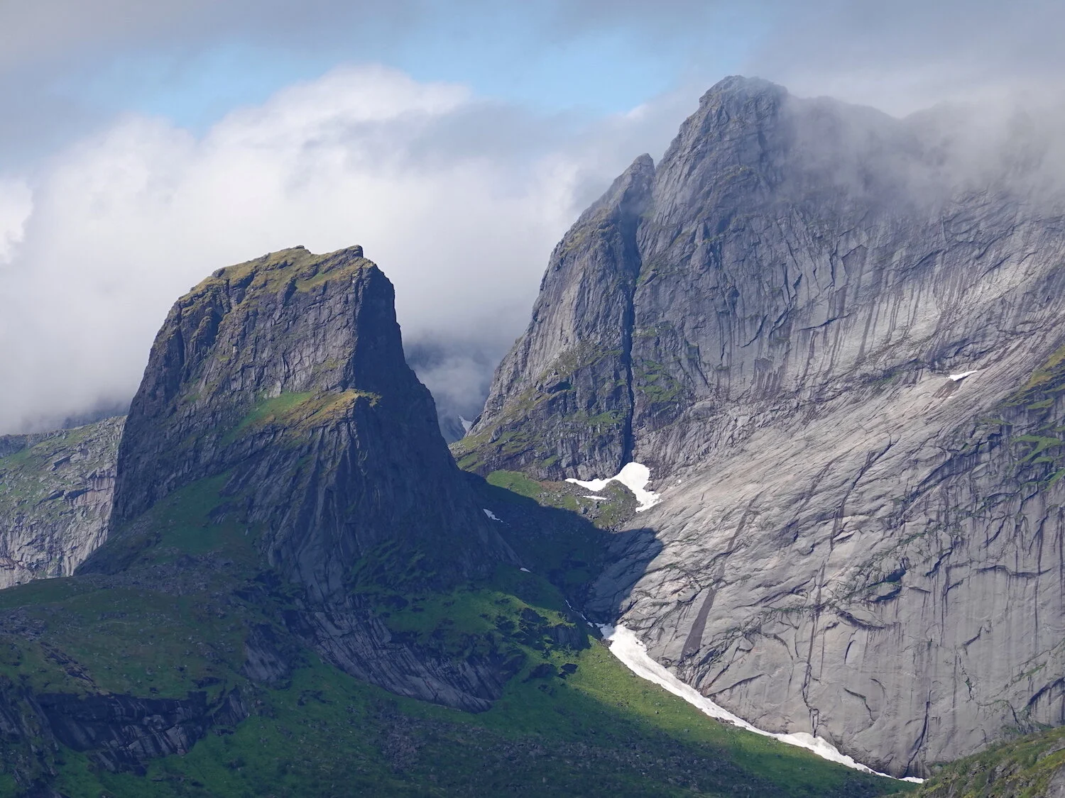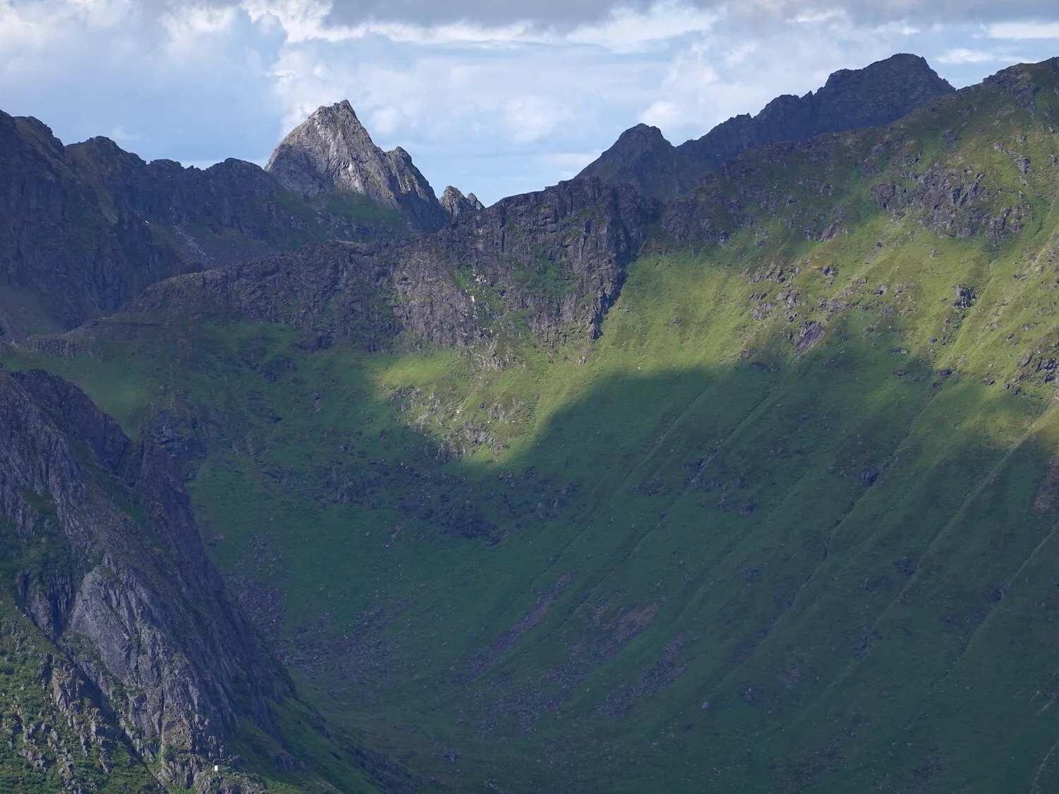 A view across the fjord to what I think may be Himmeltinden, the highest peak on Vestvagoy island