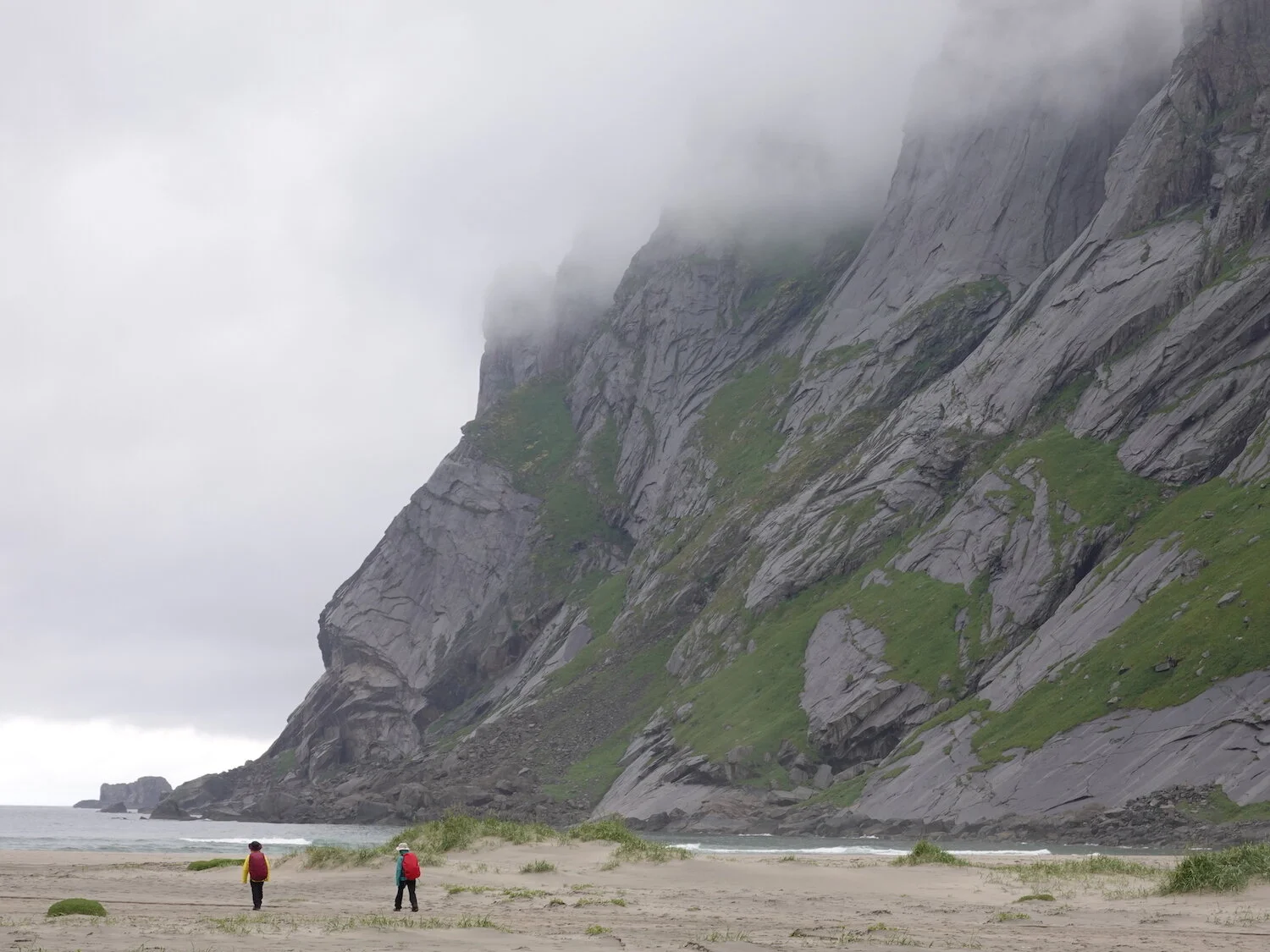 The view from Ryten down to Kvalvika beach has been popularized by a ton of photos on Instagram of a an overhanging cliff that makes you look like you are flying above the beach. My hiking companions refused to wait in line to stand at the Instagram perch.