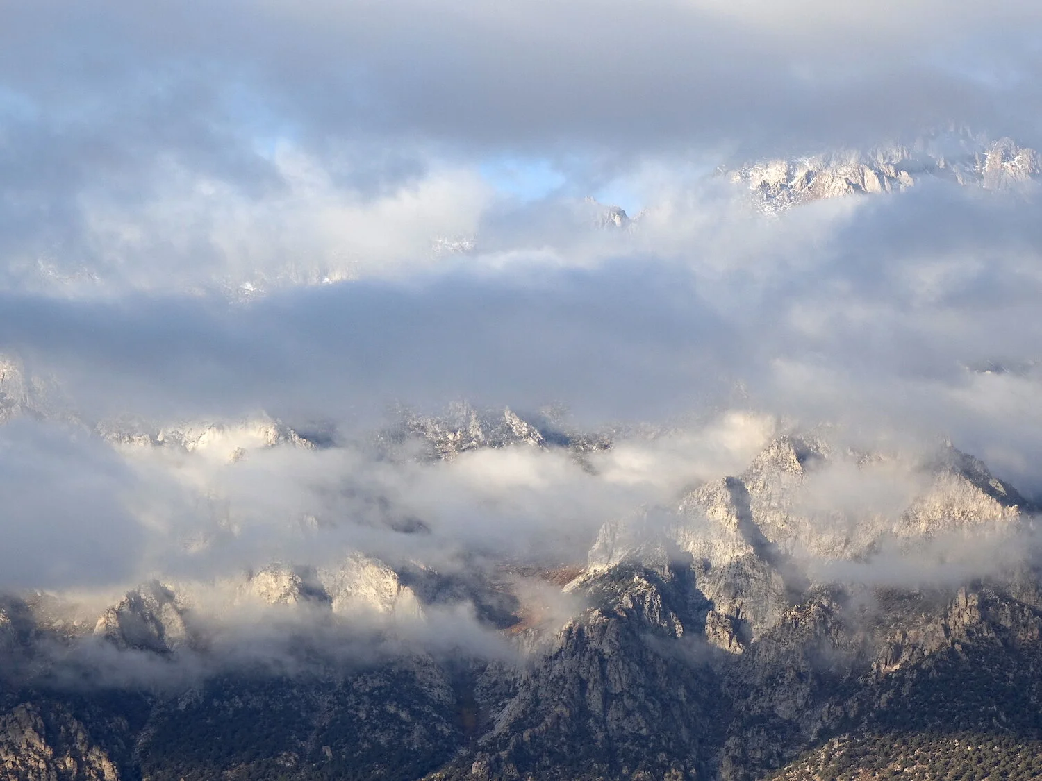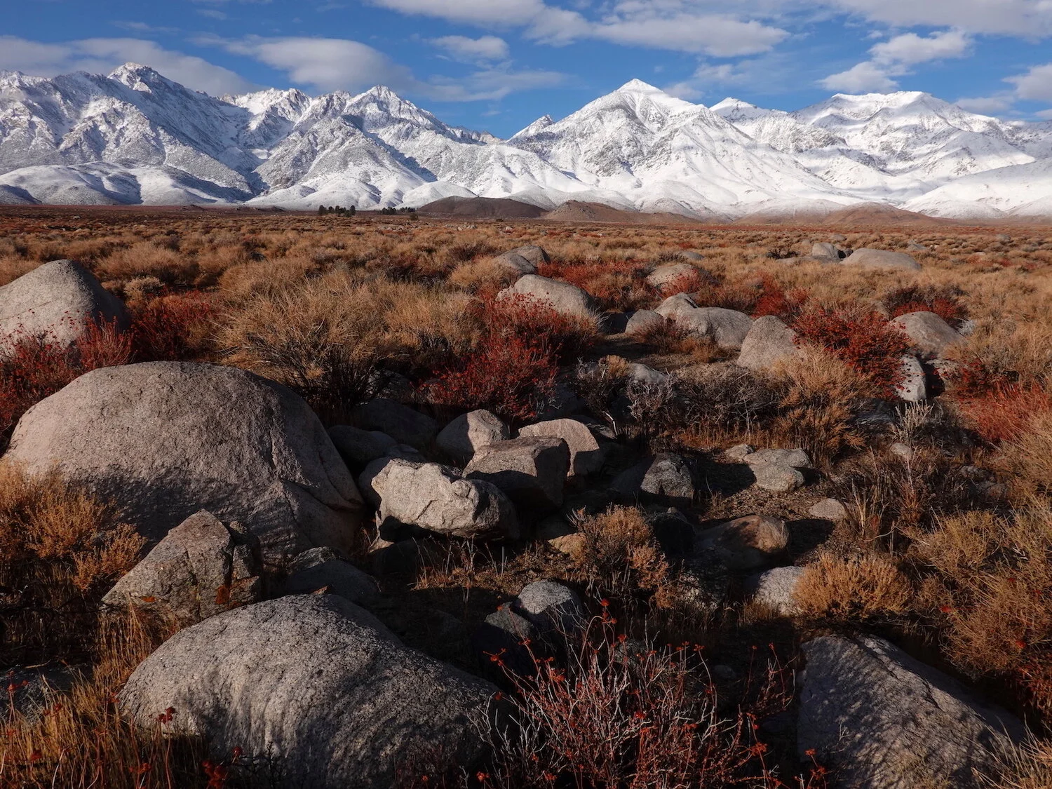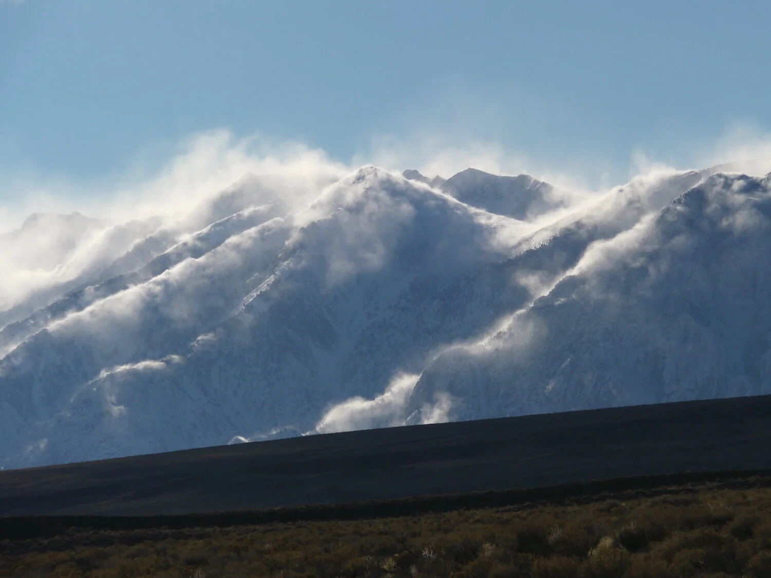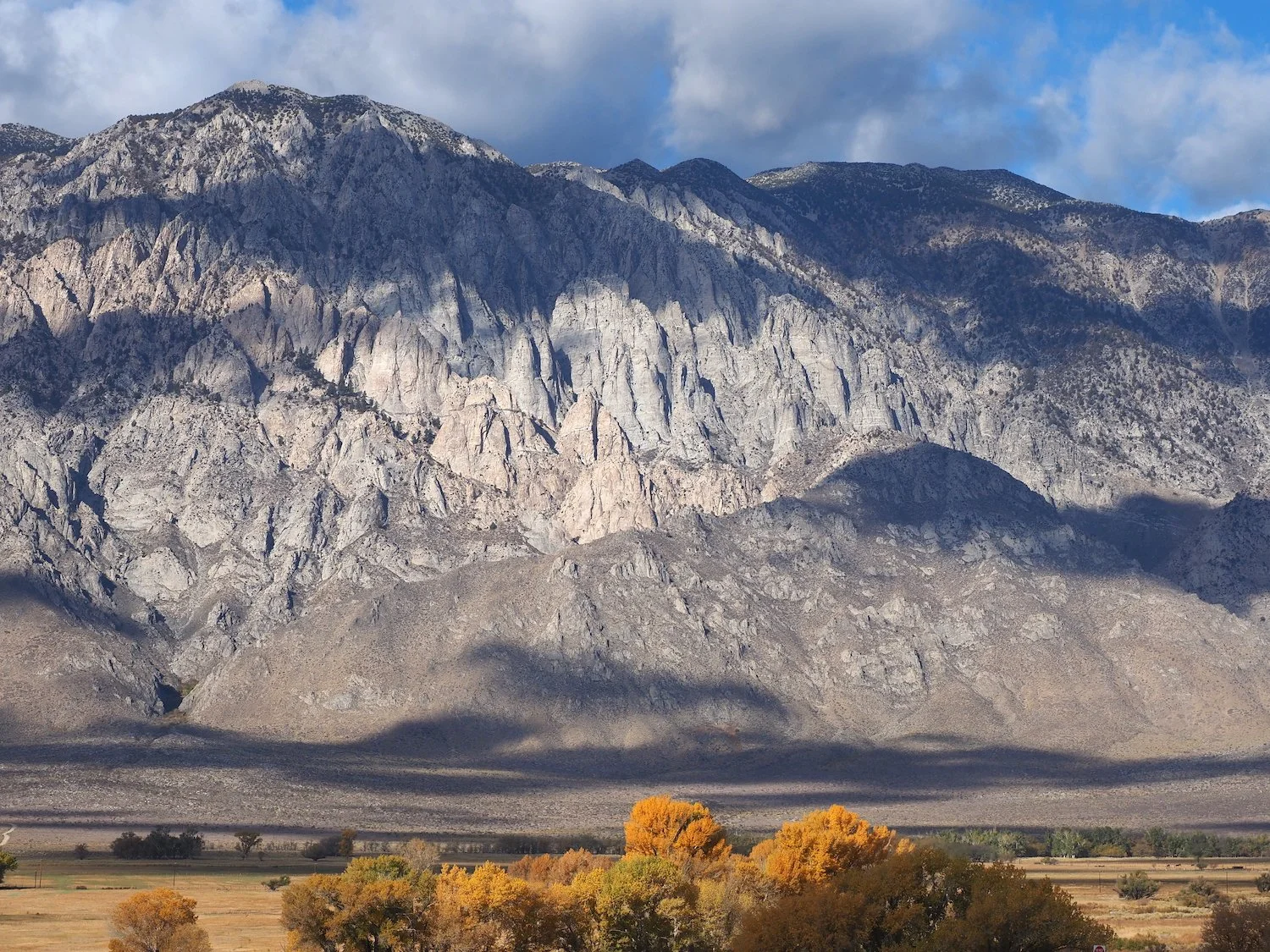 Fresh snow on the Sierra escarpment viewed from just west of the Eastern California Museum