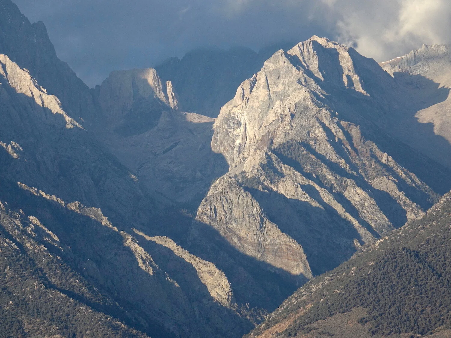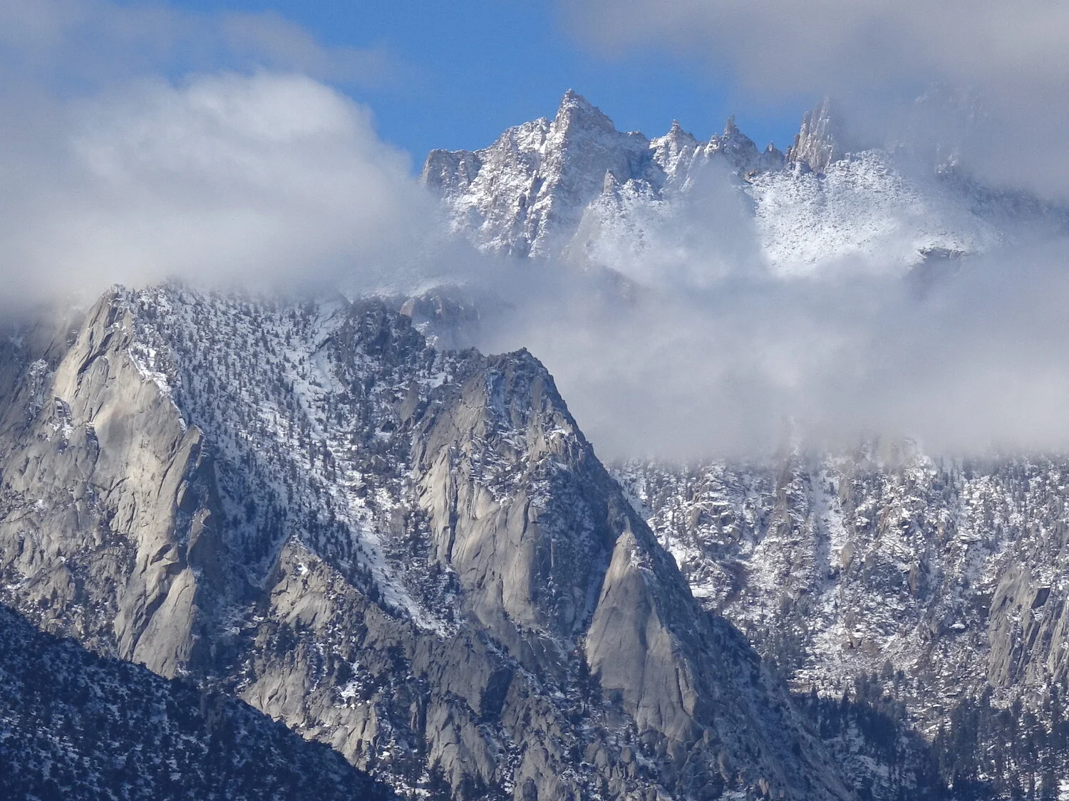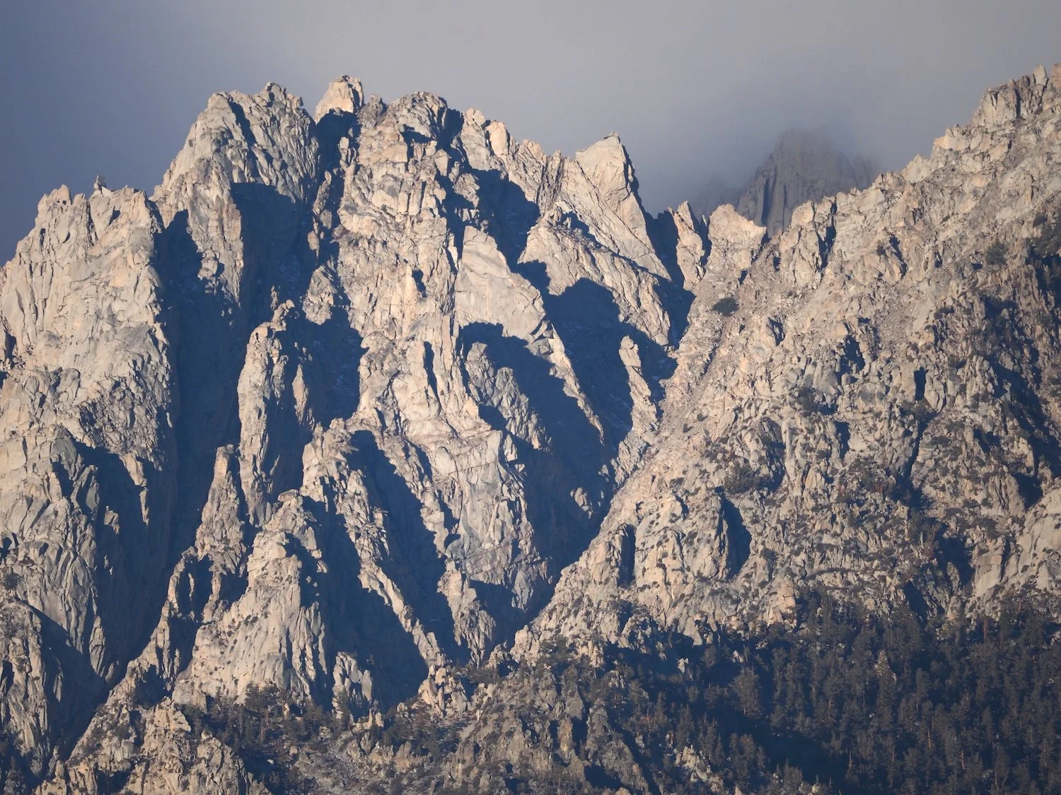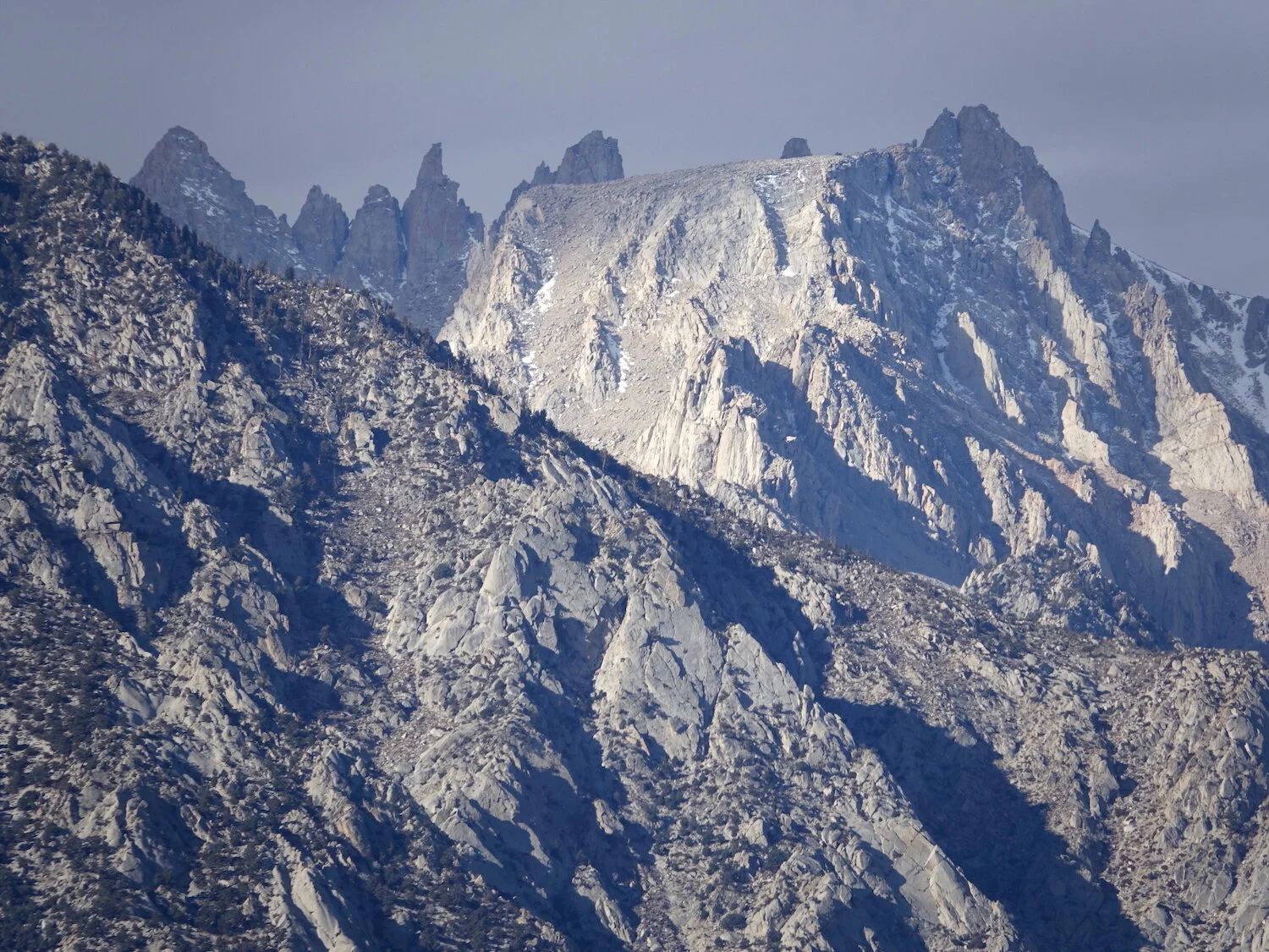 The briefest of views of the Keeler and Day Needles above Whitney Portal