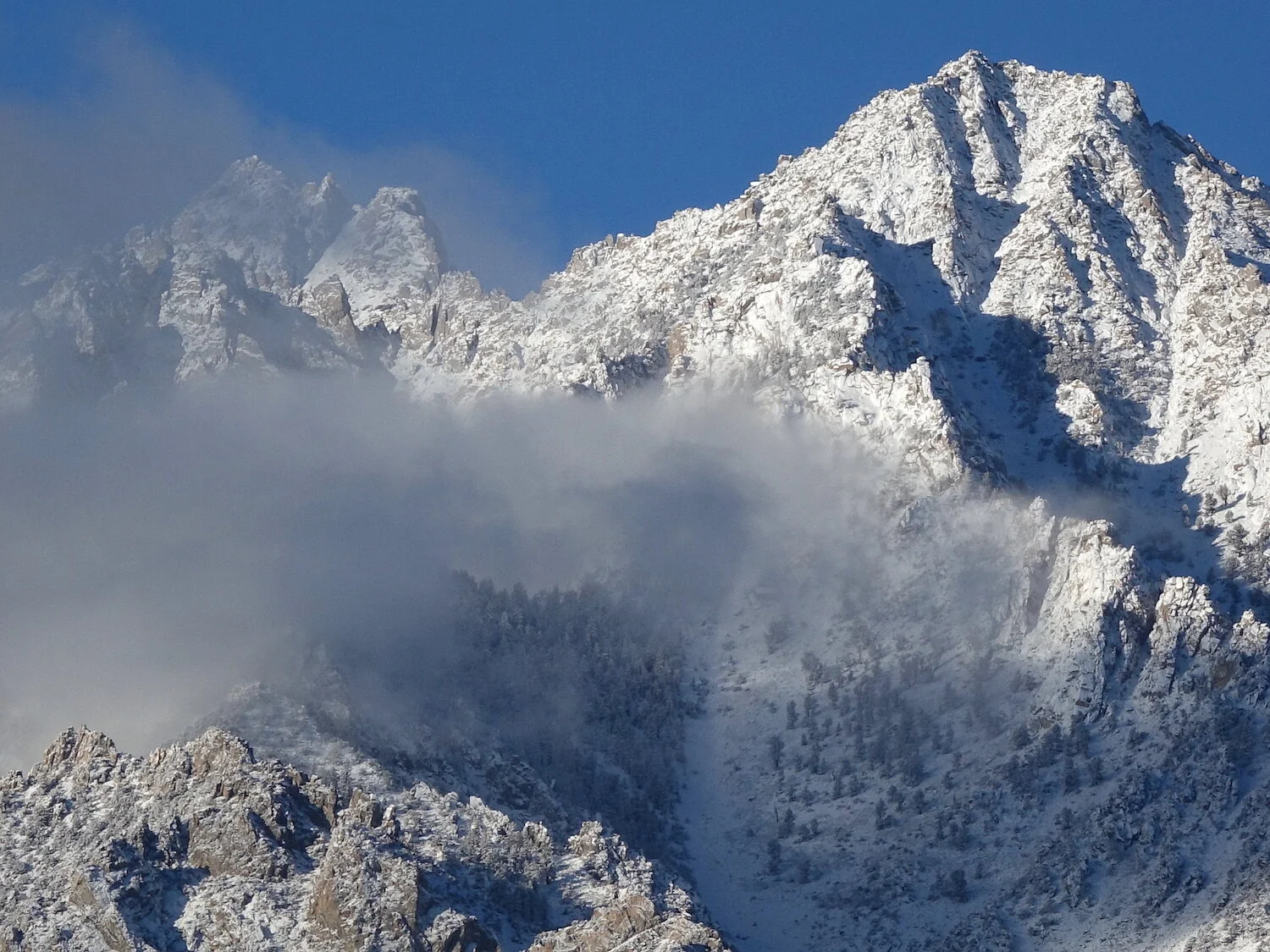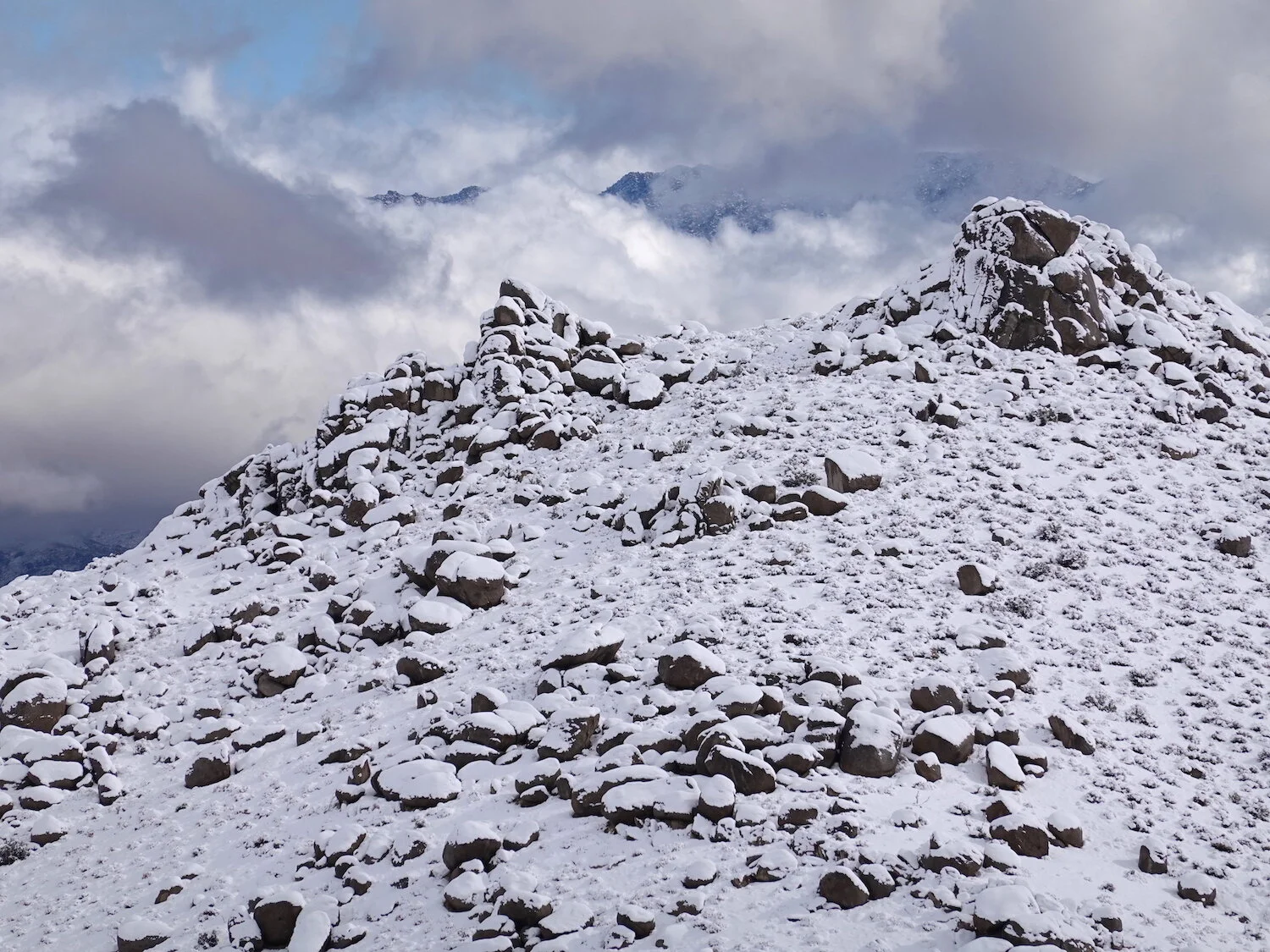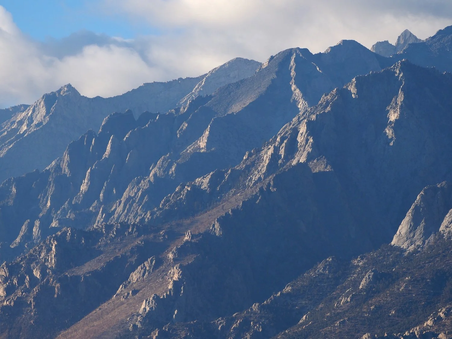 The briefest of views of the Keeler and Day Needles above Whitney Portal