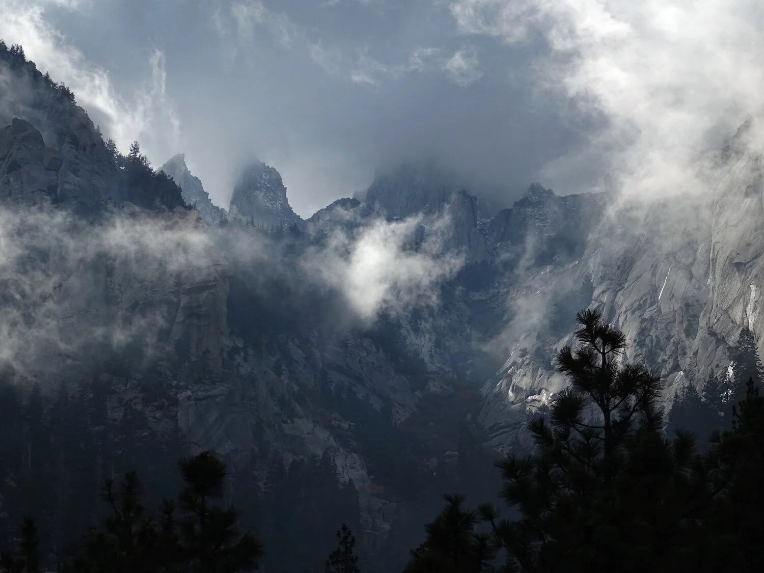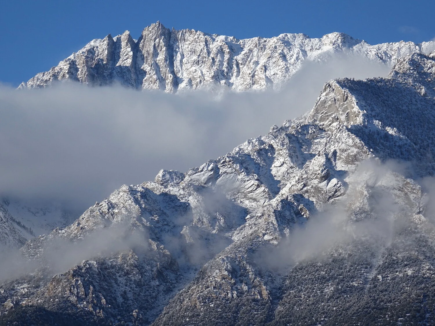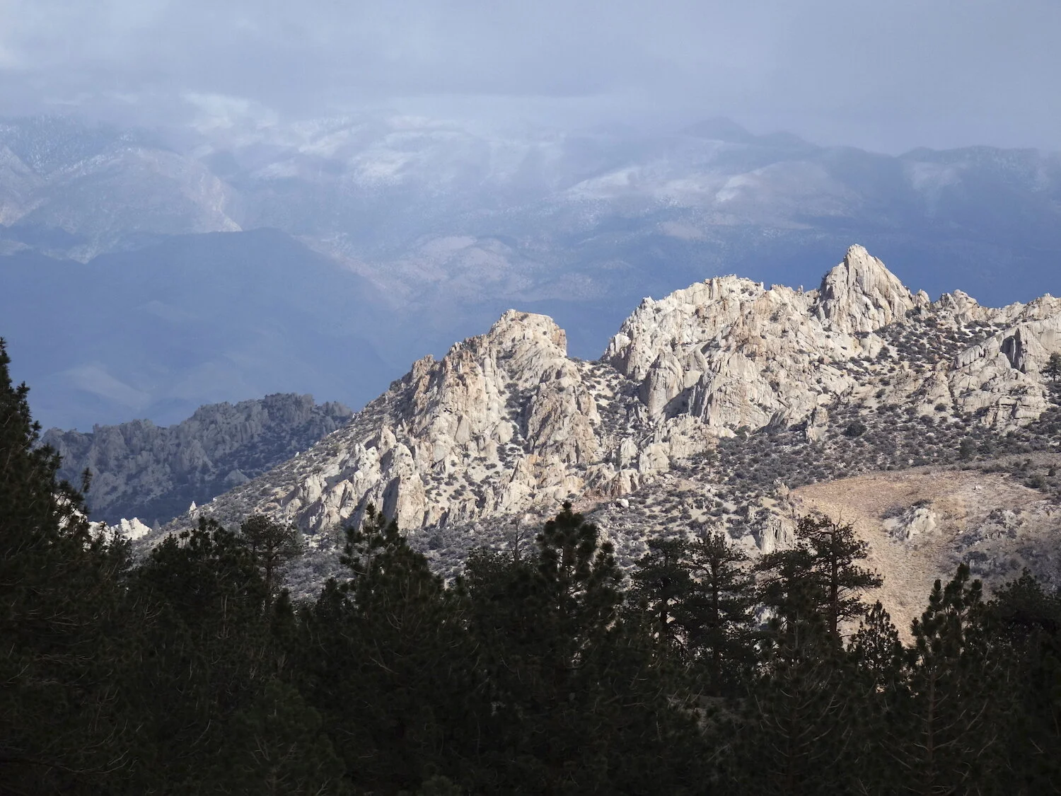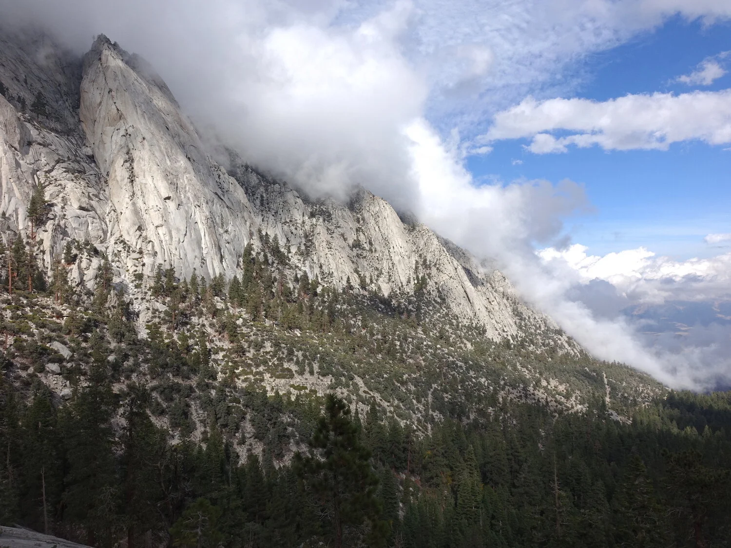 The briefest of views of the Keeler and Day Needles above Whitney Portal