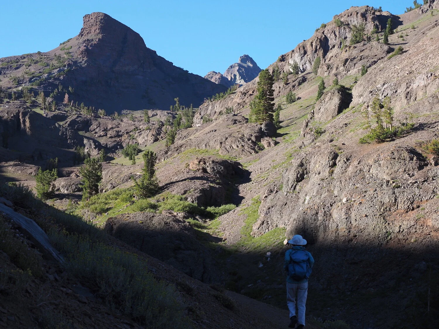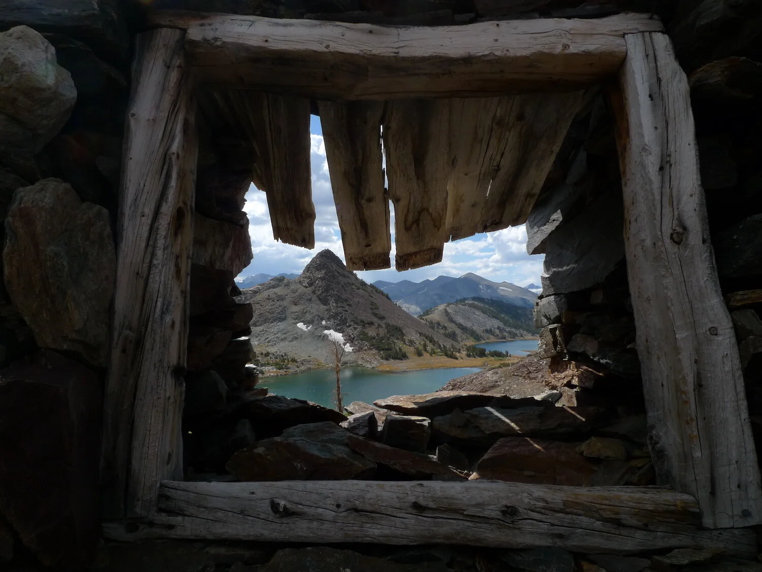 Gaylor Lakes from a collapsing structure at the Grand Sierra Mine