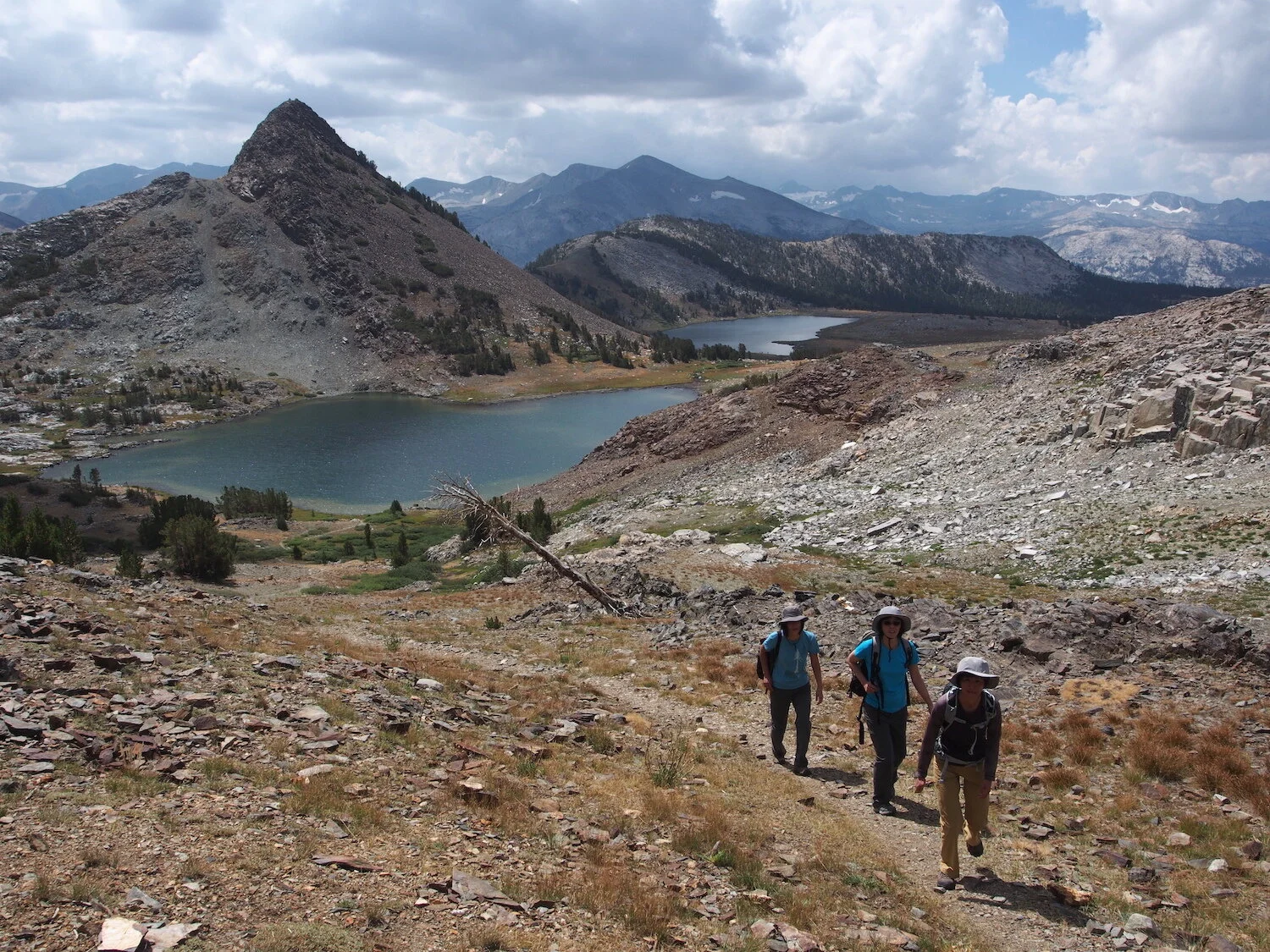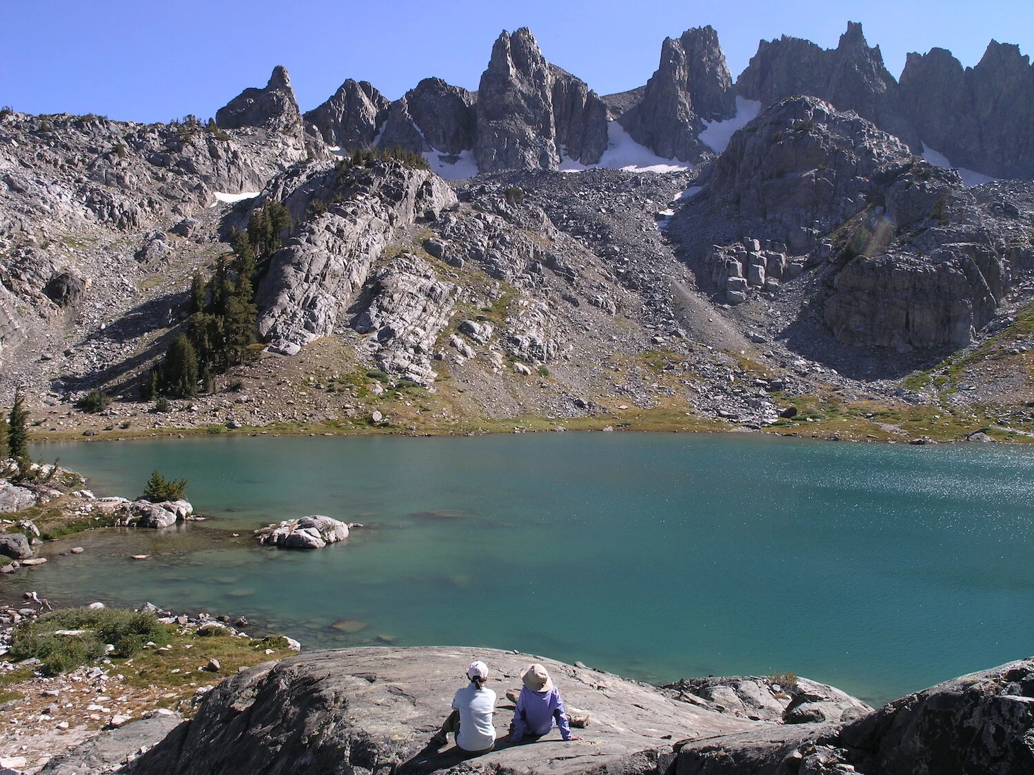 Junko and Hiroko soaking in the view of an obscure lake in the Ritter Range