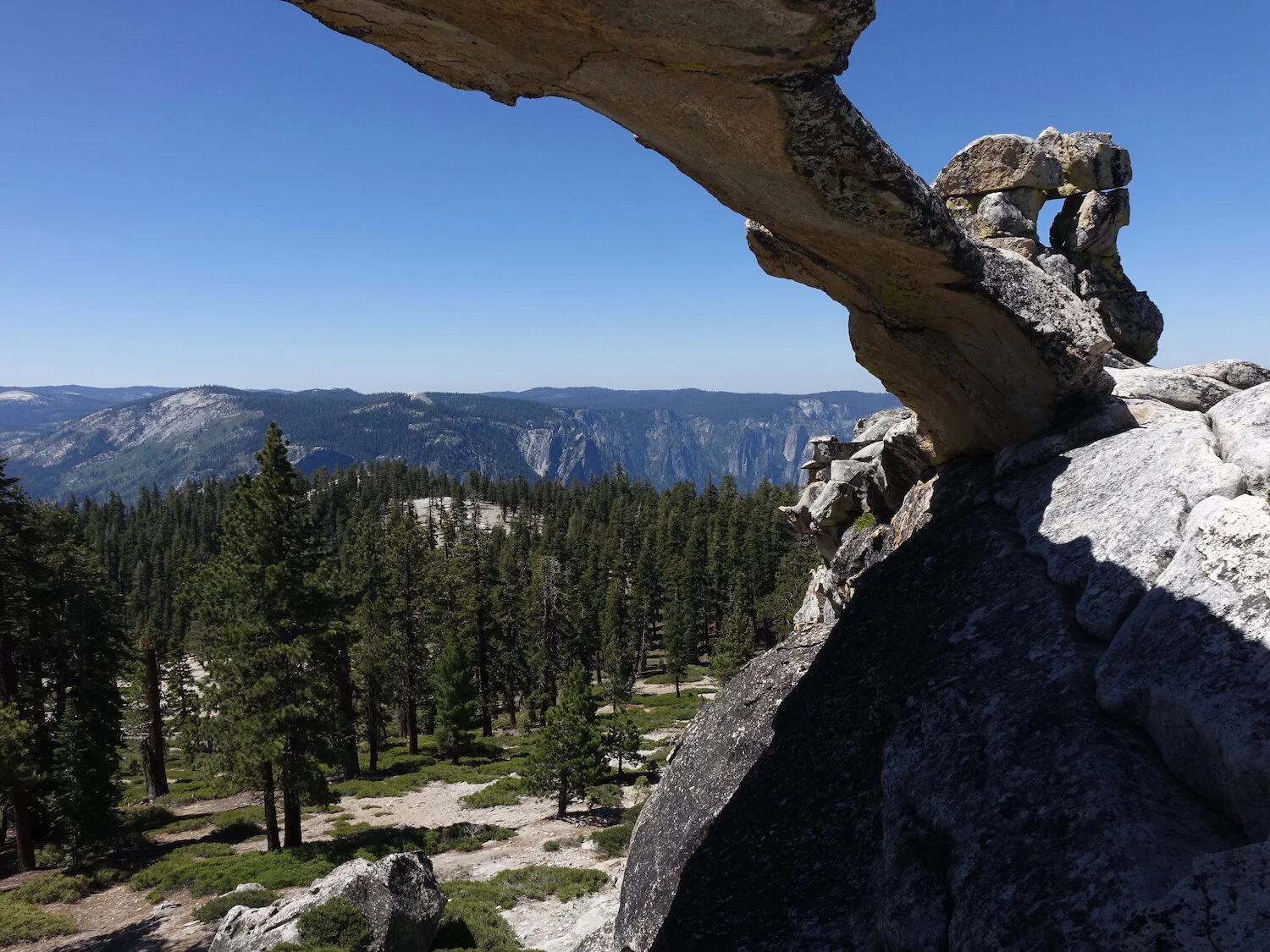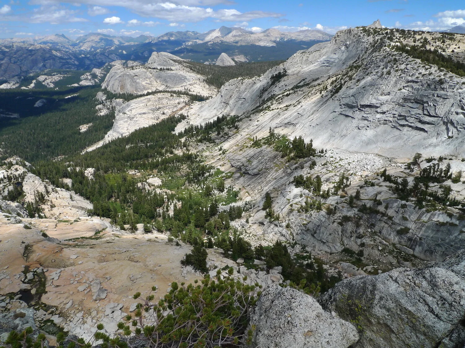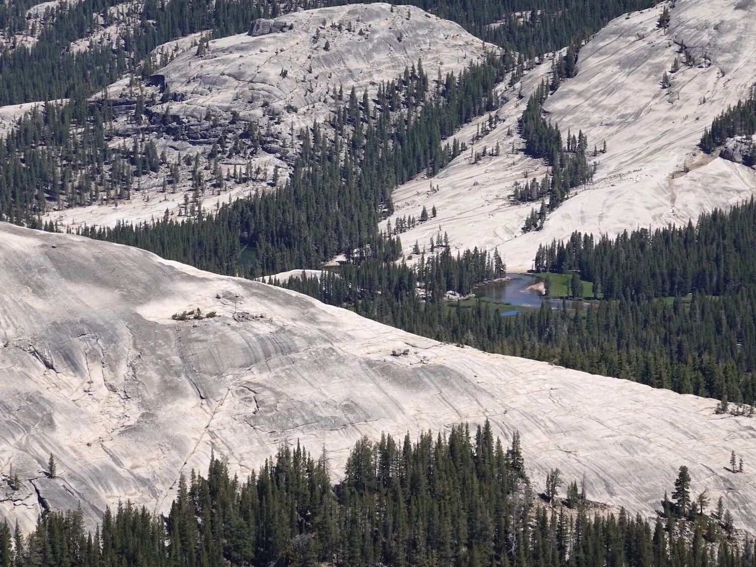 View down and over to Tenaya Lake and Tenaya Peak from Stately Pleasure Dome