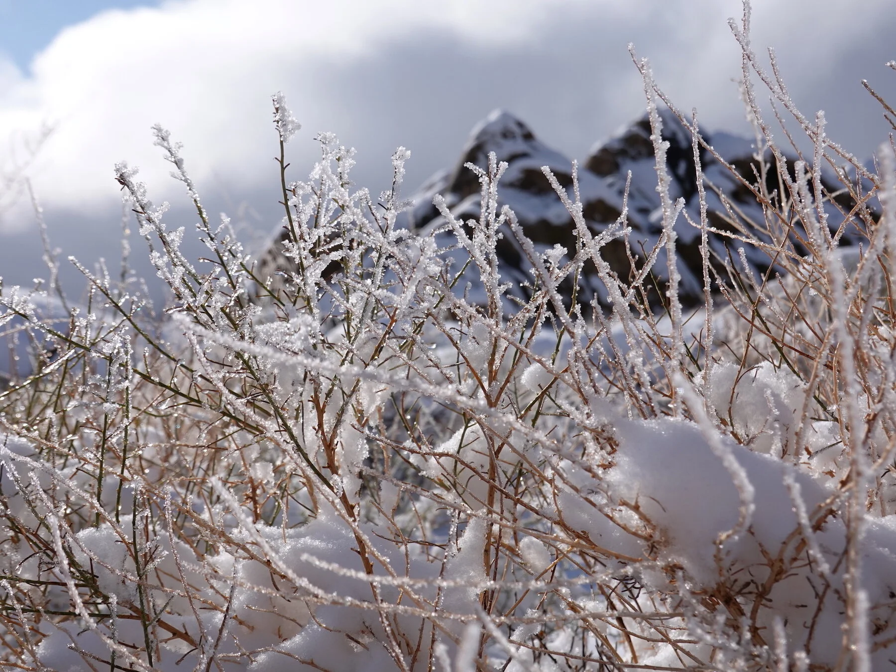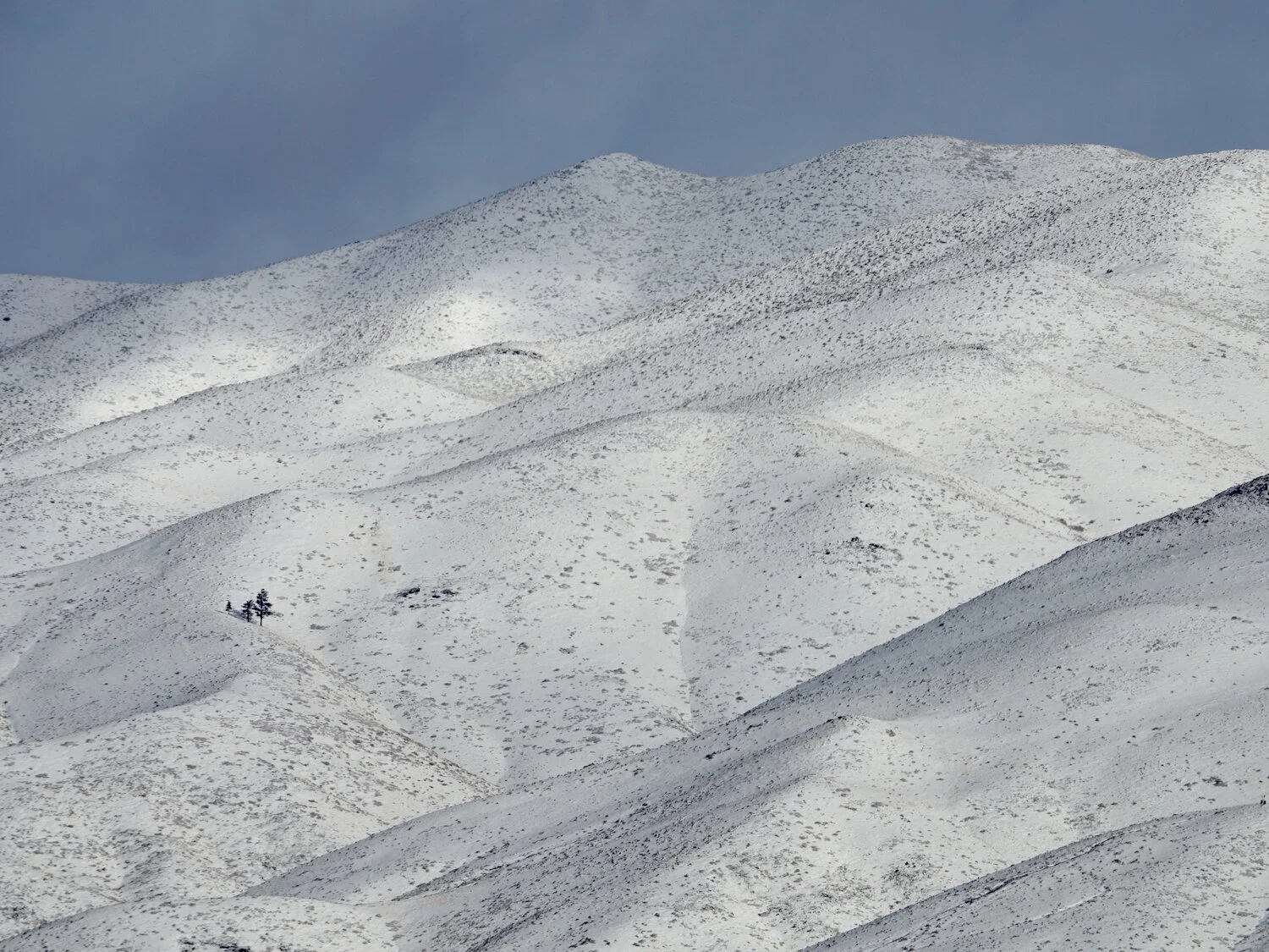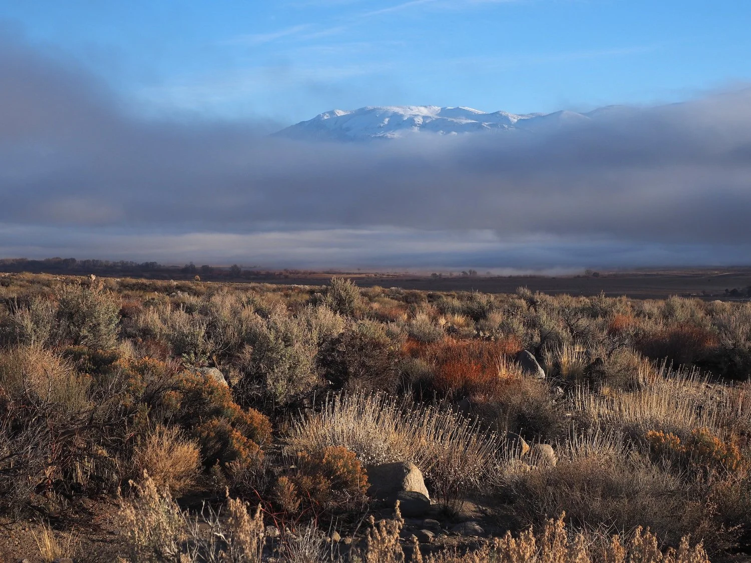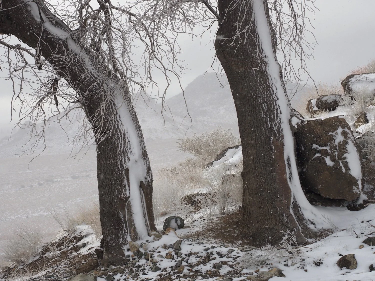 Fresh snow on Sagebrush / low down near the valley floor / snow monster story